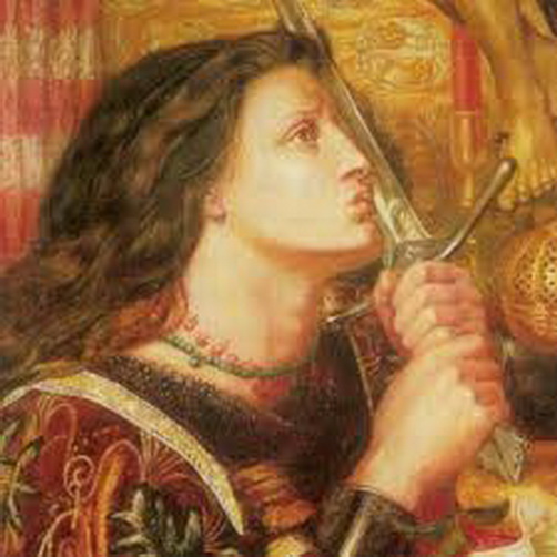 La vîrsta de 16 ani, în anul 1428, ,,vocile“ o îndeamnă să plece în ajutorul lui Carol VII poreclit ,,Delfinul“ care fusese proclamat rege cu şase ani în urmă dar nu a putut fi încoronat şi uns întrucît Reims, locul tradiţional unde erau încoronaţi regii Franţei, făcea parte din teritoriile ocupate de englezi, chiar şi Parisul era subjugat. Jeanette îl convinge pe Robert de Baudricourt, unul dintre comandanţii francezi, să-i dea nişte scrisori de prezentare. Ajunsă la castelul Chinon al lui Carol din valea Loarei îmbrăcată în haine bărbăteşti îl recunoaşte în mod miraculos pe rege dintr-un grup de bărbaţi. Şi asupra acestui fapt apar suspiciuni. Cercetătoarea Larisa Taylor lansează o ipoteză conform căreia Ioana îl cunoscuse pe rege dinainte într-un loc secret. Yolanda d’ Aragon, soacra lui Carol, care avea o mare influenţă asupra Delfinului l-a sfătuit pe acesta să o întîlnească pe Ioana. Tot Larisa Taylor susţine că Ioana ar fi fost antrenată în secret să călărească, mînuirea sabiei şi cum să-şi poarte zalele. Aici cercetătorii se bat cap în cap. Dacă Ioana d’ Arc nu a participat niciodată la lupte şi legenda ei a fost fabricată de către naţionaliştii catolici francezi în anul 1900 aşa cum se susţine în unele medii atunci de ce a mai fost antrenată, chiar şi în secret? Să apară doar pe cal în faţa englezilor? Vom vedea mai încolo că moartea eroică a Ioanei nu avea nimic comun cu un om bolnav. Aceştia se cutremură şi fac spasme în faţa morţii dar ea, chiar speriată, a fost foarte lucidă în faţa sfîrşitului. Laonic Chalcocondil spune despre ea: ,,O femeie, nu urîtă la înfăţişare, care spunea că Dumnezeu grăieşte la ea, a început să ia conducerea celţilor (francezilor), care o urmau şi ascultau de dînsa…Încrezuţi acum în femeia care îi conducea, au mers iarăşi la luptă şi, luptîndu-se, i-au pus pe fugă pe vrăjmaşi şi au pornit să-i gonească“ (Expuneri istorice) Ea a avut nevoie de foarte puţin timp pentru a-l convinge pe superstiţiosul Carol că este trimisa cerului pentru a elibera Franţa iar cu ajutorul ei putea fi sfinţit rege. Delfinul a pus-o în fruntea trupelor dar deşi ea nu a avut un rol hotărîtor în deciderea strategiei militare pentru că acolo erau comandanţi experimentaţi totuşi aceasta i-a inspirat permanent pe ceilalţi soldaţi, mai ales datorită bravurii de care a dat dovadă, deşi rănită de o săgeată, ea continuă să-i încurajeze pe francezi avînd un rol moral în scoaterea de sub asediu a oraşului Orleans. Îl convinge pe Carol să plece la Reims, locul tradiţional al încoronării, care se afla adînc în interiorul francez. Acolo Delfinul este sfinţit rege al Franţei. Deşi misiunea ei a fost îndeplinită ea a rămas pe cîmpul de luptă. În mai 1430 este capturată de către un soldat burgund la Compiegne pe cînd ea devenise deja un simbol al renaşterii naţionale. A fost predată englezilor în schimbul sumei de 10.000 de coroane de aur. Aceştia o predau unei curţi ecleziastice din Rouen unde a fost condamnată pentru erezie. Carol, sfătuit de perversa Yolanda d’ Aragon, nu a intervenit pentru ea. Ioana a fost o victimă a maşinaţiunilor politice dar cu toate acestea ea a crezut în destinul ei urmînd calea Preacuratei Fecioare Maria: ,,Iată roaba Domnului, fie mie după cuvîntul tău“
