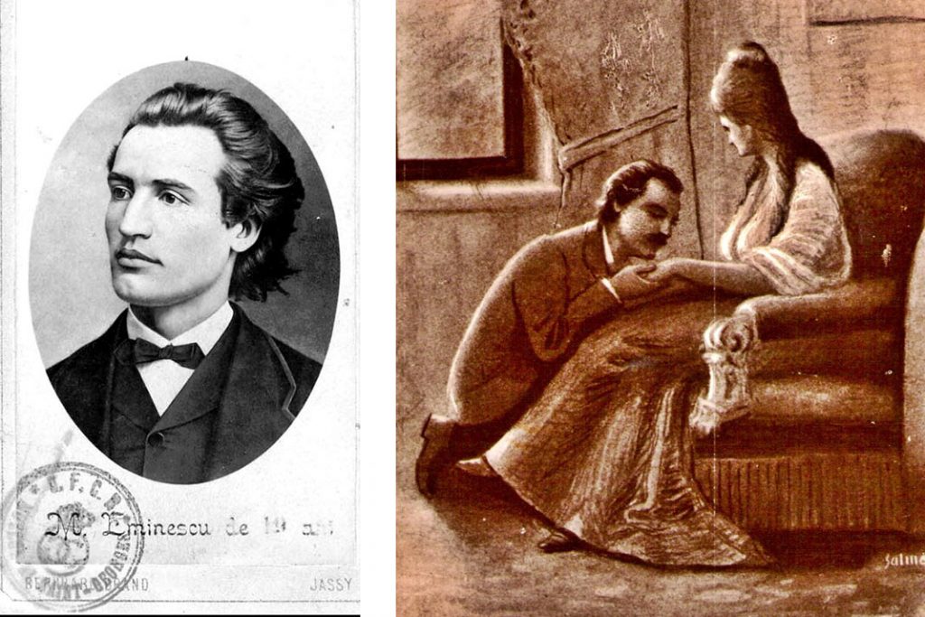 La Viena îl cunoaşte pe Slavici. Viena îi inspiră versurile: ,,Prin ferestre uliţernici; Noi priveam la madam Maier; Şi priveam cum mamzell Rezi; Şi cu Sepi joacă ştaier…“ La întoarcerea în ţară îi vizitează pe ,,junimişti“ iar apoi pleacă la Berlin în anul 1872. În capitala Germaniei va fi luat secretar de către agentul diplomatic de aici. Protectorul său, Titu Maiorescu, venit în fruntea Ministerului de Instrucţie, îi cere să-şi dea doctoratul pentru a putea ocupa catedra de filosofie de la Iaşi,lucru pe care Eminescu nu-l refuză dar nici nu-l face. După un periplu la Biblioteca centrală unde a ocupat un timp funcţia de director, va fi numit de către Maiorescu revizor şcolar pe judeţele Iaşi şi Vaslui. După ce guvernul cade, Eminescu rămîne pe drumuri aciuindu-se la celebra ,,bojdeucă“ a lui Creangă din Iaşi. La Iaşi are loc şi idila cu Veronica Micle, dar se pare că amorul lor a fost prea mult idealizat de unii pentru că Eminescu răbufneşte uneori furios la adresa relaţiei sale: ,,Nu i-ar putrezi oasele-blestema el-cui au dat fiinţă acestor ţări în care cuvîntul nu-i cuvînt, amorul nu-i amor“. La Iaşi ,,se apucă de gazetărie compilînd ,,Curierul de Iaşi“ după cum ne informează George Călinescu, apoi pleacă la Bucureşti unde îi va avea colegi pe Slavici şi Caragiale. La ziarul ,,Timpul“ va începe o serie de articole împotriva liberalilor. Viaţa amoroasă nu este constantă. Mai întîi vrea să o ia de nevastă pe Veronica Micle rămasă văduvă, dar Maiorescu nu-i împărătăşeşte ideile. Apoi se îndrăgosteşte de Mite Kremnitz umblînd după aceea după Cleopatra Poenaru, fiica pictorului Lecca. Călinescu o descrie drept o femeie urîtă. În iunie 1883 merge la Iaşi cu prilejul dezvelirii statuii lui Ştefan cel Mare, solemnitate la care nu ia parte, dar se mulţumeşte să citească la Junimea ,,Doina“. La Bucureşti locuieşte la Slavici care era plecat mai tot timpul în străinătate. După 5 ani epuizanţi de gazetărie devine depresiv, lucru pe care Maiorescu îl presimţea din purtările sale ciudate de la ,,Junimea“. Se credea călugăr şi binecuvînta pe toată lumea.