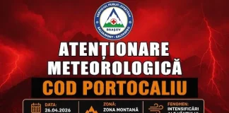 Administrația Națională de Meteorologie (ANM) a emis o serie de avertizări de ultimă oră pentru județul Brașov, valabile pe parcursul zilei de duminică, 26...