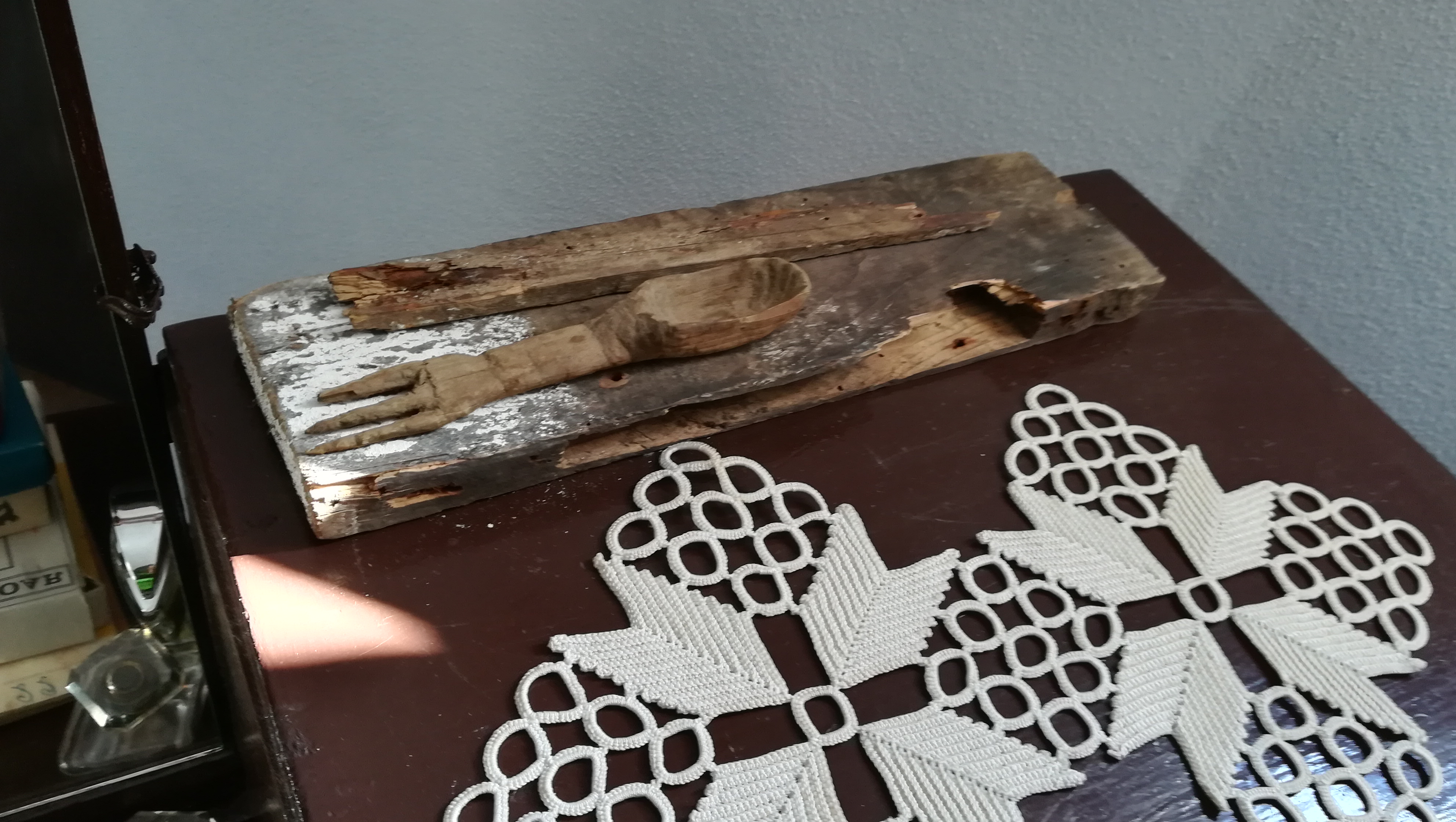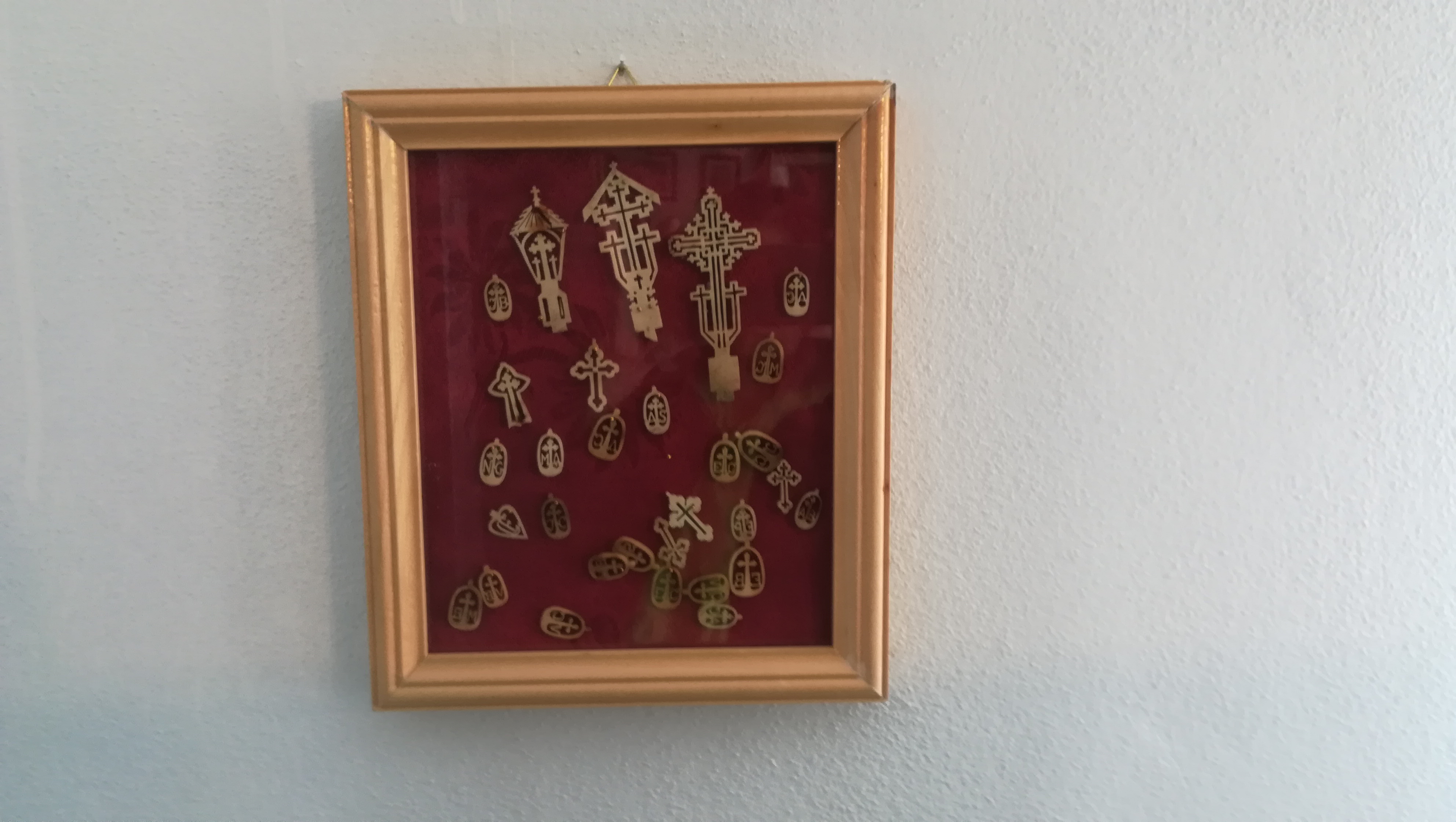 Pe cînd lucra la amenajarea muzeului şi recondiţionarea pieselor, Steluţa Opriş a fost surprinsă de ceea ce a descoperit. Într-o bucată de lemn care ar fi fost parte dintr-un cufăr vechi, era bine ascunsă o adevărată comoară. ,,Am spus soţului să scoată toate cuiele obiectelor pe care le recondiţionam pentru a nu ne accidenta. Într-o bucată de lemn era un cui, iar cînd soţul meu l-a scos, s-a rupt o fîşie care acoperea o fantă. Au căzut de acolo 31 de cruciuliţe lucrate în os, mici, cu monograme. N-am ştiut cine le-a făcut, cine le-a ascuns, dar le-am pus într-o ramă şi le-am expus pe perete” a spus Steluţa Opriş. Cruciuliţele sculptate în os sînt asemănătoare cu cele lucrate de av. Traian Trifan în închisoarea Aiud unde a fost încarcerat 16 ani. Traian Trifan este luptătorul anticomunist, fost prefect legionar, care a dat titlul volumelor de carte scrise de Ion Gavrilă Ogoranu ,,Brazii se frâng, dar nu se îndoiesc”. Este posibil ca aceste cruciuliţe să fii fost lucrate în închisoare de membrii familiei care au fost încarceraţi în regimul comunist. Steluţa Opriş crede că unchiul ei, Mihai Maga, studentul la Medicină, ar putea fi autorul împreună cu colegii lui de celulă. ,,Nu cred că aparţin altui unchi, Virgil Maga, care a fost condamnat la 25 de ani muncă grea” a spus Steluţa Opriş.