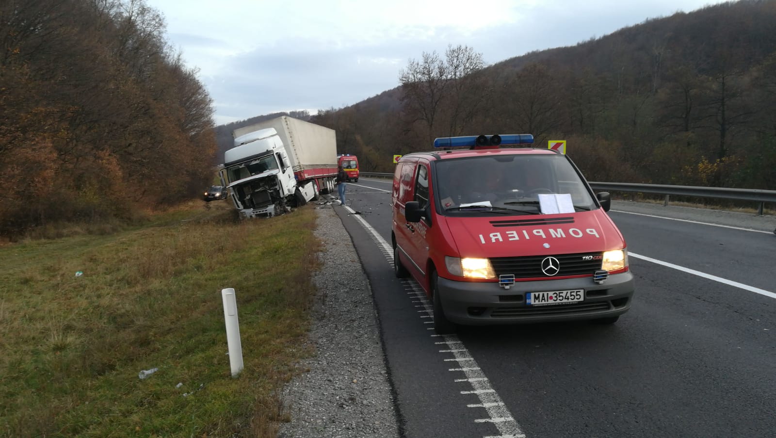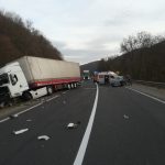Un grav accident rutier s-a petrecut pe DN1, în apropiere de Perşani, joi, 1 noiembrie 2018, în jurul orei 15.00. Au fost implicate două camioane şi un autoturism. Şoferul din autoturism, un bărbat în vîrstă de 57 de ani, a rămas încarcerat şi a fost găsit de salvatorii ajunşi la faţa locului în comă. S-au deplasat la faţa locului o autospecială cu apă şi spumă, autospeciala de descarcerare de la Detaşamentul de Popieri Făgăraş şi două Ambulanţe, una de la SAJ Codlea şi alta de la SMURD Braşov. Potrivit poliţiştilor, vinovat de producerea accidentului ar fi chiar şoferul autoturismului, un cetăţean japonez, care a pătruns pe cntrasens. „Un cetăţean japonez, de 57 ani, care a condus un autoturism inmatriculat in Ilfov, pe DN 1, dinspre Sibiu spre Braşov, la km 209 + 100 m, a pătruns pe contrasens, unde a acroşat semiremorca unui tir care circula regulamentar după care a fost proiectat în alt tir, ce se deplasa în spatele primului, pe aceeaşi direcţie. În urma accidentului a rezultat vătămarea cetăţeanului japonez, care era singur în maşină şi care a fost transportat la spital pentru îngrijiri”, au precizat poliţiştii braşoveni. comă. Acestuia i s-a deschis dosar penal pentru vătămare corporală din culpă. Din cauza accidentului circulaţia pe DN 1, în zona Perşani, a fost blocată şi s-a circulat deviat pe la Şinca Veche, Poiana Mărului, Zărnesti.