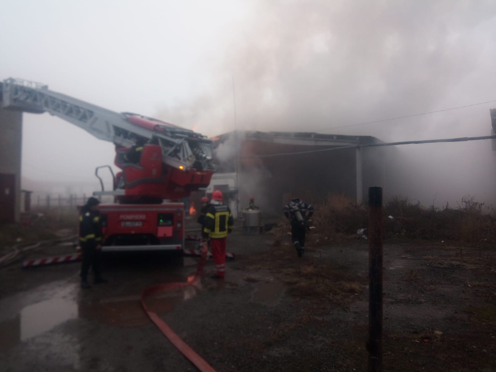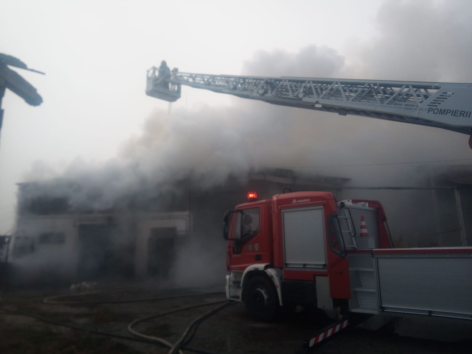 Un incendiu de amploare a izbucnit la o fermă de pe strada Vlad Ţepeş din Făgăraş amplasată în incinta fostei Baze de recepţie cereale. Apelul la 112 a fost dat în urul orei 9.15, iar pompierii s-au deplasat la faţa locului. În grajdiul cuprins de flăcări erau 17 vaci şi cantităţi mari de fîn. Pompierii au reuşit să elibereze vacile şi să salveze 20 de tone de baloţi de fîn. ,,Am spart un perete al grajdiului şi am scos baloţii de fîn. A ars acoperişul grajdiului pe o suprafaţă de 300 mp. Au ars 10 tone de fîn şi au fost degradate alte 10 tone de fîn. Am acţionat cu 3 autospeciale şi cu o autoscară” a spus Dumitru Moldovan, comandantul Detaşamentului de Pompieri Făgăraş. S-a reuşit stoparea extinderii focului, iar în jurul orei 12.30 incendiul a fost stins. Echipa de intervenţie a Detaşementului de Pompieri Făgăraş a fost formată dintr-un ofiţer şi 20 de subofiţeri. Nu s-au înregistrat victime omeneşti. Deocamdată nu se cunoaşte cauza care a dus la izbucnirea incendiului, iar pompierii cercetează situaţia. Foto ISU Brasov