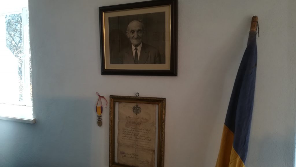Ioan Chiuşdea a fost încorporat în armată la vîrsta de 18 ani, în 1916, şi a participat la luptele din Primul Război Mondial, din Galiţia, Tirol şi Ungaria. El a fost decorat de către Majestatea Sa Regele Ferdinand cu medalia „Bărbăție și Credință” cu spade, clasa a III-a” pentru curajul și devotamentul de care a dat dovadă în luptele de la Szentes, în iulie 2018, brevet înmînat în 1920. Ioan Chiuşdea, născut în 1897 şi decedat în 1981, este bunicul Steluţei Opriş. ,,Am găsit steagul în pod, rulat. Mi-a spus bunicul că este păstrat, dar n-am căutat. Abia acum l-am găsit şi l-am expus în muzeu lîngă tabloul bunicului. Este cam găurit de vreme” a spus Steluţa Opriş.
