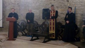 Simpozionul dedicat Marii Uniri cu tema ,,Uniţi în cuget şi simţiri“ organizat de Fundaţia Culturală ,,Negru Vodă“ din Făgăraş în colaborare cu Muzeul Țării Făgăraşului ,,Valeriu Literat“ s-a desfăşurat joi, 29 noiembrie a.c., începînd cu ora 16.00, în Turnul Thomory din Cetatea Făgăraşului. Manifestarea a fost coordonată de profesoara Codrina Anghel, preşedinta Fundaţiei Culturale ,,Negru Vodă“ din Făgăraş. ,,Vă mulţumesc că vă aflaţi alături de noi în această seară specială cînd încercăm să evocăm actul celor care au făcut Unirea şi au realizat idealul naţional pentru care au murit zeci de mii de români“ a spus Elena Băjenaru, directoarea Muzeului Țării Făgăraşului. ,,Este o onoare şi o bucurie să păşim plini de emoţie în acest spaţiu. Fundaţia noastră duce mai departe tradiţia pe care şi-a clădit-o în acest oraş. Vă mulţumesc dragi tineri că aţi venit aici alături de oaspeţii noştri“ a spus Codrina Anghel. După intonarea Imnului Naţional, elevii Liceului Teologic ,,Constantin Brâncoveanu“ conduşi de preotul profesor Gheorghe Malene au încîntat audienţa cu un frumos buchet de cîntece patriotice. În continuare, preotul Cornel Ursu a evocat prezenţa Bisericii la evenimentul Marii Uniri. ,,Să ne aducem aminte de înaintaşii noştri. Astăzi aducem floarea noastră de recunoştinţă şi un omagiu de gînd celor care şi-au dat viaţa. Nu se cade să vorbim noi despre Țara Făgăraşului pentru că sîntem preoţi, nu istorici. Noi trebuie să ne limităm a vorbi despre rolul Bisericii. Anul 1918 a fost un an providenţial. Întreaga Biserică şi-a adus aportul prin clerici şi mireni la realizarea acestui deziderat. Biserica Ortodoxă, alături de cea Unită, au avut un rol important în realizarea Unirii. Peste 150 de preoţi au fost arestaţi iar alţii exilaţi pentru lupta pe care au depus-o în realizarea acestui ideal. Ridicarea Bisericii noastre la rang de patriarhie este rodul Marii Uniri de la 1 Decembrie 1918, iar România de azi este o moştenire a Marii Adunări de la Alba Iulia. Cele două biserici româneşti din Transilvania au dat un sprijin masiv. Episcopii Miron Cristea, Iuliu Hossu şi politicienii Alexandru Vaida Voievod şi Vasile Goldiş au adus la 14 decembrie 1918 în faţa regelui Ferdinand dorinţa românilor din Transilvania de a se uni cu România. Pe data de 15 octombrie 1922, în Catedrala Reîntregirii din Alba-Iulia, regele Ferdinad şi regina Maria au fost încoronaţi ca monarhi ai tuturor românilor. Să nu dăm uitării ceea ce nu trebuie uitat“ a spus Cornel Ursu. Codrina Anghel a recitat testamentul reginei Maria: ,,Mi-a fost dat să trăiesc cu tine poporul meu vremuri de restrişte şi de mari împliniri…În acea zi mi-ai dat un nume care mi-a fost drag: m-ai numit mama tuturor…te binecuvintez iubit popor român, ţara bucuriilor mele şi a durerilor mele“. Colonelul în rezevă Titus Oană a vorbit despre aportul soldaţilor ardeleni înrolaţi în armata austro-ungară şi care au luptat apoi de partea fraţilor români. Profesorul Florentin Olteanu a evocat figura geografului francez Emanuel Demarton, cel care a cartografiat harta delimitărilor de frontiere după război şi tratatul de la Trianon. Acestuia i s-a acordat titlul de ,,doctor honoris causa“ al Universităţii din Cluj aducînd argumente demografice în sprijinul idealului de veacuri al românilor. Profesorul de istorie Mircea Prescure a evocat figura preotului unit Valeriu Crişan născut în Ohaba, preot unit la Mărgineni şi Sebeş, apoi la Șercaia, trecut la ortodoxie după anul 1948, decedat în aprilie 1962. ,,A fost căsătorit cu Eugenia Șenchea, nimeni alta decît nepoata marelui martir Ioan Șenchea. Era mic de statură şi tot timpul avea ceva de făcut. După asasinarea lui Ioan Șenchea, se pare că a fost împuşcat de soldaţii austro-ungari, Valeriu Crişan a fost nevoit să ia drumul pribegiei la Ploieşti, în Rusia şi apoi la Iaşi. Începînd cu februarie 1926 el a fost preot unit la Șercaia şi aici a rămas ca preot ortodox după 1948. În anul 1932 edifică şcoala şi grădiniţa, a refăcut fanfara românească, a dezhumat rămăşiţele soldaţilor români care au căzut în luptele ce s-au dat în jurul Hălmeagului şi a cercetaşilor români asasinaţi de către austro-ungari, după ce au fost turnaţi de către un localnic sas. Acesta a fost un educator social şi al rromilor din Șercaia. A fost creator de opere literare, publicist, ziarist. În anul 1909 a publicat o schiţă pentru copii. A scris articole politice în ziarele locale ,,Olteanul“ şi ,,Glasul Oltului“. Naţionalist fervent, el a susţinut cauza Partidului Naţional Român şi a Partidului Naţional Țărănesc al cărui membru a devenit. În perioada 1909-1914 a fost secretar de redacţie la ,,Olteanul“ apoi, după 1914 redactor. Din 1918 a scris pentru ziarul ,,Oltul“ şi a fost corespondent pentru cotidienele naţionale ,,Curentul“ şi ,,Adevărul“ în perioada interbelică. A scris ,,Amintirile din pribegia din Rusia“ şi a tradus din opera lui Maxim Gorki. Fiul său numit sugestiv Horia, Cloşca şi Crişan s-a întors rănit din cel de-al II-lea Război Mondial“ a spus Mircea Prescure. Îndrăgita cîntăreaţă de muzică populară Mioara Marinca a cîntat cîntece patriotice în aplauzele publicului. La eveniment au participat şi profesori universitari din Chişinău- Republica Moldova. Evenimentul s-a încheiat cu un program coral susţinut de elevii Colegiului Naţional ,,Radu Negru“ din Făgăraş. (Ștefan BOTORAN)