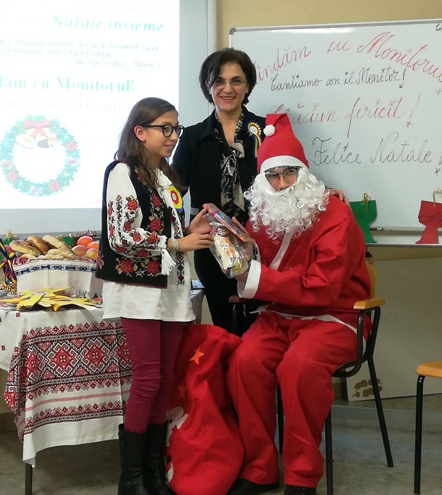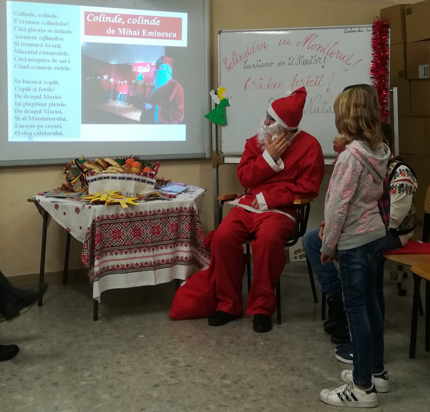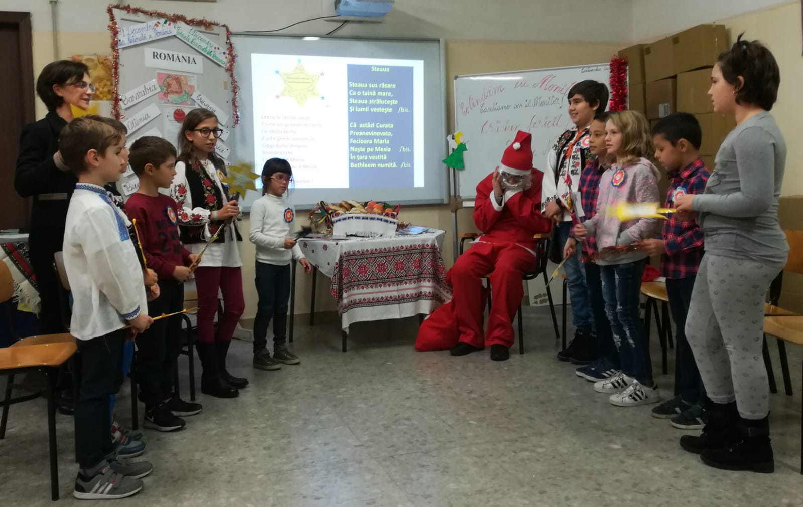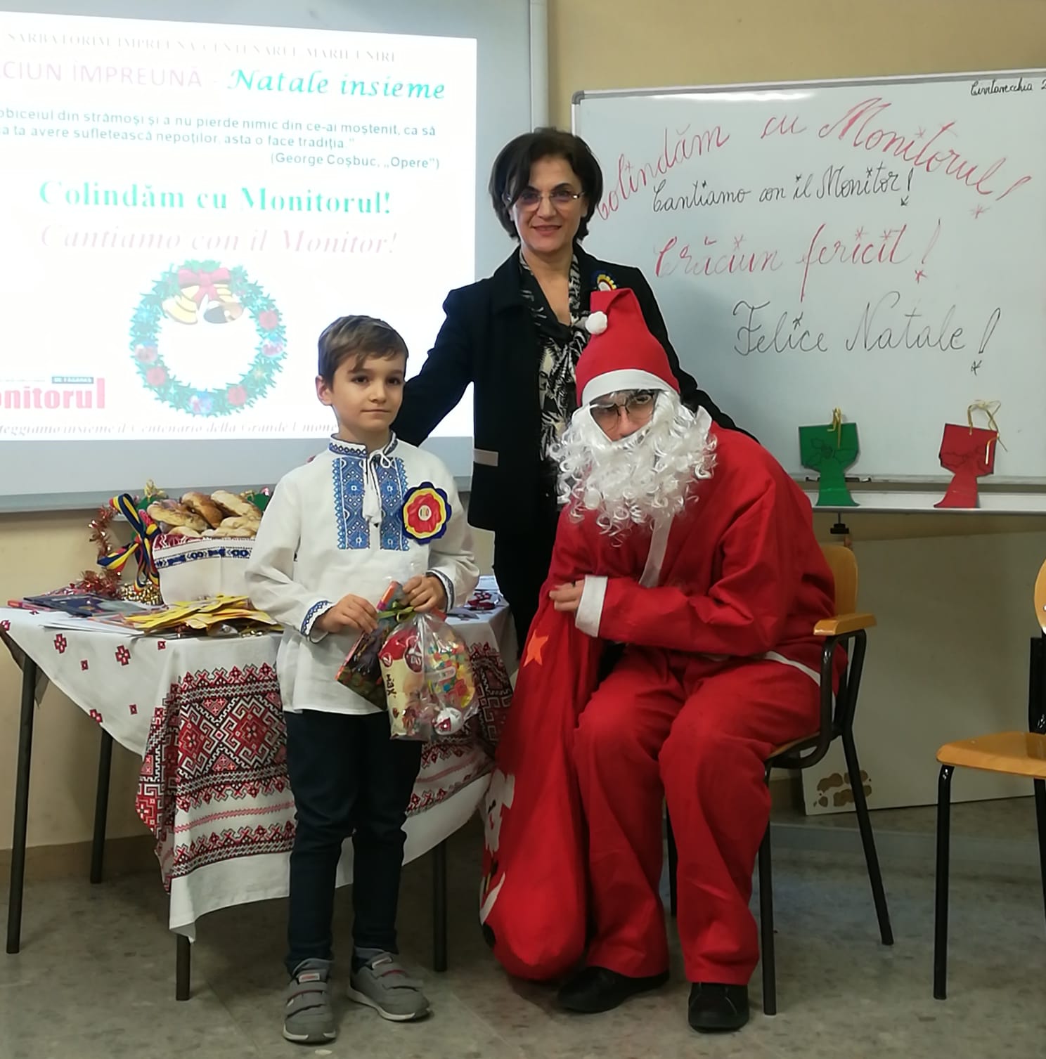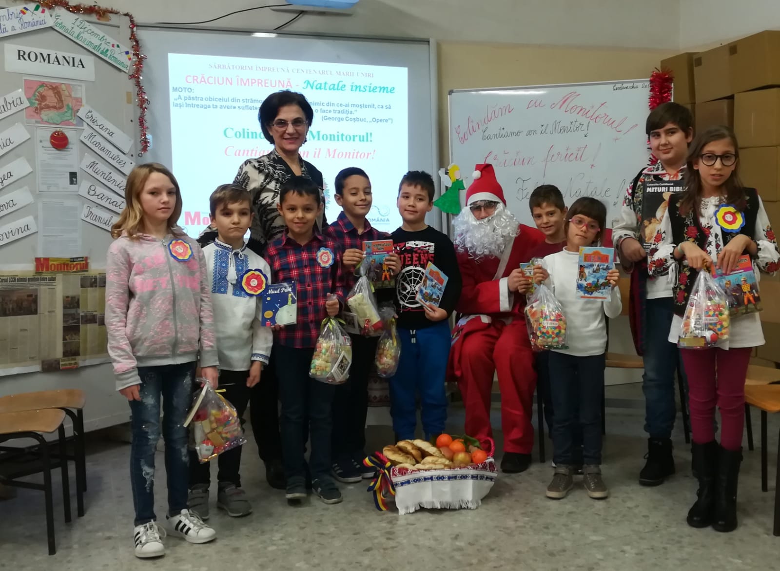 Elevii din şcolile italiene care urmează cursurile de limbă, cultură şi civilizaţie românească (LCCR) se pregăteasc pentru a întîmpina sărbătoarea Naşterii Domnului. Ei au pregătit din timp un repertoriu bogat de colinde româneşti pe care îl prezintă în cadrul serbărilor organizate în şcoli de către profesoarele de curs. La Şcoala Civitavecchia 2 a fost mare sărbătoare pentru elevii profesoarei Angela Nicoară. Ei au transformat sala de curs într-o scenă pentru a-l primi aşa cum se cuvine pe Moş Crăciun. ,,Am pregătit din timp ediţia de Crăciuna ziarului Monitorul în care am publicat mai multe colinde. Aşa am reuşit să colindăm cu Monitorul. Moş Crăciun i-a răsplătit pe elevi cu daruri” a spus profesoara Angela Nicoară. Un coş plin cu nuci, portocale şi călăcei i-a bucurat pe copiii care au fost încîntaţi să afle tradiţiile româneşti de Crăciun. Şi elevii de la şcolile din Ladispolii vor colinda în cadrul serbării de Crăciun. La aceste şcoli profesoara Angela Nicoară invită dascălii italieni, părinţii elevilor şi oficialităţile italiene. ,,Prin cursul profesoarei Angela Nicoară noi, românii, simţim ca acasă. Colindăm şi gustăm din preparatele româneşti pe care le aducem special” a spus o mămică din Neamţ. Şcolile în care elevii învaţă cursul LCCR şi vor participa la serbarea de Crăciun vor fi şi Corrado Melone, Ladispoli 1 şi Ilaria Alpi din Ladispoli.