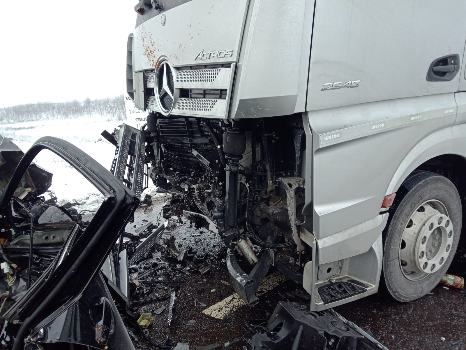 Accident cu două victime încarcerate pe DN1. Un autoturism a intrat sub TIR, între Şercaia şi Perşani. O persoană a decedat