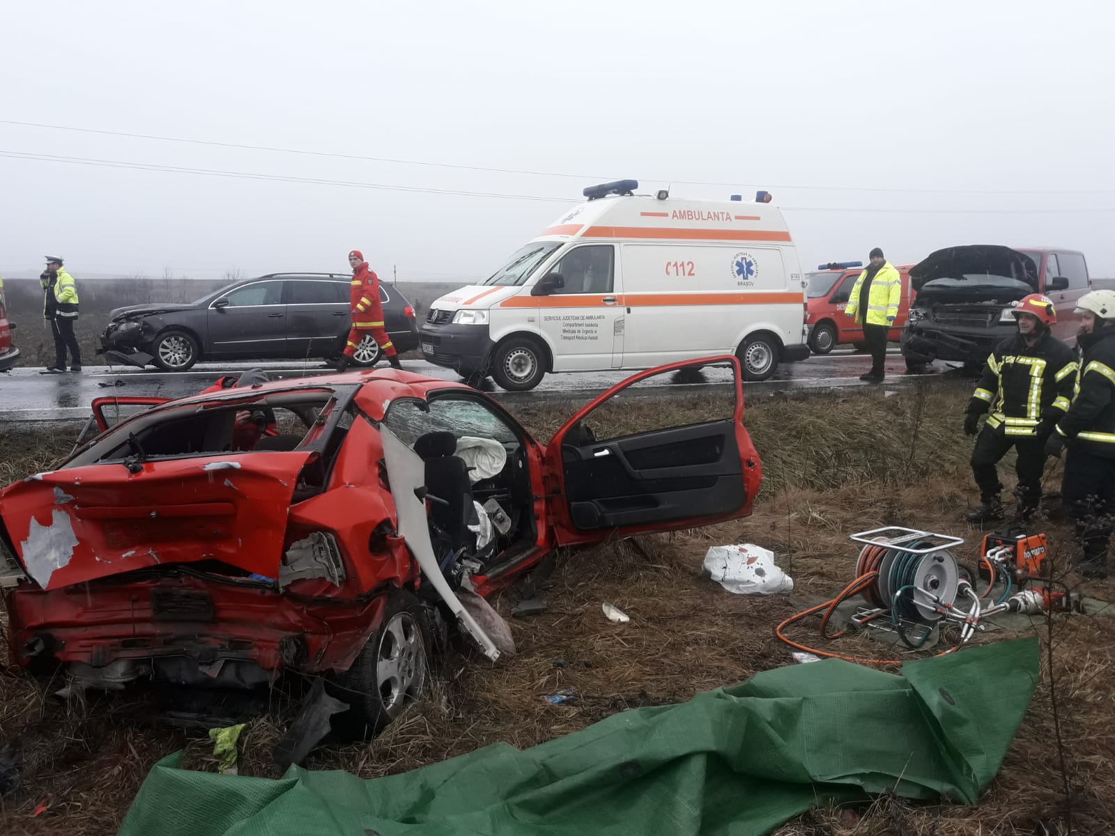 Un alt accident grav s-a petrecut vineri, 28 decembrie a.c.,  în jurul orei 13.20,  pe DN1, între localităţile Mândra şi Şercaia, la kilometrul 225. Trei autovehicule au fost implicate în accidentul rutier în urma căruia două persoane au decedat şi alte trei au ajuns la spital în stare gravă. În coliziune au fost implicate un autoturism  marca Opel înmatriculat în Vrancea în care erau 5 persoane, un microbuz în care se aflau 3 persoane şi un autoturism VW în care se aflau două călugăriţe. ,,Opelul roşu a fost lovit în plin de microbuz şi aruncat în afara carosabilului” au spus martorii oculari.  Şoferul autoturismului Opel de culoare roşie luase la ocazie, aşa cum au spus  salvatorii de la SMURD, patru persoane,  3 femei şi un adolescent de 17 ani. Două dintre ele au decedat pe loc, iar a treia victimă, o femeie,  şi un tînăr de 17 ani au fost transportaţi de urgenţă la UPU Făgăraş. În vederea efectuării de investigaţii cu computerul tomograf cele două victime au fost preluate de ambulanţe şi transportate de Braşov, adolescentul la Spitalul de Copii, iar fermeia la Spitalul Judeţean. A cincea  victimă, una dintre persoanele aflate în  microbuz, a fost adusă la spitalul din Făgăraş. Cele două măicuţe din autoturismul VW au scăpat cu o sperietură, dar au refuzat transportul la spital.  ,,Cele două persoane transportate la spital, mamă şi fiu,  acuzau dureri. O femeie de 54 de ani din Veneţia de Jos care avea traumatism cranio-cerebral, plăgi şi dureri la torace. Adolescentul de 17 ani, tot din Veneţia de Jos,  avea traumatism cranio-cerebral şi plăgi” au spus paramedicii SMURD.  Este vorba despre  Marioara Titilescu şi fiul ei.  Persoanele decedate erau din Veneţia de Sus.  La faţa locului s-au deplasat 3  echipaje SMURD, o autospecială cu apă şi spumă, un echipaj de descarcerare şi 3 ambulanţe SAJ.