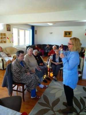 Sîmbătă, 16 februarie a.c., s-a desfăşurat la azilul AVIV din Făgăraş o nouă sesiune de poveşti terapeutice cu psihologul Alexandra Ababi, de data aceasta tematica fiind ,,Lumea mea este şi lumea ta“. Scopul sesiunii a fost simularea încrederii şi a acceptării de sine, dezvoltarea relaţiilor interumane, conştientizarea nevoilor sociale şi emoţionale proprii, dar şi a celorlalţi. Nu a lipsit nici stimularea fizică prin dansul eşarfelor. S-au folosit eşarfe, muzica anilor 80, Irina Loghin, Abba, baloane de săpun, clepsidra, cercul roşu şi o poveste terapeutică la care au participat toţi vîrstnicii internaâi aici. Participanţii au fost aşezaţi în cerc iar fiecare a ales cîte o eşarfă colorată şi au spus ce reprezintă acea culoare pentru ei din punct de vedere emoţional, apoi au legat-o de eşarfa colegului de lîngă el simbolizînd interacţiunea umană. S-a folosit apoi un cerc roşu în care au intrat toţi cei implicaţi în program mimînd o mişcare a eşarfei în funcţie de melodia auzită iar toţi ceilalţi i-au imitat. Fiecare participant a spus apoi ceea ce a simţit. Psihologul Alexandra Ababi i-a antrenat pe toţi după care le-a citit povestea terapeutică. (Ştefan BOTORAN)