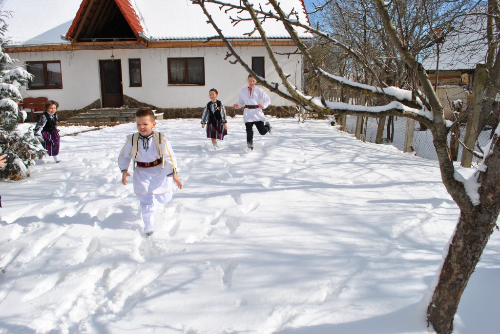 “Bucuroşi, bucuroşi! /Vă urăm un bun sosit! / Frunză verde de cicoare,