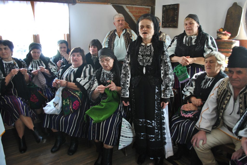 Şi cînd s-au ridicat bărbaţii la joc la primele acorduri ale saxafonului lui Horia Vâgu, fiu al satului, şi al echipei lui, voia bună s-a văzut pe feţele tuturor. Ficioreasca cu strigături urmată de învîrtita. Rapsodul satului, Ioan Leluţiu, Tei, gazda şezătorii, a întreţinut atmosfera cu vocea-i deosebită. Cîntecele vechi culese din sat, ,,De la noi de la fereastră”, ,,În grădină la mîndra” sau ,,Foaie verde baraboi” i- au antrenat şi pe participanţi, vocile lor răzbătînd pînă în uliţa cealaltă. Nu s-a dat în lături de la şezătoare Rodica Geamănu, artista satului, laureată a Televiziunii Române şi a concursului ,,Floarea din grădină”, care a încîntat audienţa prin cîntecele vechi ,,Rara” sau doina ,,Păsărica plugului” sau ,,De-ar veni primăvara” care i-au dus faima la nivel naţional. A revenit în sat pentru a retrăi o tradiţie veche pe care tatăl ei, dascălul Victor Geamăn, a promovat-o întotdeauna. Nu putea lipsi cel mai vechi cîntec, ,,Cînd vii bade-n şezătoare” care prin ritmul său a antrenat lucrul femeilor. O mai tînără interpretă de folclor, Cristina Leluţiu, îi calcă pe urme tatălui ei, şi a înveselit atmosfera cu cîntecul ,,Ia uitaţi-vă feciori”. Vocea unei urătoare s-a auzit într-un timp: Foaie verde, mărgărit/ Şezătoarea am sfârșit./ La sfârșit de șezătoare/ Să facem o horă mare!”. Curtea muzeului a prins apoi culoare prin ţinuta sătenilor care au încins brâul. Strigăturile în pas cu figurile jocului au atras apoi şi o învîrtită în zăpada proaspăt căzută.