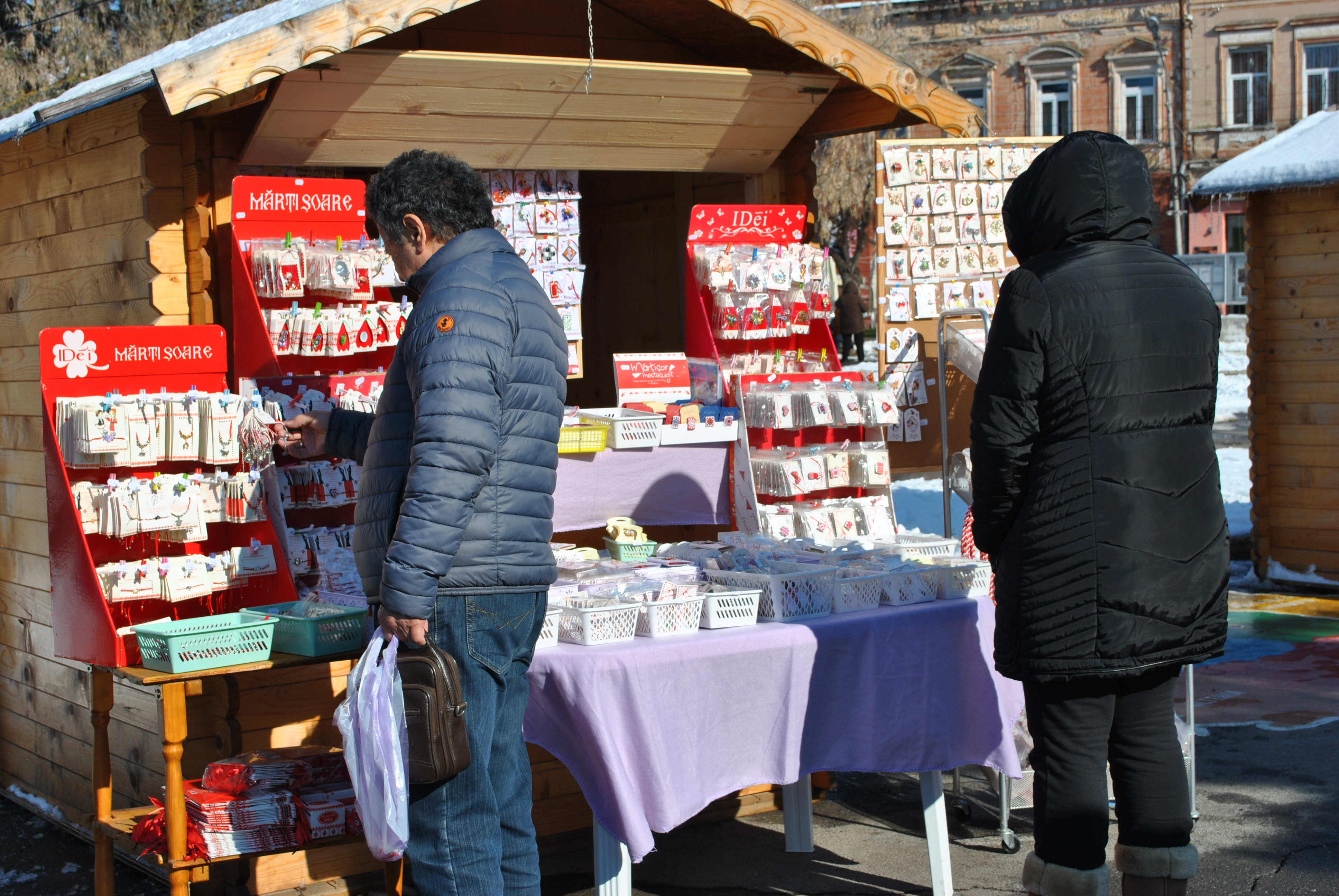•   ,,Noi reprezentăm Colegiul ,,Aurel Vijoli” şi am venit la tîrg cu 500 de mărţişoare lucrate manual de patru grupe de elevi de la ciclul primar. Am confecţionat zeci  de mărţişoare cu floricele şi fluturaşi din materiale şi mărimi diferite. Timpul de lucru pentru fiecare  mărţişor confecţionat a fost  de la 15 la 50 minute. Mărţişoarele noastre au fost apreciate de toţi clienţii pentru că sînt lucrate manual. Un client mai bătrîn a venit să cumpere un mărţişor şi ne-a mărturisit că nu poate cumpăra doar unul pentru că toate modelele sînt foarte frumoase.  În faţa clienţilor ne-am lăudat cu mărţişoarele făcute de noi şi le-am povestit cum le-am confecţionat” a spus Andreia Antonia Colibaş, elevă în clasa a IV-a.