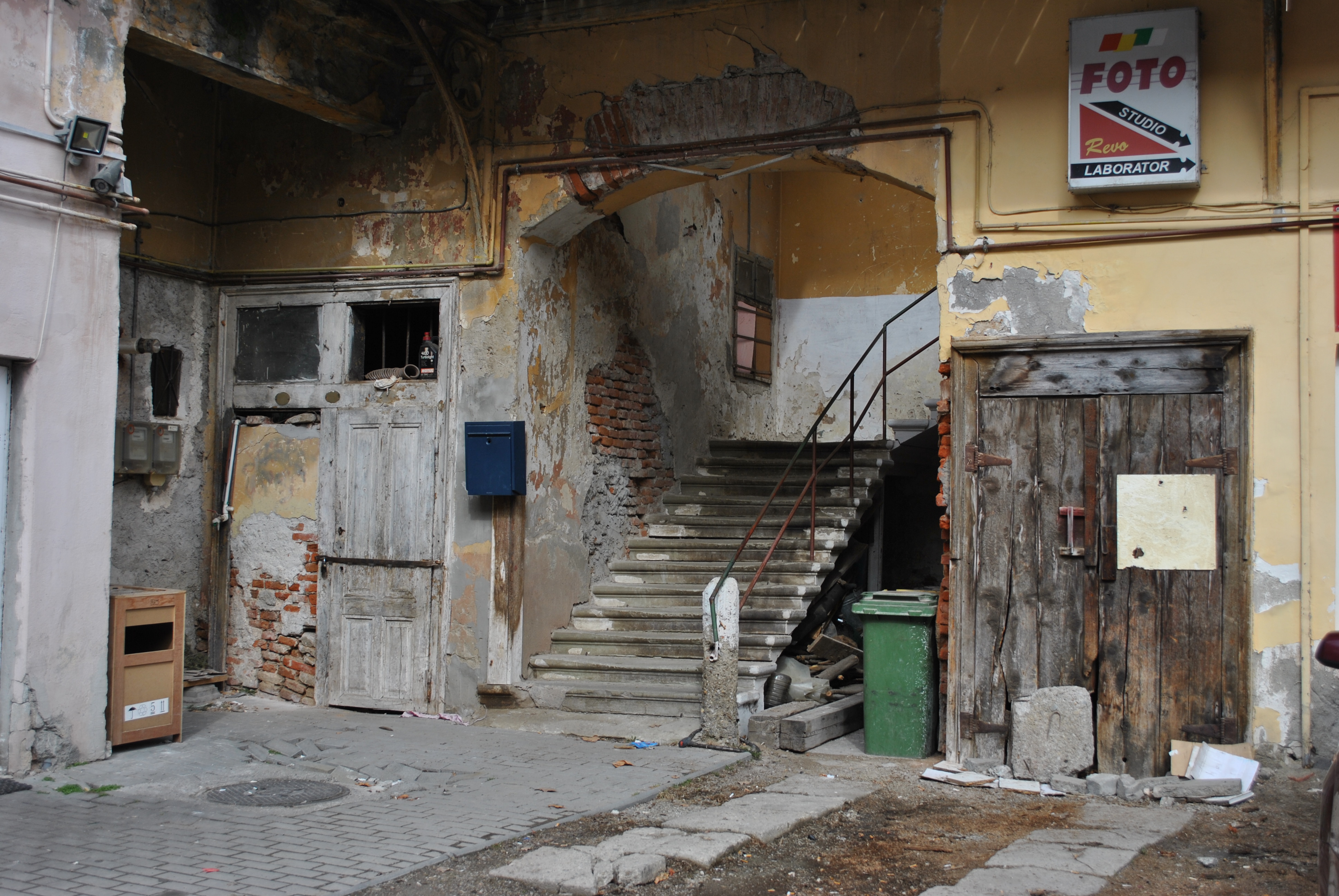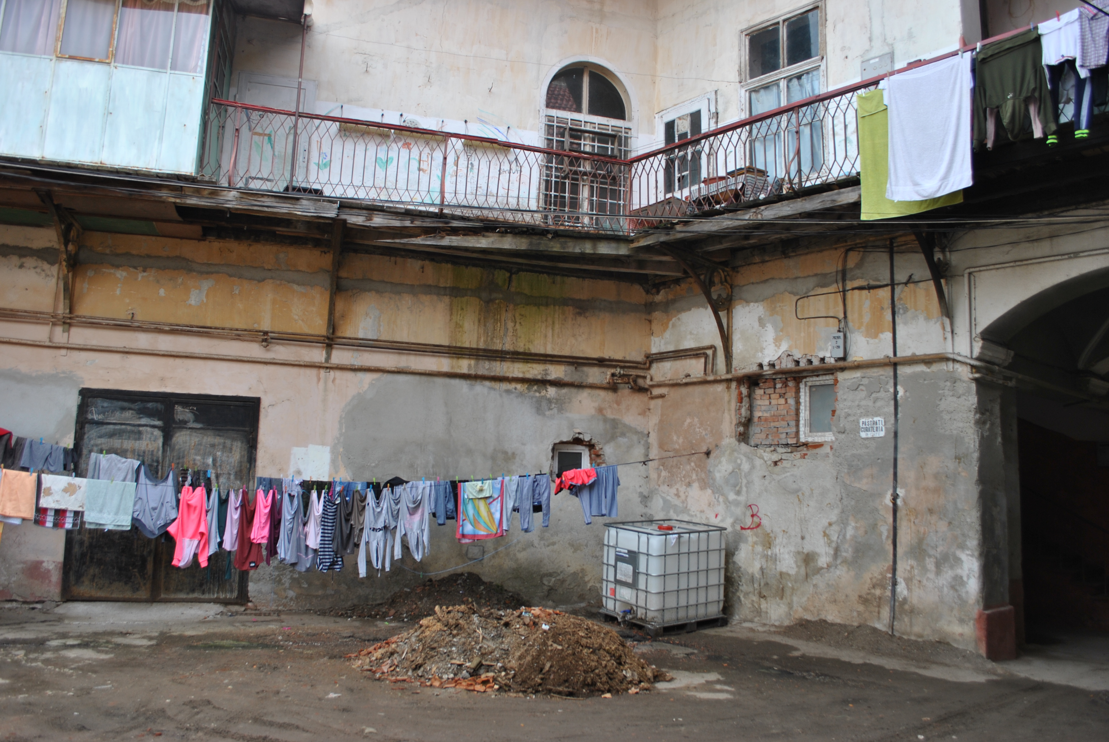 Vorba românească ,,Afară-i vopsit gardul şi-năuntru-i leopardul” se potriveşte ca o mănuşă pentru centrul Făgăraşului.  Un adevărat ghetou  este înfăţişat în Piaţa Republicii la numerele 21 şi 27, la doi paşi de sediul Primăriei Făgăraş. Sunt clădiri vechi, cândva mândria urbei, dar astăzi reale surse de infecţie şi de pericol pentru viaţa şi sănătatea oamenilor. În aceste curţi comune locuiesc făgărăşeni în condiţii inumane. Dacă în interior locatarii şi-au amenajat condiţii prielnice de locuit, în exterior pericolul îi pândeşte la tot pasul. Imobilul de la numărul 21 a fost retrocedat în baza legilor postdecembriste, iar persoana împroprietărită după 2014 trăieşte în Austria.  Nu pare însă deranjat de dezastrul în care zace proprietatea lui, dar nici n-a fost sancţionat pentru a aduce imobilul în condiţii bune de locuit şi de siguranţă. La numărul 27, Primăria Făgăraş  încasează chirii de la locatari, dar în schimbul acestora nu oferă nimic.