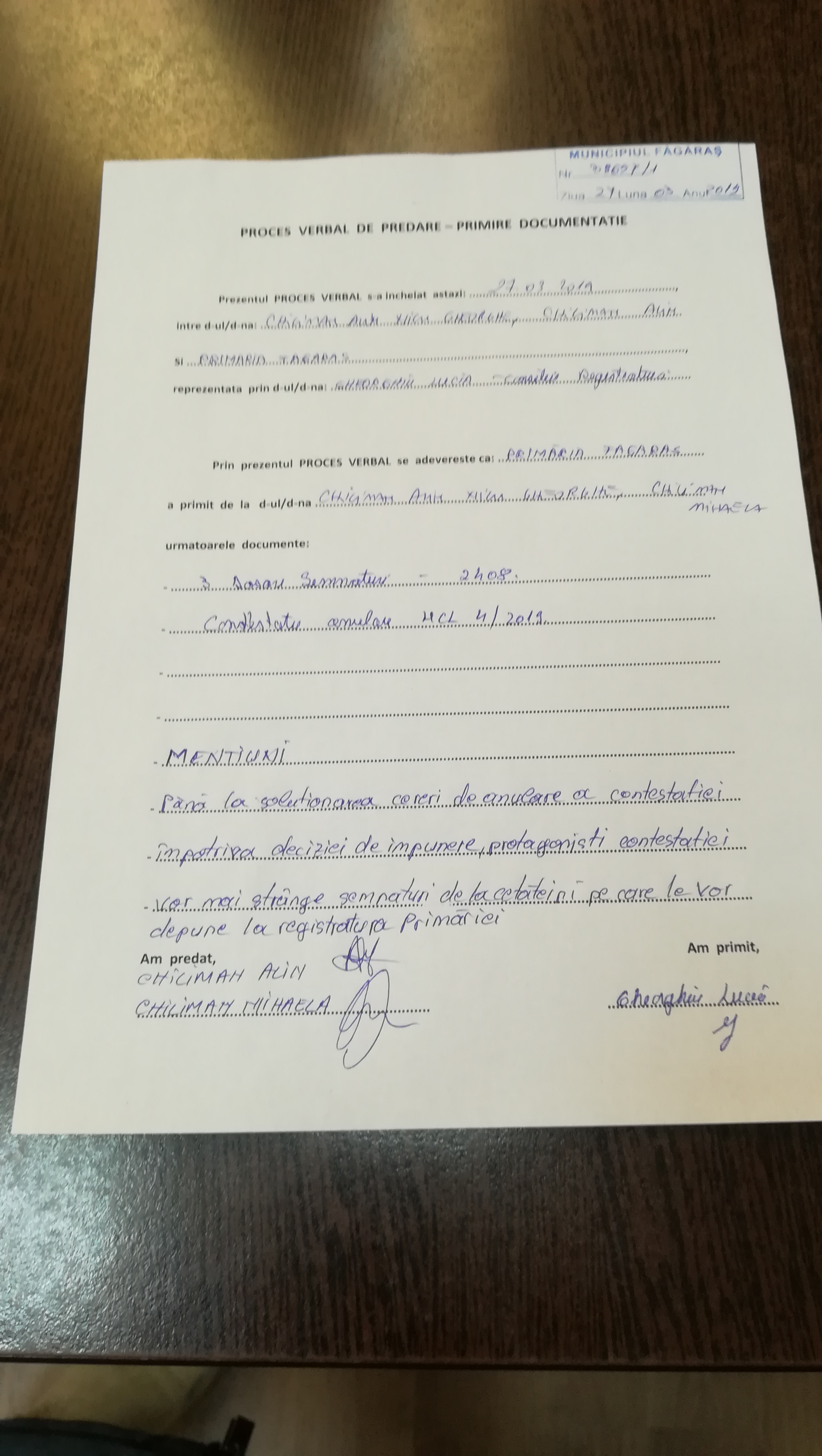 dav dav dav dav dav dav dav dav dav 2408. Este numărul de semnături strânse de la cetăţenii Făgăraşului prin campania civică al cărei scop este anularea taxei de salubritate adoptată de Municipalitate la valoare de 13 lei/lună pentru persoanele fizice. Dar campania continuă. Campania iniţiată de doi făgărăşeni tineri, Alin şi Mihaela Chiliman, s-a întins pe parcursul a doar 10 zile, timp în care făgărăşenii s-au implicat ca niciodată până acum. Şi asta chiar dacă iniţiatorii s-au bazat pe reţelele de socializare, dar şi pe nemulţumirile făgărăşenilor. Miercuri, 27 martie 2019, iniţiatorii Alin şi Mihaela Chiliman însoţiţi de doi dintre voluntarii campaniei, Marin Cruceru şi Alice Chiujdea, au depus la Registratura Primăriei Făgăraş documentaţia prin care speră ca doleanţele făgărăşenilor să fie analizate şi puse în aplicare de aleşii locali, primarul Făgăraşului şi Consiliul Local Făgăraş. Contestaţia semnată de cei doi iniţiatori însoţită de 3 dosare cu semnăturile făgărăşenilor în număr de 2408 au fost predate cu proces verbal la Registratură, când s-a primit numărul de înregistrare 38.657/27 martie 2019.
