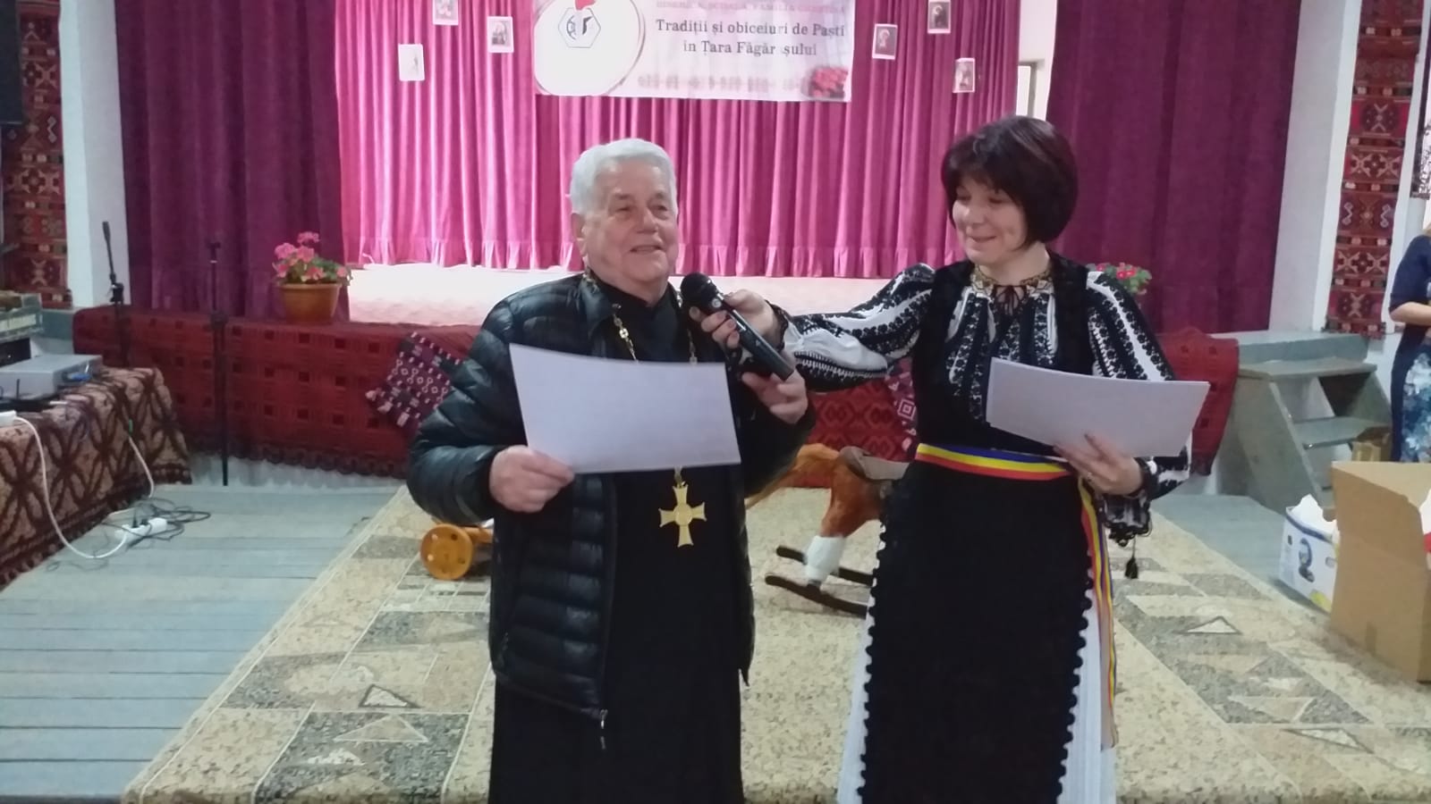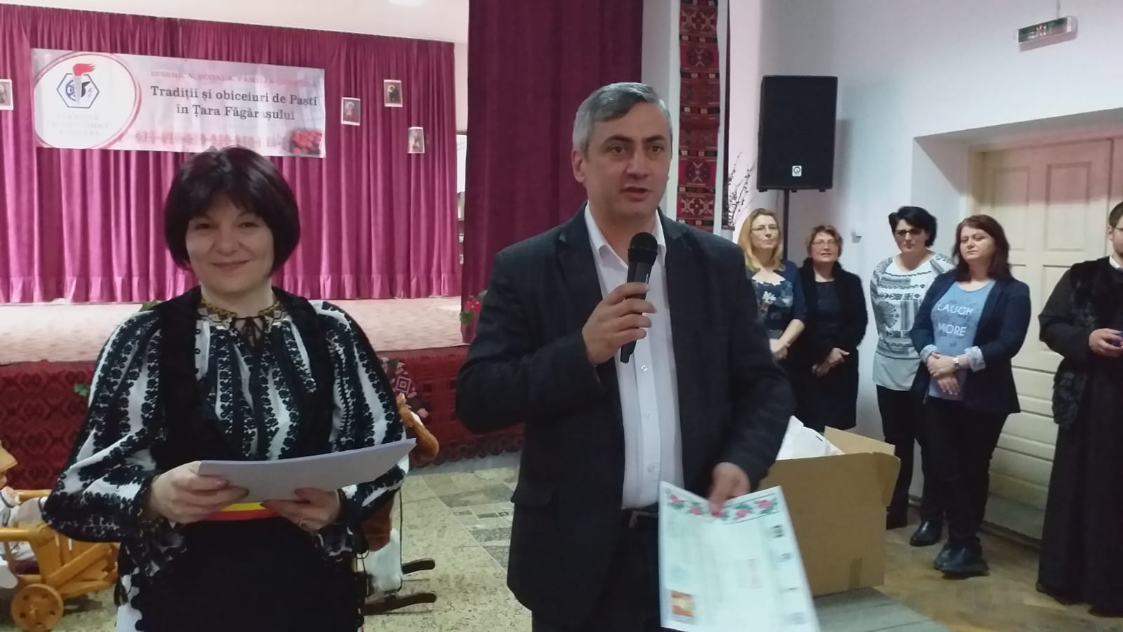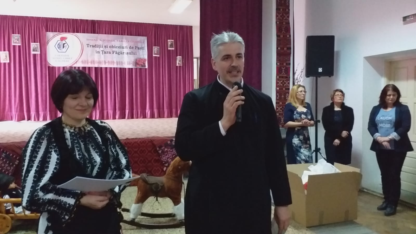 Miercuri, 17 aprilie a.c. s-a desfășurat, în cadrul Colegiului ,,Aurel Vijoli“ din Făgăraș, festivalul concurs intitulat sugestiv ,,Tradiții și obiceiuri de Paști în Țara Făgărașului“. Festivalul este organizat în cadrul proiectului educațional regional ,,Biserica, Școala, familia creștină“ înscris în calendarul activităților educatice regionale pe anul 2019, domeniul cultural artistic-folclor, tradiții și obiceiuri prilejuite de praznicul Învierii Mântuitorului. Organizatorul proiectului este profesoara Ileana Pandrea, ajutată de Liliana Spiridon, directoarea Colegiului ,,Aurel Vijoli“ și directoarea adjunct, Andreea Suciu. Partenerii au fost Parohia Ortodoxă Făgăraș-Combinat, Protopopiatul Ortodox Român Făgăraș, Fundația Culturală ,,Negru Vodă“, Asociația Ortopraxia-Făgăraș, Asociația ,,Sfînta Maria“- Cristian, Asociația ,,Procult“- Mărgineni și Muzeul Țării Făgărașului ,,Valer Literat“. Manifestarea devenită tradiţie a adunat în acest an 41 de licee și școli gimnaziale din toată țara, dar a depăşit şi graniţele ei, înscriind în concurs Școala Parohială ,,Saint George Romanian“ Ortodox Catedral, thfield din Michigan, SUA. Evenimentul s-a bucurat de participarea P.S. Ilarion Făgărășeanul, Arhiepiscop Vicar al Arhiepiscopiei Sibiului. Şi IŞJ Braşov şi-a trimis un reprezentant, pe prof. Ion Negrilă, inspectorul şcolar general adjunct.