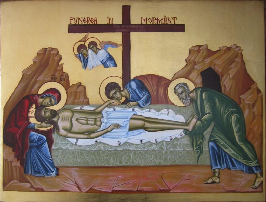 Există un tropar esenţial care se cântă în Sîmbăta Mare: ,,Prin moarte ai prefăcut ce era muritor şi prin îngropare ce era stricăcios; dăruieşti nestricăciune ca un Dumnezeu şi veşnicie zidirii“. Fiul lui Dumnezeu a experimentat viaţa de pământean, dar şi moartea acestuia, odată cu neputinţa firii slăbite şi efemere a omului. S-a coborît până în cele mai întunecate locuri ale abisului sufletului uman, pentru a-l înălţa la lumină şi a-l reda dumnezeirii. ,,Tâlcuind acest tropar, Sfântul Nicodim Aghioritul spune că doctorii trupului obişnuiesc să vindece bolile trupeşti folosind medicamente opuse, adică usucă suferinţele umede şi umezesc suferinţele uscate sau încălzesc acolo unde este rece din cauza bolii şi răcesc acolo unde este fierbinte. Însă Hristos, ca un adevărat doctor al oamenilor, face tocmai invers, deoarece prin medicamente de un anume fel, vindecă boli de acelaşi fel. Prin sărăcia Lui, tămăduieşte sărăcia lui Adam, prin propria Sa ocară, şterge ocara lui Adam, prin moartea sa, vindecă moartea lui Adam şi prin îngropare, vindecă îngroparea protopărintelui. În plus, pentru că Adam a coborât în Iad, Hristos s-a dus până acolo să îl elibereze. De aici înţelegem dragostea lui Dumnezeu, dar şi înţelepciunea Sa, pentru că, golindu-Se pe Sine, l-a îndumnezeit pe om“. (Hierotheos Vlachos)