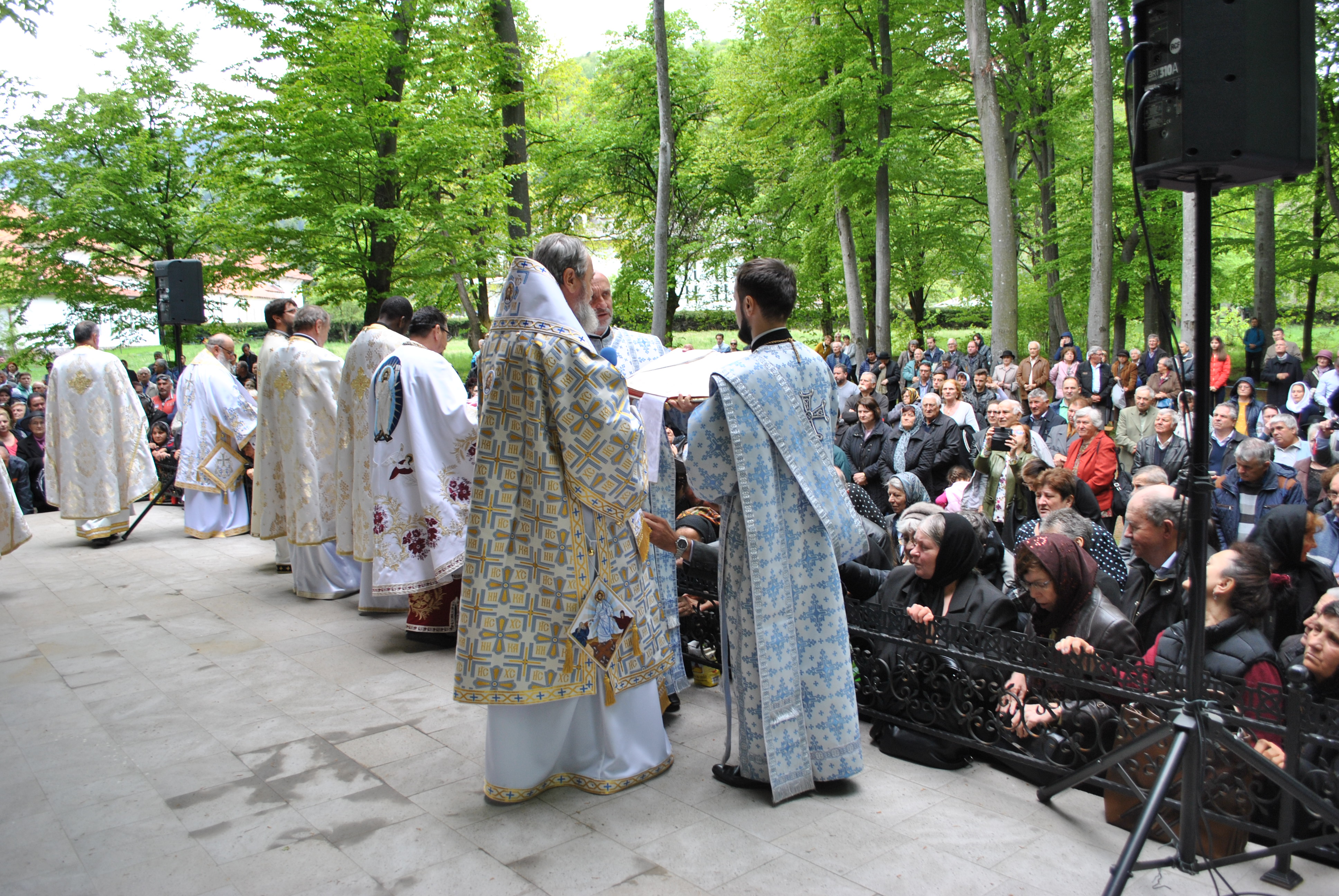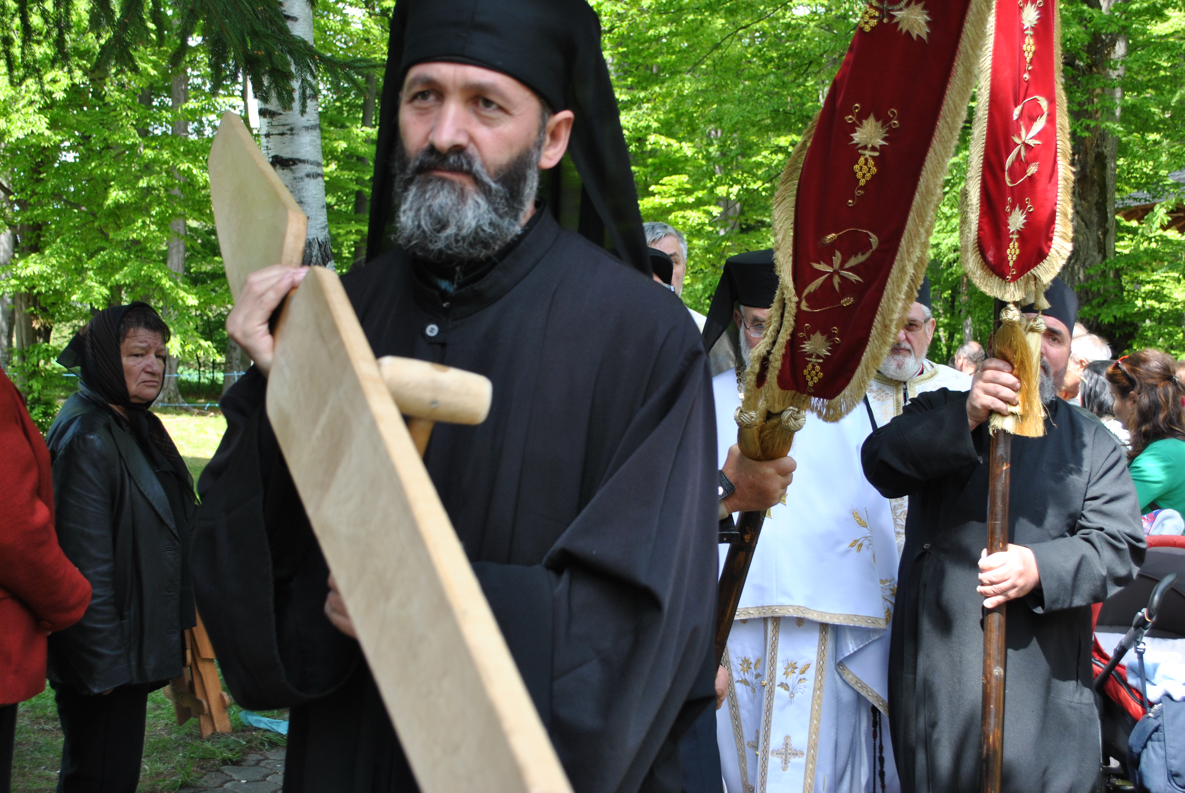 În Vinerea din Săptămâna Luminată, 3 mai 2019,  parcă toate drumurile duceau spre Mănăstirea Brâncoveanu de la Sâmbăta de Sus unde se prăznuia hramul   Izvorul Tămăduirii. Aglomeraţie mare încă de la intrarea în complexul turistic, iar echipaje de poliţişti şi jandarmi încercau să fluidizeze traficul spre mănăstire.  Comercianţi de tot felul, cu suveniruri, cu icoane, cu mici, bere, fripturi sau cozonaci, te priveau iscoditor spre portofel, unii chiar invitându-te obsedant să guşti din bunătăţile expuse. Dar cu cât te apropiai de poarta mănăstirii şi treceai de persoanele care îţi cereau milostenie,  arătându-ţi handicapurile sau de femeile cerşetoare cu copii în braţe, liniştea se instala treptat. Muntele îţi da, parcă, o siguranţă rece şi plăcută, în timp ce soarele ce îndepărtase norii îţi  zâmbea uşor printre copaci. În jurul altarului din pădure, lume multă, iar   liniştea pădurii era întreruptă de troparul Învierii. Prin  staţiile montate la altar, liturghia răzbătea peste culmile munţilor.  Un loc mai minunat precum acesta n-am mai găsit, spuneau unii credincioşi veniţi de departe pentru acest praznic.  Oameni din nordul ţării, din judeţele din sud,  dar şi din împrejurimile Ţării Făgăraşului s-au aşezat în jurul altarului din pădure cu privirile aţintite spre soborul de preoţi. IPS Laurenţiu Streza, episcopul Ilarion Făgărăşeanul şi alţi zeci de preoţi  au  oficiat slujba, iar Colara  Armonia de la Constanţa a dat replicile.  Cei mai vârstnici enoriaşi au reuşit să facă un arc peste timp şi să revadă altarul din pădure atunci când slujbele erau oficiate de stareţul Mănăstirii Brâncoveanu, Arsenie Boca. Era prin anii 1947-1948. Duminică de duminică altarul era înconjurat de mulţime multă dornică să-i asculte vorbele şi poveţele pline de duh. Mitul Părintelui Arsenie Boca dăinuie peste Ţara Făgăraşului şi nu numai. Îmi vine în minte întrebarea: ,,Unde ne sunt marii duhovnici? Îi mai avem?”, gândindu-mă la Părintele Arsenie care slujea mulţimilor din acest loc. Sau la Părintele Teofil Părăianu, un mare duhovnic de la această mănăstire pe care îl căutau oameni din toate colţurile ţării. Cât de greu poate fi să predici după un înaintaş aşa cum a fost Părintele Arsenie Boca! ,,Unde sunt cei ce nu mai sunt” spunea Nichifor Crainic în poezia sa. Îmi doream să fie pomeniţi la slujba de hram, dar nu s-a găsit nimeni să le rostească   numele spre aducere aminte. În schimb, lumea ajunsă la acest mare praznic i-a avut  în minte şi ne-a vorbit despre ei  şi minunile săvârşite de aceşti mari duhovnici ai ţării, Pr. Arsnie Boca, pr. Teofil Părăianu.