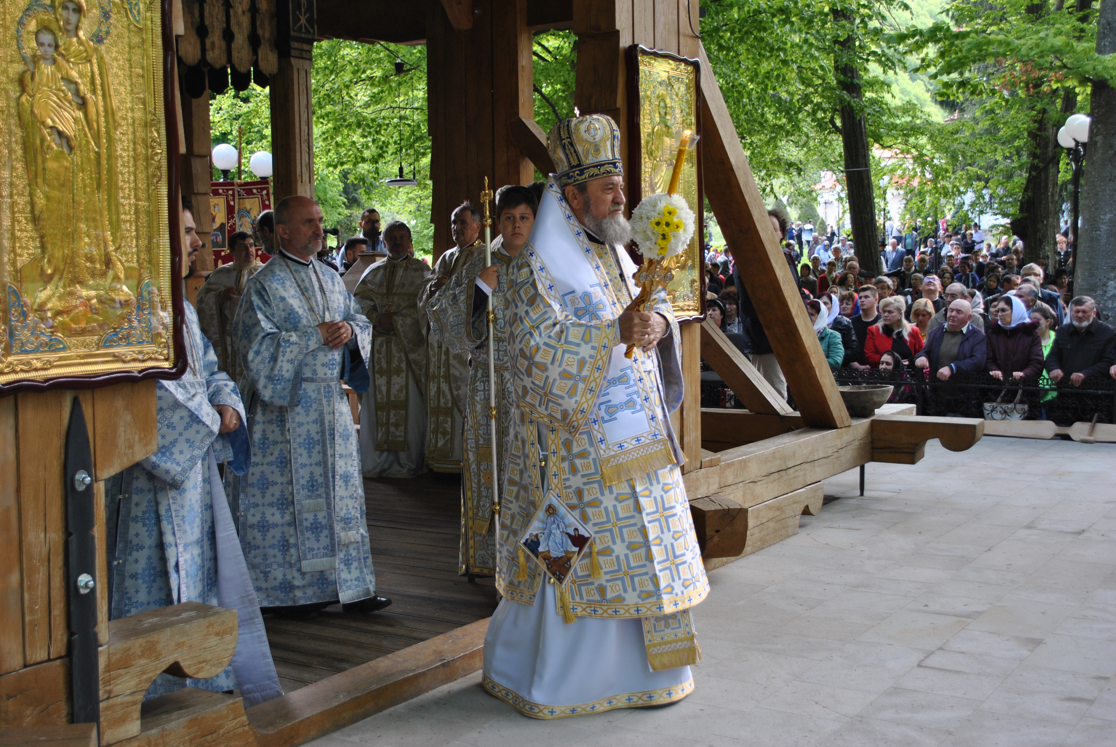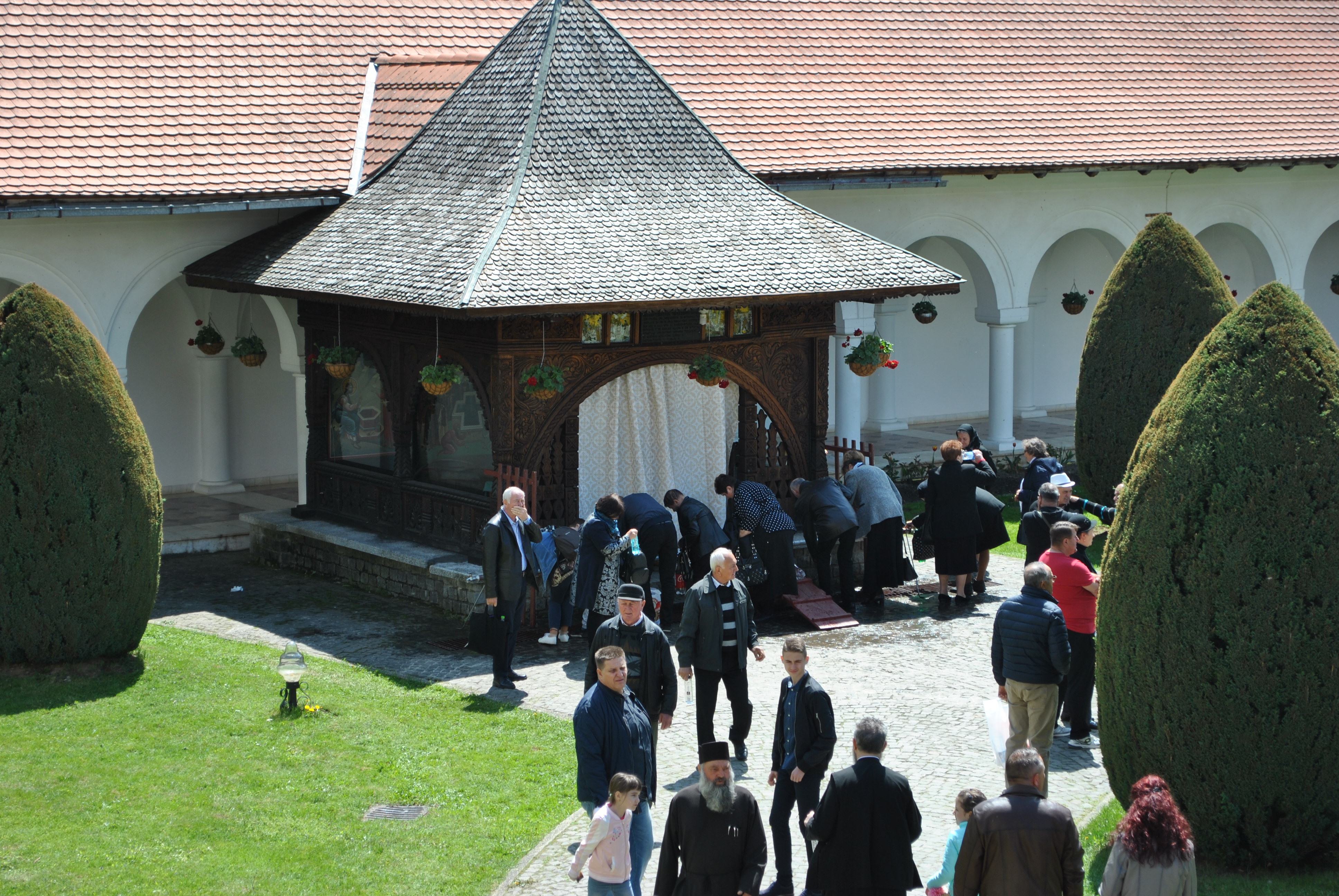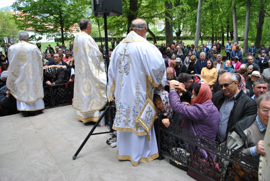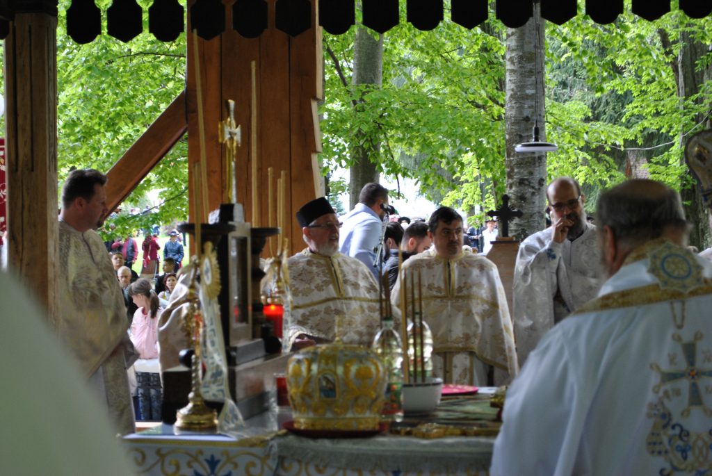În Vinerea din Săptămâna Luminată, 3 mai 2019, parcă toate drumurile duceau spre Mănăstirea Brâncoveanu de la Sâmbăta de Sus unde se prăznuia hramul Izvorul Tămăduirii. Aglomeraţie mare încă de la intrarea în complexul turistic, iar echipaje de poliţişti şi jandarmi încercau să fluidizeze traficul spre mănăstire. Comercianţi de tot felul, cu suveniruri, cu icoane, cu mici, bere, fripturi sau cozonaci, te priveau iscoditor spre portofel, unii chiar invitându-te obsedant să guşti din bunătăţile expuse. Dar cu cât te apropiai de poarta mănăstirii şi treceai de persoanele care îţi cereau milostenie, arătându-ţi handicapurile sau de femeile cerşetoare cu copii în braţe, liniştea se instala treptat. Muntele îţi da, parcă, o siguranţă rece şi plăcută, în timp ce soarele ce îndepărtase norii îţi zâmbea uşor printre copaci. În jurul altarului din pădure, lume multă, iar liniştea pădurii era întreruptă de troparul Învierii. Prin staţiile montate la altar, liturghia răzbătea peste culmile munţilor. Un loc mai minunat precum acesta n-am mai găsit, spuneau unii credincioşi veniţi de departe pentru acest praznic. Oameni din nordul ţării, din judeţele din sud, dar şi din împrejurimile Ţării Făgăraşului s-au aşezat în jurul altarului din pădure cu privirile aţintite spre soborul de preoţi. IPS Laurenţiu Streza, episcopul Ilarion Făgărăşeanul şi alţi zeci de preoţi au oficiat slujba, iar Colara Armonia de la Constanţa a dat replicile. Cei mai vârstnici enoriaşi au reuşit să facă un arc peste timp şi să revadă altarul din pădure atunci când slujbele erau oficiate de stareţul Mănăstirii Brâncoveanu, Arsenie Boca. Era prin anii 1947-1948. Duminică de duminică altarul era înconjurat de mulţime multă dornică să-i asculte vorbele şi poveţele pline de duh. Mitul Părintelui Arsenie Boca dăinuie peste Ţara Făgăraşului şi nu numai. Îmi vine în minte întrebarea: ,,Unde ne sunt marii duhovnici? Îi mai avem?”, gândindu-mă la Părintele Arsenie care slujea mulţimilor din acest loc. Sau la Părintele Teofil Părăianu, un mare duhovnic de la această mănăstire pe care îl căutau oameni din toate colţurile ţării. Cât de greu poate fi să predici după un înaintaş aşa cum a fost Părintele Arsenie Boca! ,,Unde sunt cei ce nu mai sunt” spunea Nichifor Crainic în poezia sa. Îmi doream să fie pomeniţi la slujba de hram, dar nu s-a găsit nimeni să le rostească numele spre aducere aminte. În schimb, lumea ajunsă la acest mare praznic i-a avut în minte şi ne-a vorbit despre ei şi minunile săvârşite de aceşti mari duhovnici ai ţării, Pr. Arsnie Boca, pr. Teofil Părăianu.
