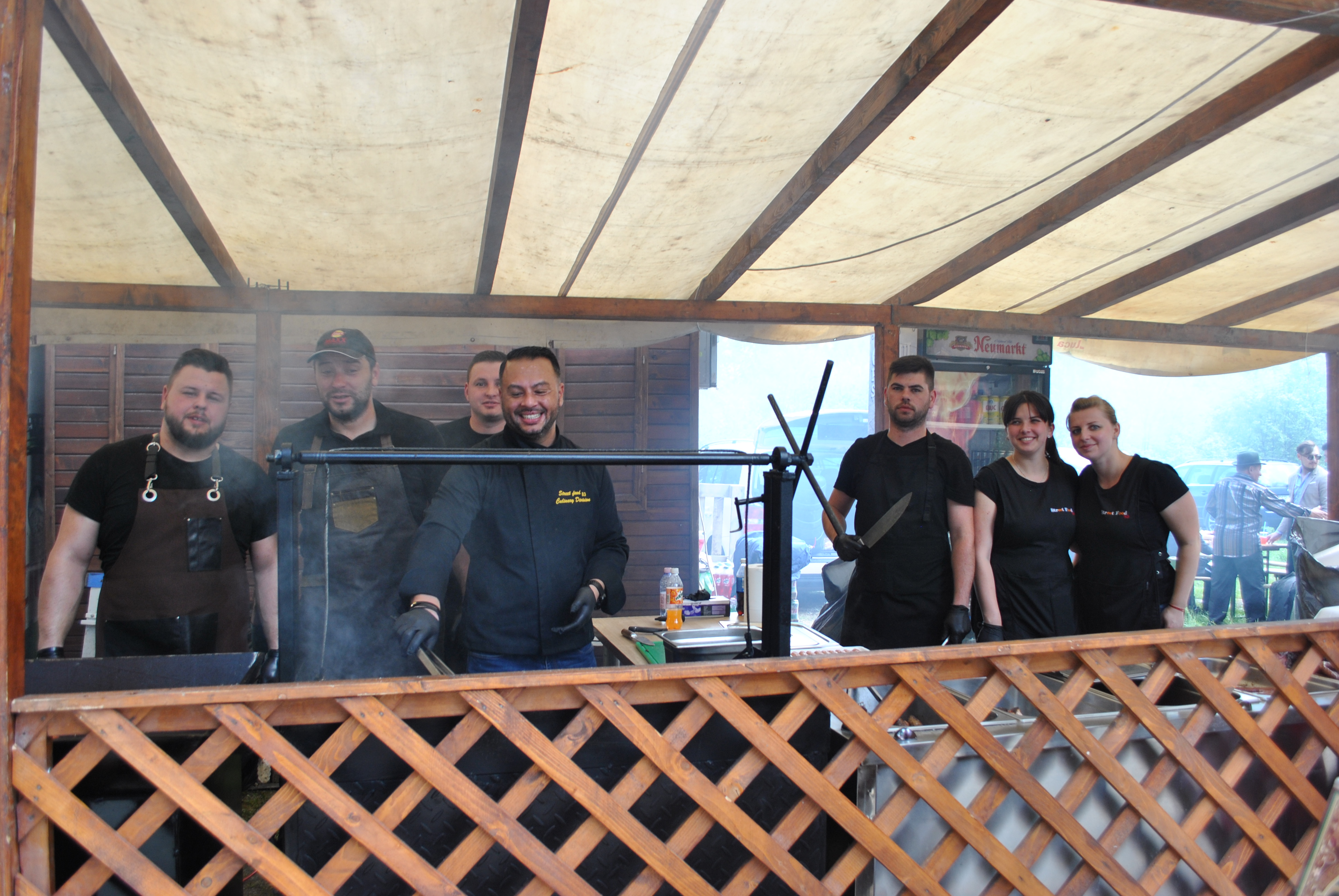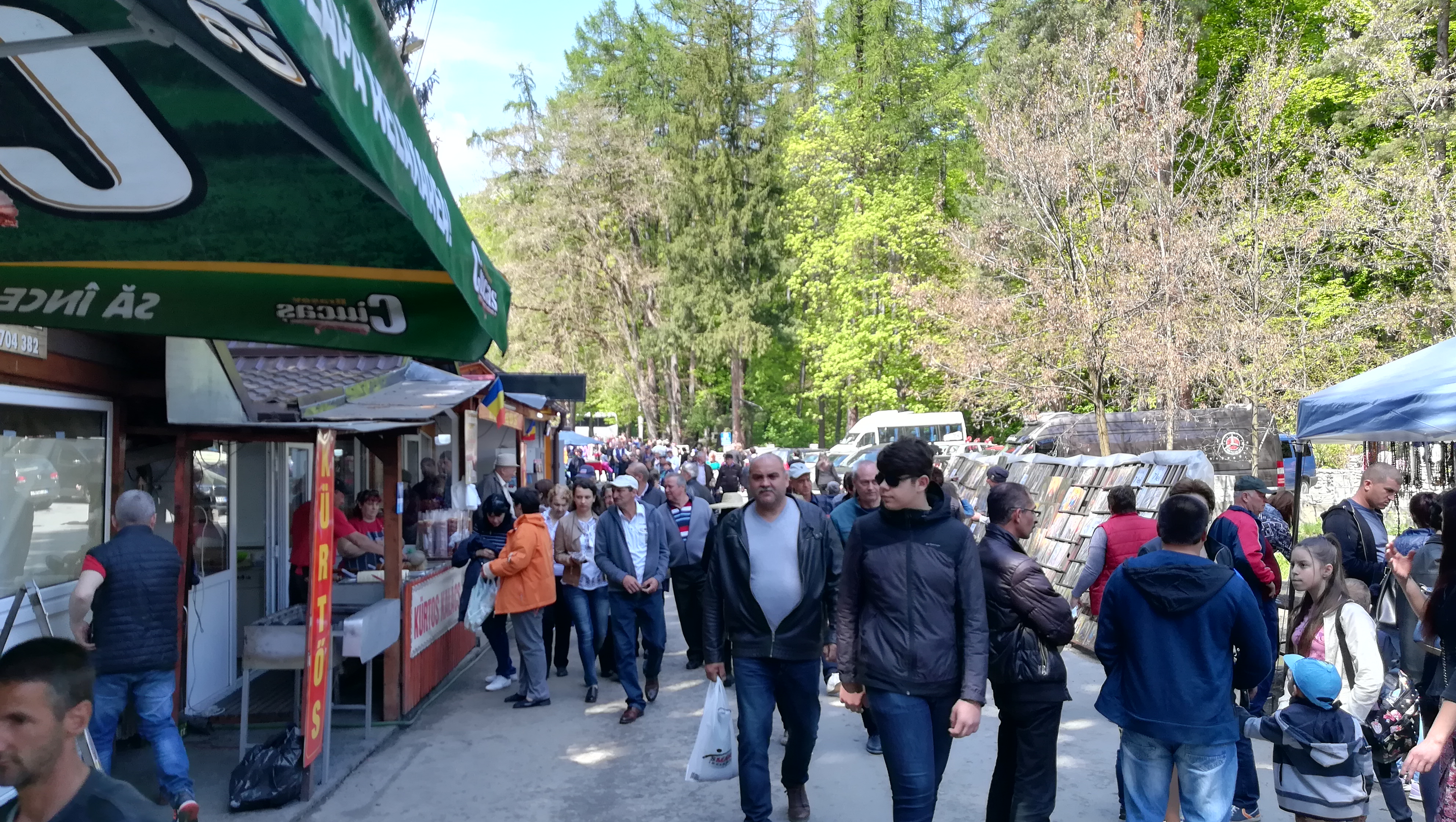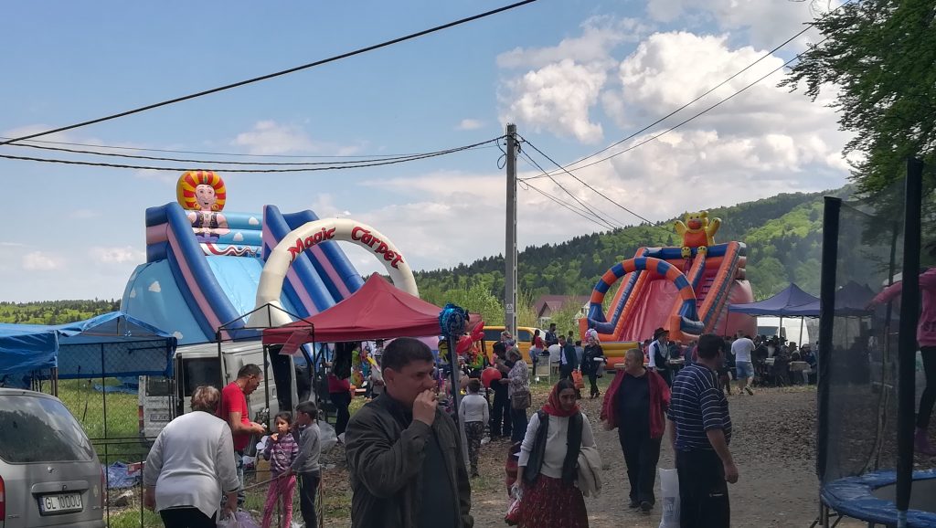 Fumul de la grătarele încinse, muzica şi jocurile pentru copii erau întinse în partea de jos a complexului. Negustori de toate soiurile, cu tarabe la care se vindeau de la icoane, artizanat, gemuri, miere, ceaune, jucării, cozonaci, clătite, mici, bere. Cel mai căutat stand era Street Food 83 unde echipa coordonată de bucătarul George Grancea nu prididea să onoreze comenzile de mici, grătare şi bere. Peste tot mesele erau pline de oameni, cei mai mulţi fiind de etie rromă. Un episod jenant s-a petrecut în timpul slujbei religioase când unei ţigănci i s-afăcut rău şi a leşinat. Deodată s-au adunat toţi semenii acesteia, cu ţipete şi jale fără să ţină cont că deranjează evenimentul religios. Jandarmii au fost cei care au liniştit spiritele şi i-au îndepărtat pe rromi din zonă.