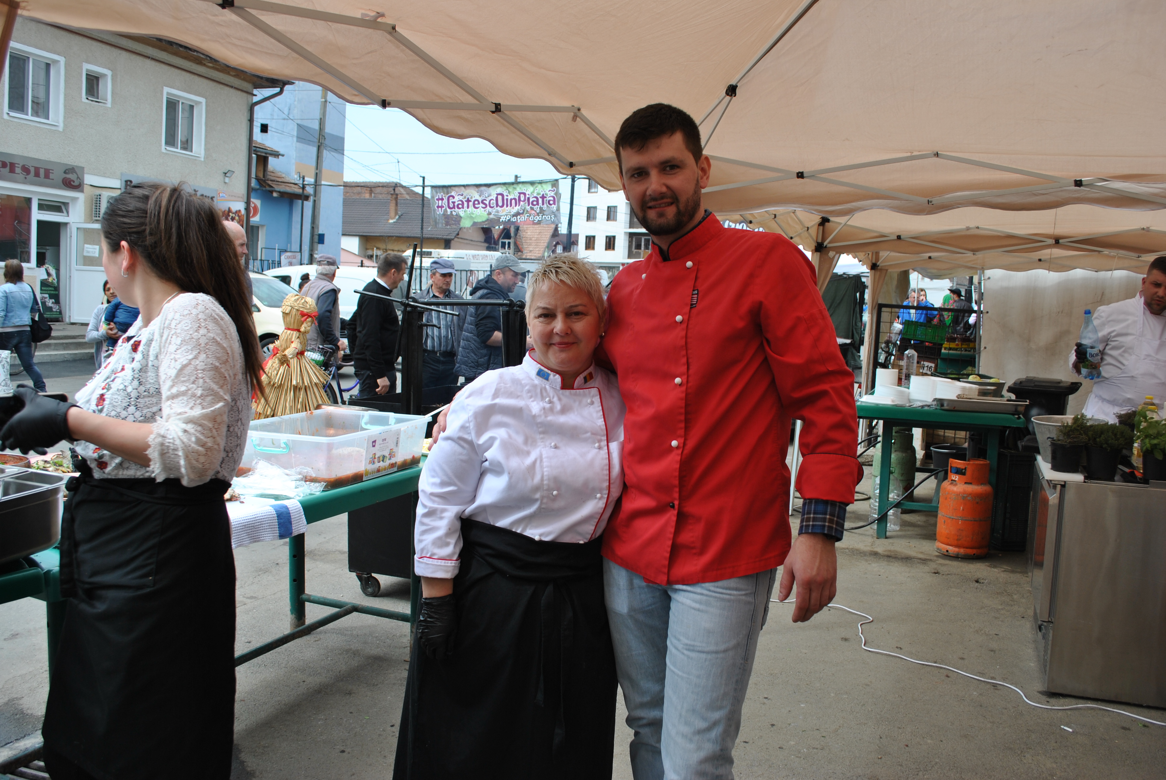 Şapte bucătari, unii cu titlul de chef bucătar, formează o echipă care participă la toate  evenimentele gastronomice care se organizează în Ţara Făgăraşului. Carmen Popa (Coni)  cu fiicele ei Miruna şi Ioana, George Grancea, Gabriel Bucelea, Rareş Simtion Daniel, Ana Maria Miclea  sunt bucătarii evenimentelor.  Pentru ei nu este o problemă să pregătească un eveniment public, aducându-şi în standuri improvizate toată dotarea unei bucătării. I-am găsit la muncă  în două zile consecutive  în cadrul proiectului ,,GătescdinPiaţă” iniţiat de directorul Pieţei Agroalimentare  Făgăraş, Tiberiu   Drăgoi. Au gătit în faţa publicului,  folosind numai  produse din piaţă oferite de producători şi comercianţi.  Făgărăşenii au format coadă la  stand pentru a gusta preparatele  oferite de iscusiţii bucătari. Nici nu aveai cum să nu te opreşti în faţa farfuriilor frumos ornate. Mulţi dintre făgărăşeni au vrut să imortalizeze  preparatele şi pe bucătari, dar şi să obţină de la ei  reţete pentru unele  preparate.  Am stat de vorbă cu aceşti inimoşi bucătari şi am aflat secretele acestei meserii descoperite de fiecare în parte.