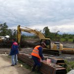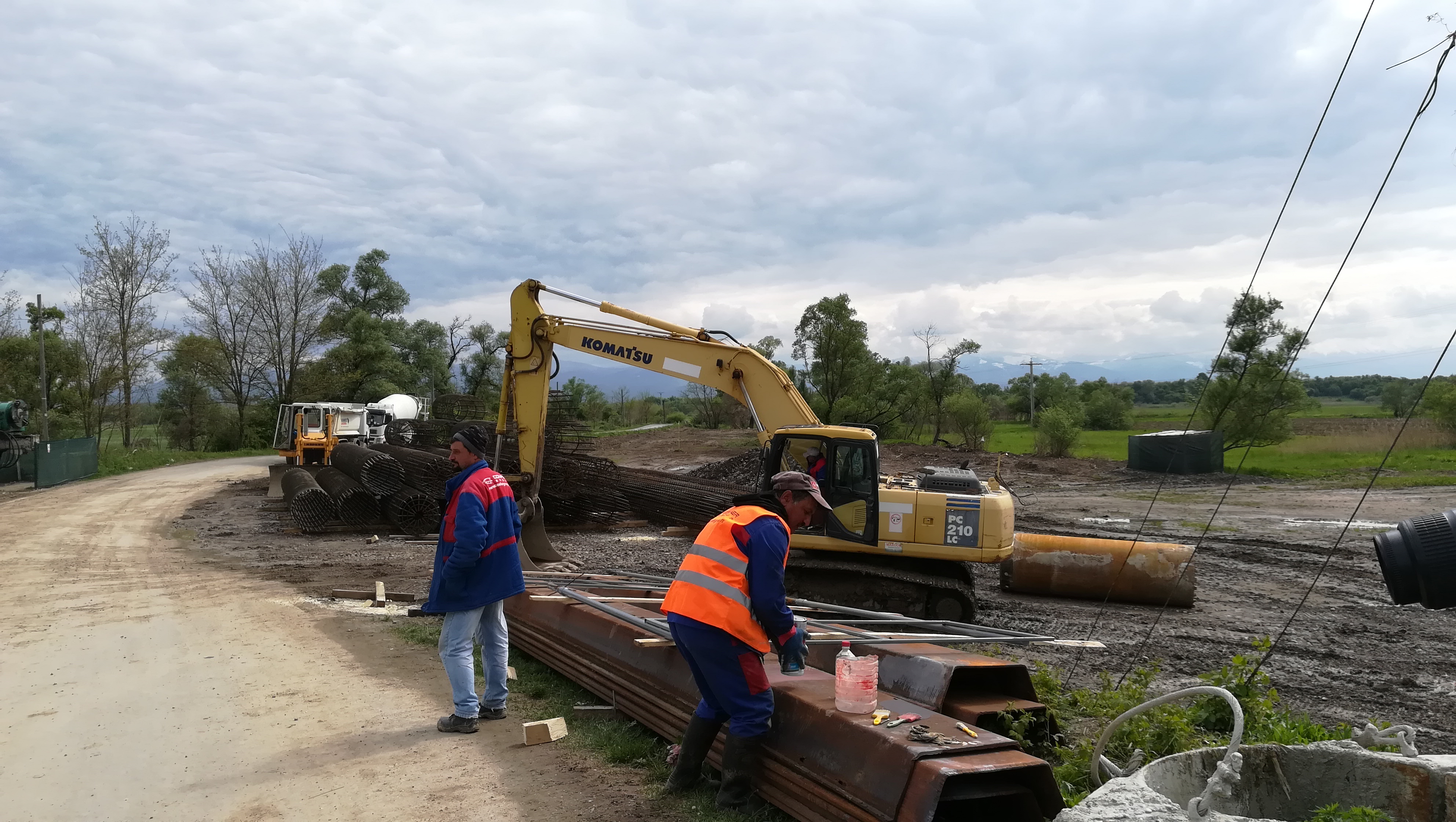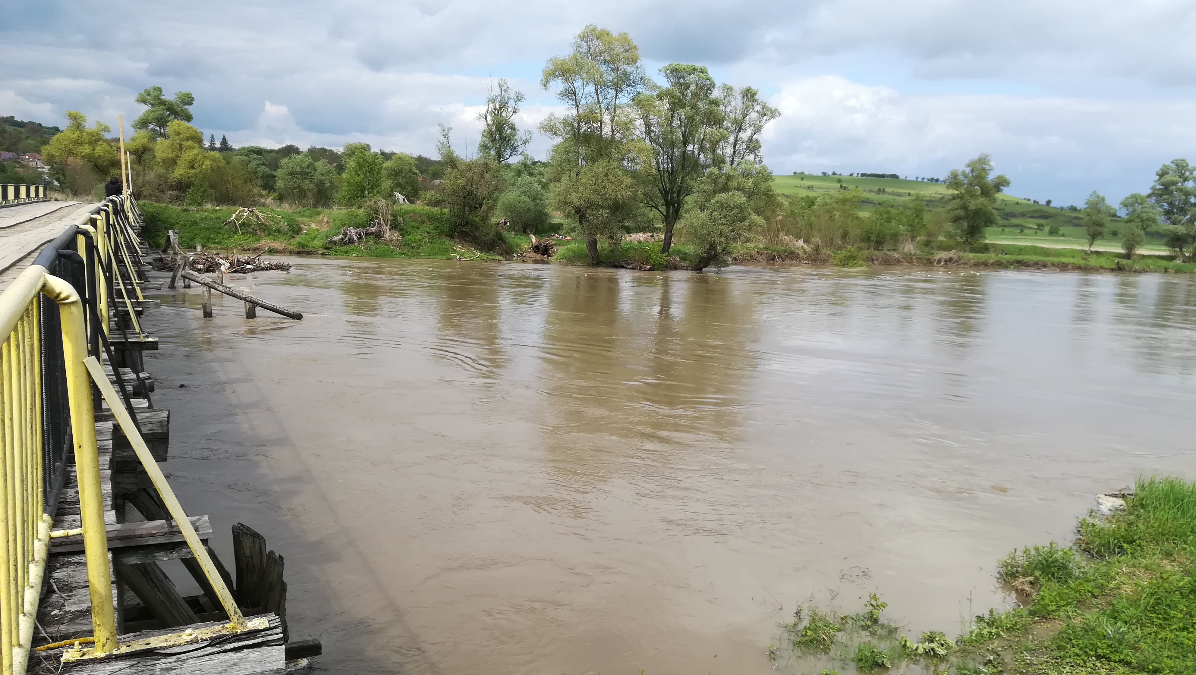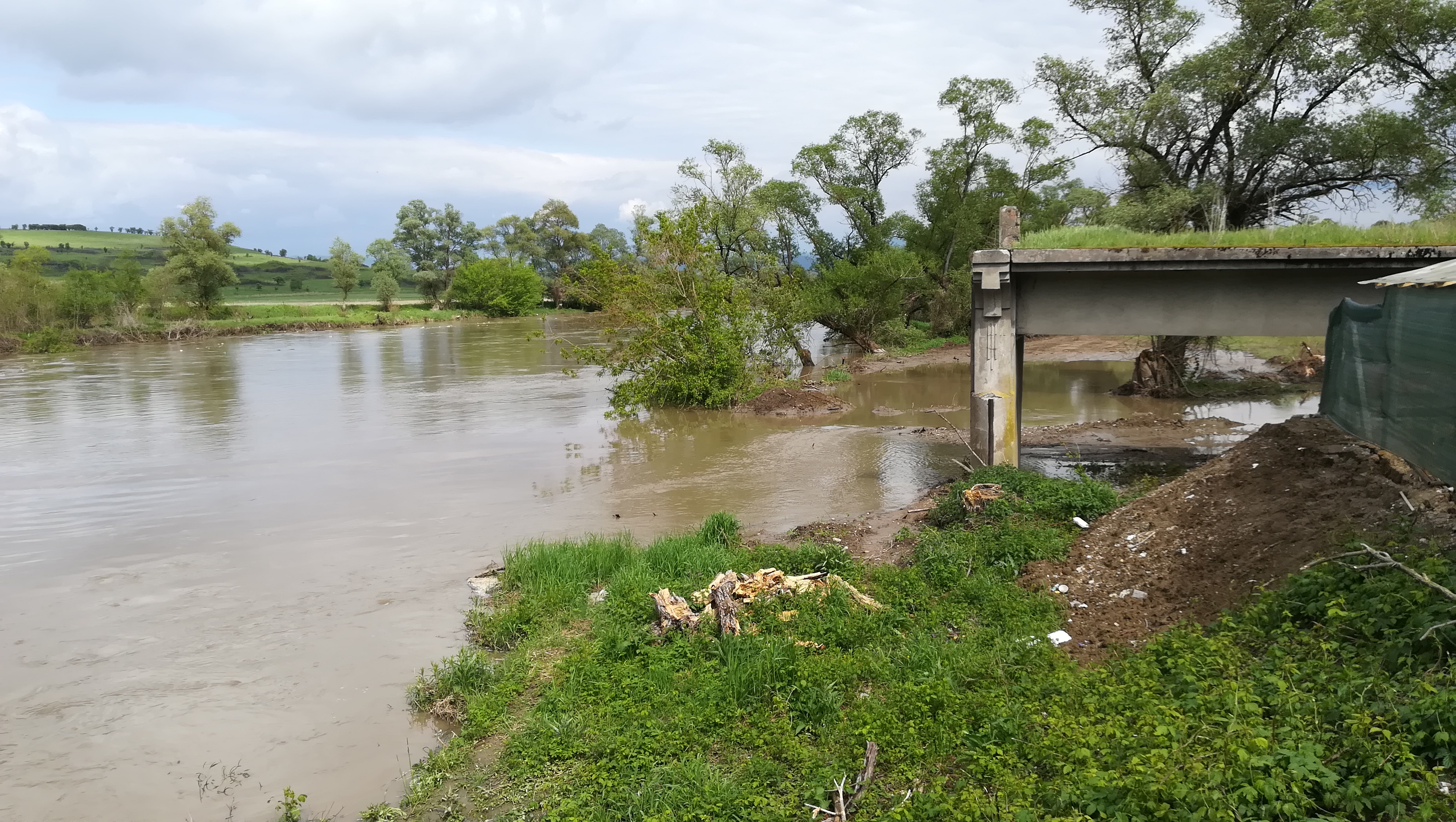 Pe şantierul de la Hălmeag deschis pe malul stâng al Oltului, miercuri, 8 mai, muncitorii lucrau la sudarea coloanelor din oţel care urmează să fie montate în râu cu ajutorului unei foreze. Aşa cum a spus Constantin Pilat, şeful deşantier, în această săptămână avea în plan să deschidă şantierul şi pe malul drept al Oltului. Ploile însă le va amâna termenele cu cel puţin o săptămână. ,,Avem platforma acoperită cu apă şi nu putem lucra. Este platforma paralelă cu podul vechi. Am organizat şantierul şi trebuia să ne mutăm pe celălalt mal, dar ploile ne-au dat peste cap. Condiţiile meteo nu sunt îmbucurătoare nici pentru următoarele zile. Am adus la Hălmeag foreza, pe care trebuia să o montăm paralel cu podul vechi pentru a monta coloanele de armătură, dar nu putem lucra deocamdată. Tot ce am lucrat s-a dus pe apa Oltului. La Comăna suntem mai avansaţi. S-au pus coloanele toate, mai este puţin la elevaţie. Apa a afectat şi şantierul de aici” a spus Pilat Constantin, şeful de şantier de la Hălmeag al firmei Confer SRL Oneşti.