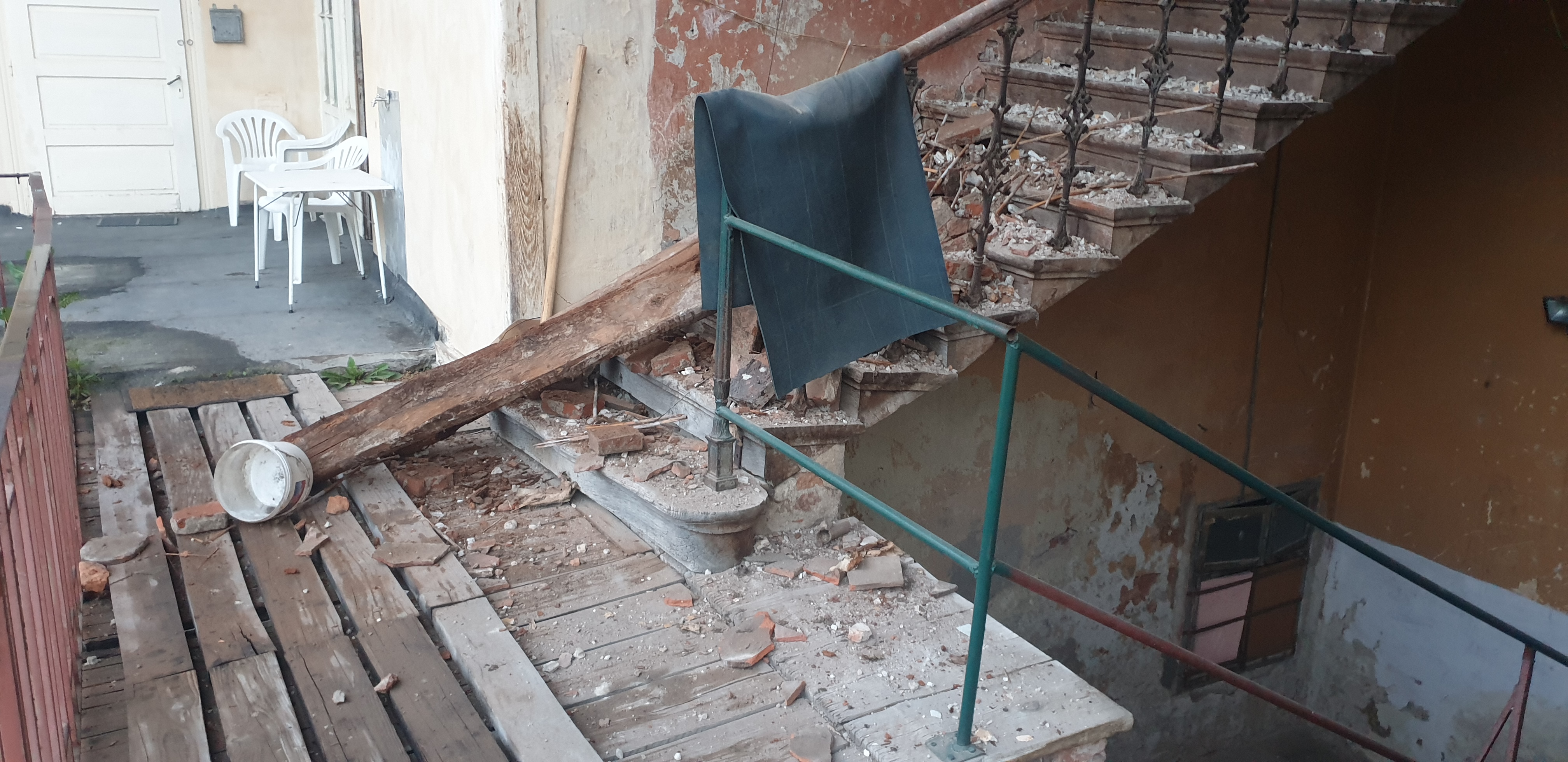 •  O parte din tavanul scării s-a prăbuşit în noaptea de 22/23 mai