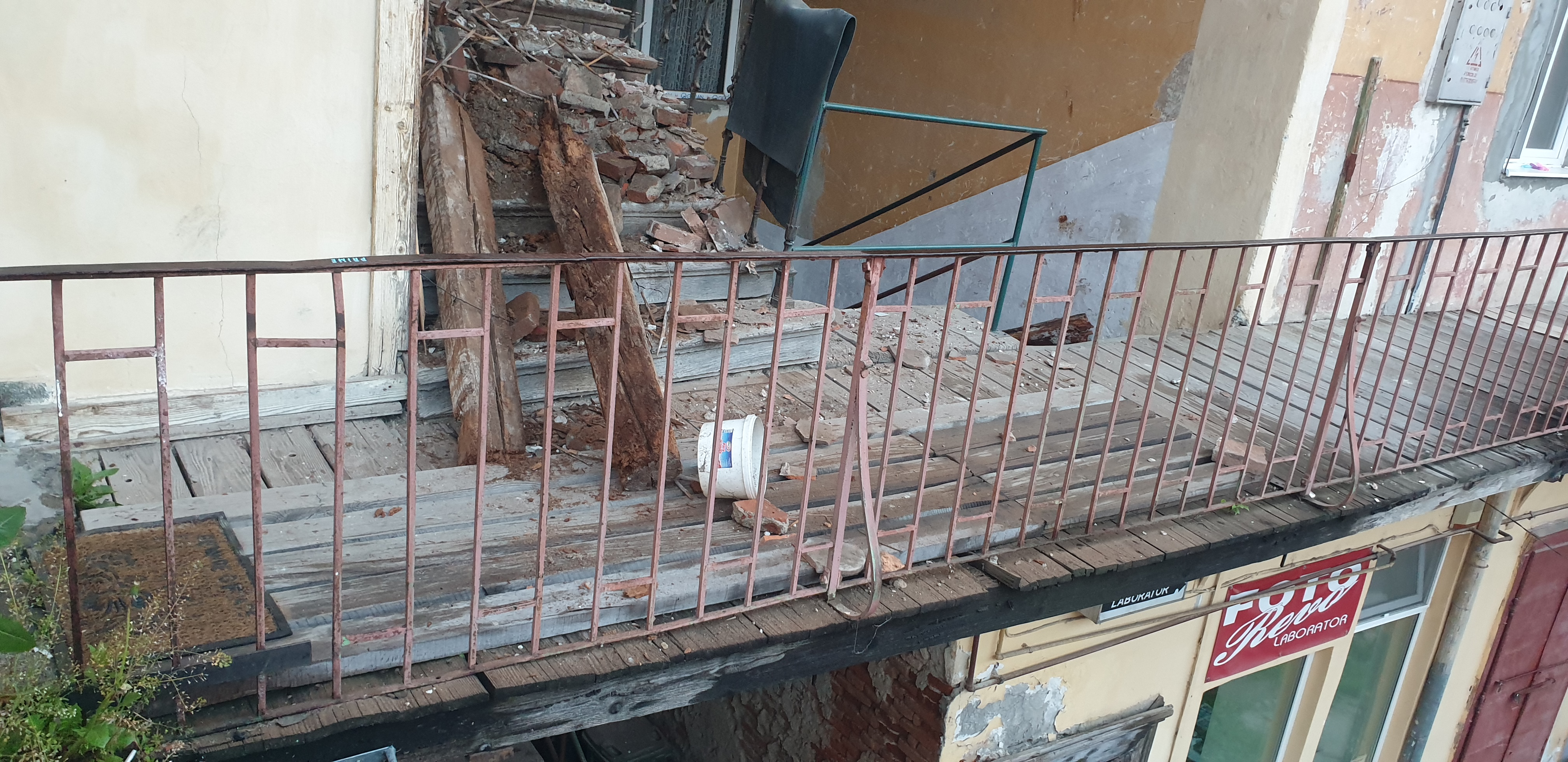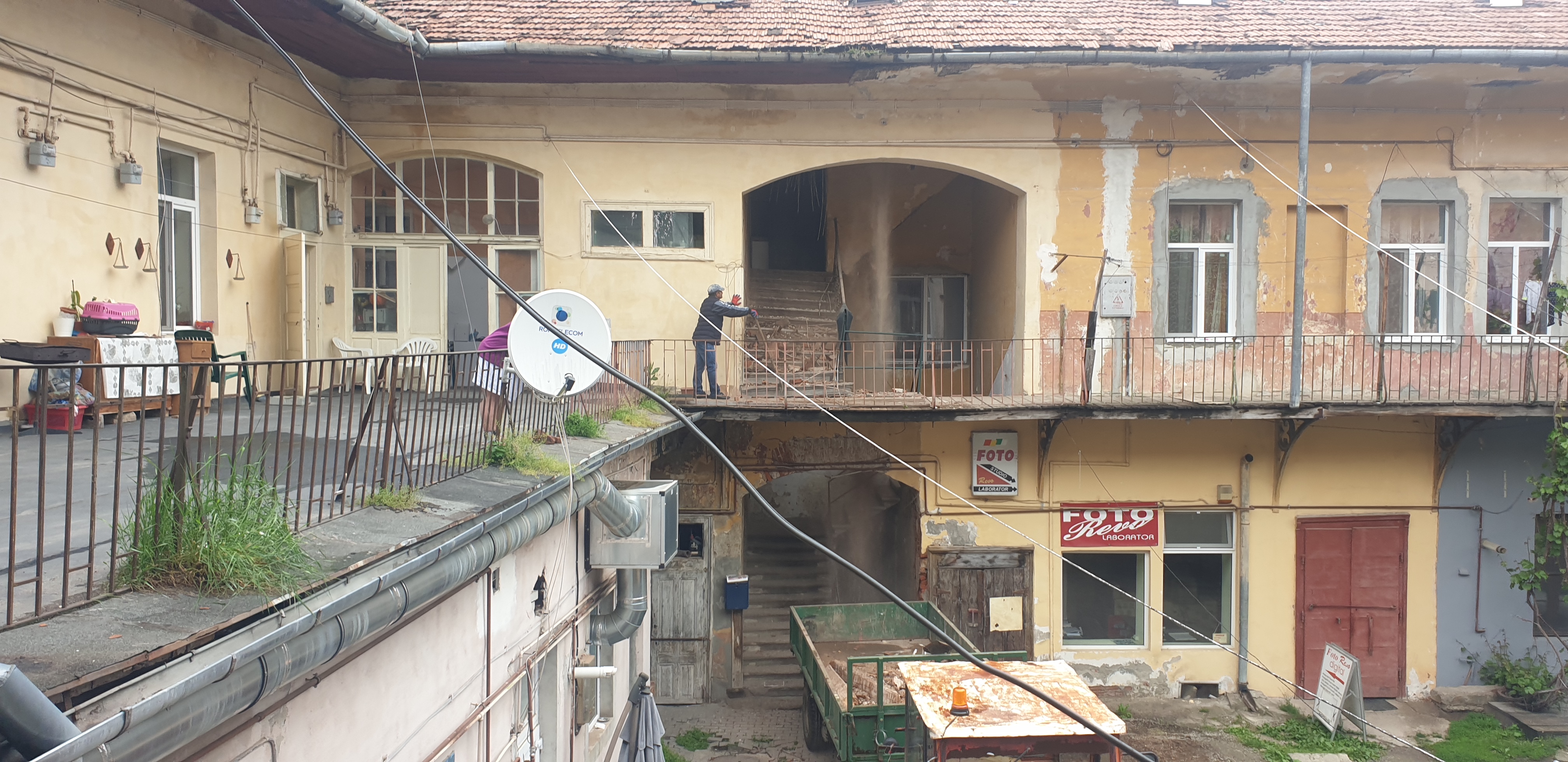 Un adevărat ghetou  este înfăţişat în Piaţa Republicii la numărul 27, la doi paşi de sediul Primăriei Făgăraş. Sunt clădiri vechi, cândva mândria urbei, dar astăzi  un real pericol pentru viaţa  oamenilor. În noaptea de 22/23 mai a.c., pe la ora 1.45, un zgomot puternic i-a trezit pe locatari.  Grinzile  care susţineau acoperişul de la scara imobilului s-au prăbuşit, iar molozul a acoperit scările.  Locatarii au avut mare noroc  că  prăbuşirea tavanului s-a produs la o oră târzie din noapte, iar pe scara ce duce la etaj, nu era niciun locatar. Cel mai norocos a fost însă Ciprian Medrea care locuieşte la acest etaj, iar cu câteva minute înaintea prăbuşirii grinzilor venise acasă.  Dimineaţa, la prima oră, angajaţii Primăriei Făgăraş au fost anunţaţi să ia măsuri.  Cu un tractor cu remorcă şi o mătură, oamenii de la ADP au ridicat molozul şi bârnele. ,,I-am întrebat când se vor face reparaţii capitale la imobil, dar răspunsul a fost tranşant: când vom avea finanţare. Din ce am înţeles  se vor înlocui grinzile la tavan. Vor fi nişte reparaţii sumare la locul afectat, dar şi acestea când vor face rost de lemn, aşa cum a spus reprezentantul Primăriei Făgăraş”au spus locatarii de la etajul afectat de prăbuşirea tavanului. Oricum un astfel de eveniment care putea avea urmări tragice  trebuie să fie cercetat, aşa cum susţin locatarii,  de reprezentanţii instituţiilor abilitate.
