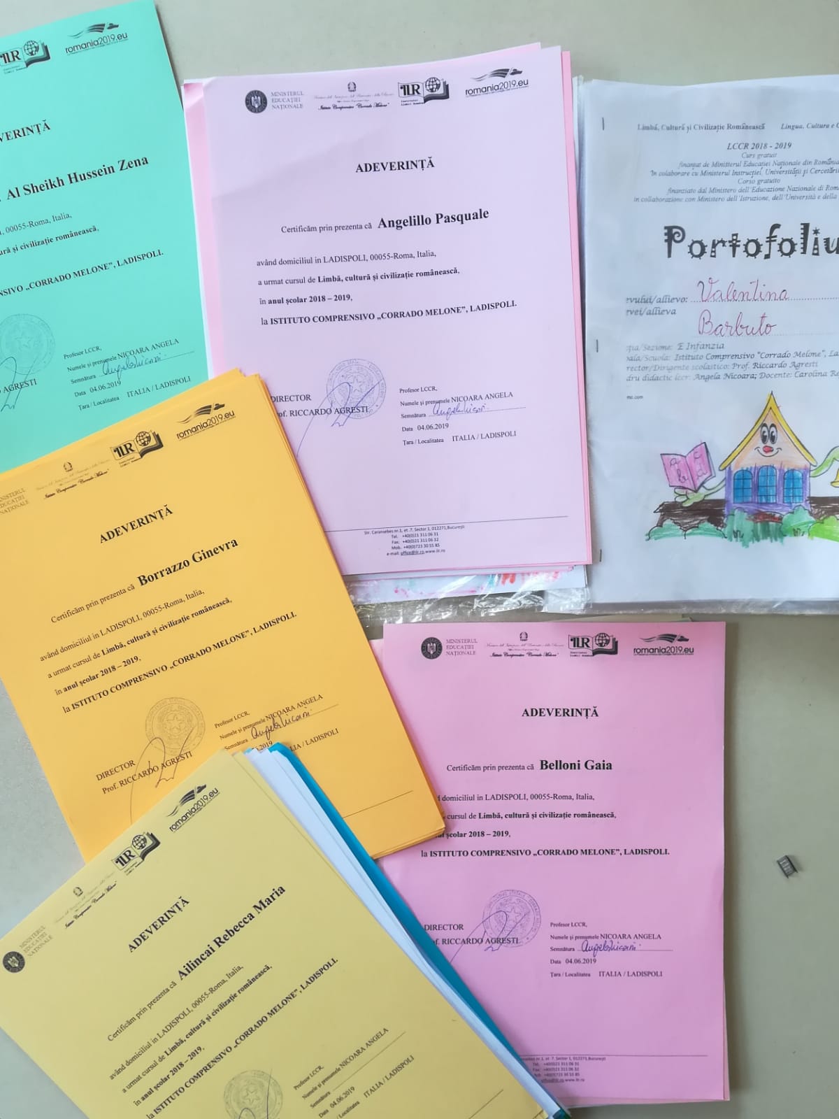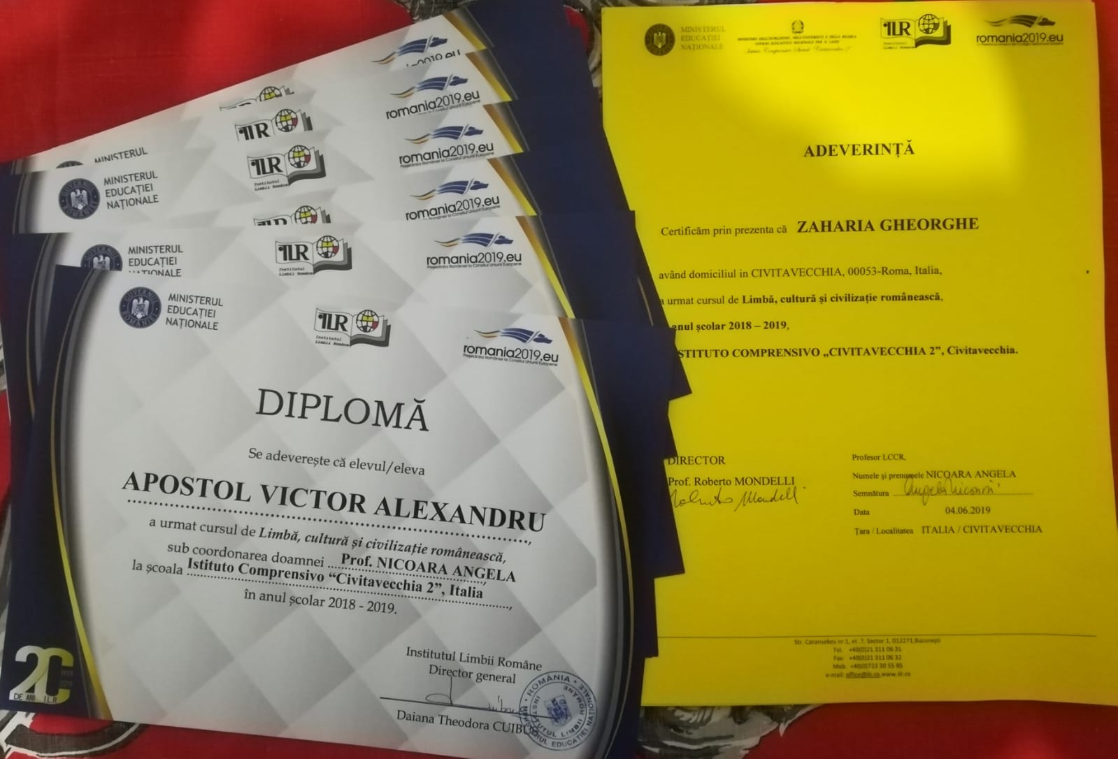 Pentru elevii care au urmat cursul de Limbă Cultură şi Civilizaţie Românească (LCCR) în şcolile din Italia această săptămână este una de sărbătoare. Sălile de curs au devenit scene de spectacol, iar orele, un adevărat ,,remeber” al activităţilor de peste an. Este săptămâna care încheie anul şcolar, când munca elevilor este recompensată cu diplome şi premii oferite de dascălul de la catedră. O serbare în stil românesc a organizat profesoara Angela Nicoară la fiecare clasă din şcolile italiene unde a avut grupe de elevi. Fie pentru prichindeii de grădiniţă, elevii de gimnaziu sau şcoală primară, profesoara Angela Nicoară a rezervat suficient timp în peripoada 1-7 iunie pentru a încununa munca elevilor săi. Toţi au primit diplome de absolvire, realizate de IRL şi de şcoală, iar cei mai merituoşi au purtat tradiţionalele coroniţe, aşa cum se obişnuieşte de generaţii şi în şcolile din România. Serbările de sfârşit de an şcolar au coincis şi cu Ziua Copilului, astfel că sărbătoarea a avut o dublă semnificaţie, spre bucuria elevilor. ,,În anul școlar 2018/2019 am desfășurat activitatea la catedră în trei instituții de învățământ: ,,Corrado Melone”, ,,Ladispoli 1” și ,,Civitavecchia 2”, cu 9 grupe de elevi, un total de 342 de elevi. Acum la sfârşit de an şcolar ne bucurăm împreună şi ne facem planuri de vacanţă” a explicat prof. Angela Nicoară.