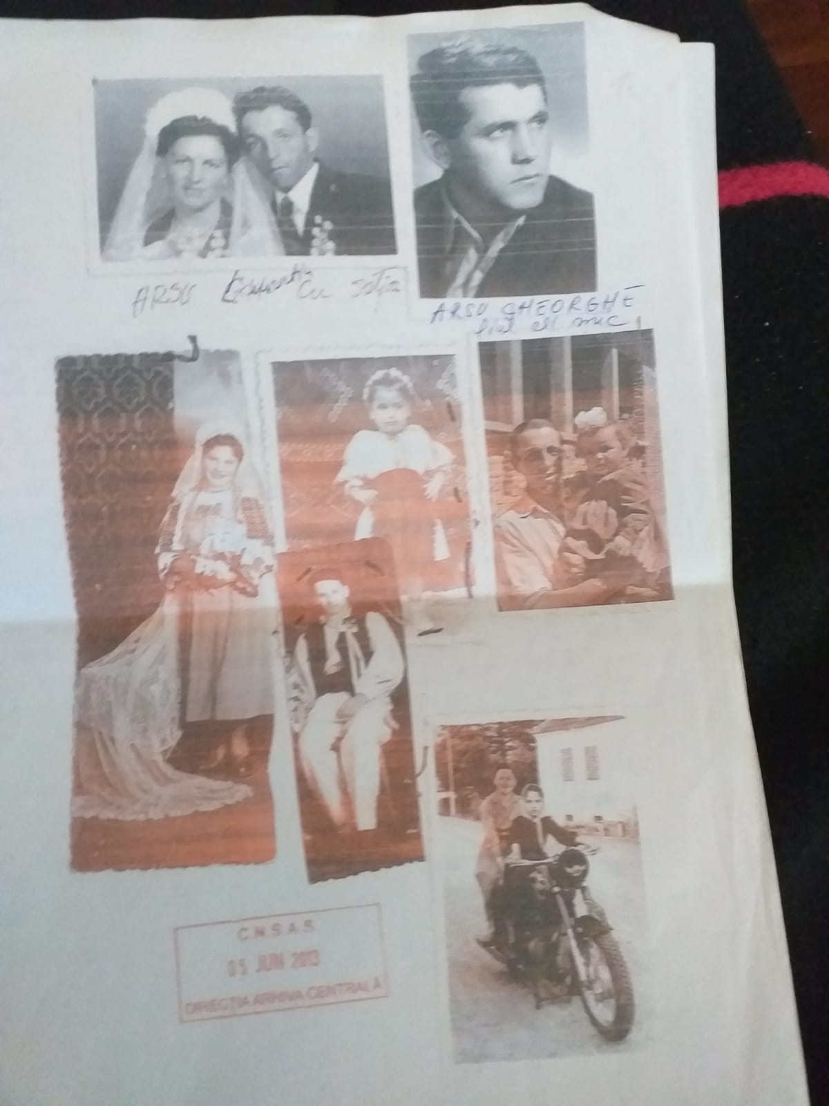 Primeşte puţinele noastre rânduri care să te găsească sănătos. Dragă tătucule, vei şti că noi o ducem bine şi aşteptăm ziua când ne vom vedea. Eu nu am mai putut urma şcoala, am rămas acasă. Lucrez la o uzină metalurgică, lângă Gară, la cazangerie (N.R- probabil că este vorba de UPRUC), lucrăm împreună amândoi, eu şi Ghiţucă (N.R- Gheorghe Arsu, primul fiu al partizanului, tatăl Claudiei Arsu). Eu m-am căsătorit din anul 1960 şi ţin nevastă din sat, de peste drum, a lu Gheorghe al Vichi. Să ştii dragă tătucule că ai două nepoate, una de 1 an şi 8 luni, pe care o cheamă Rodica şi Ileana, şi una Mărioara, care are 6 luni. Poate te vei supăra, dar să ştii că Mama a murit din anul 1961, să-i fie ţărâna uşoară, a fost bătrână săraca. Dragă tătucule, să ştii că Măicuţa este cu noi. Nu te întrista, că nu am avut ce face, eu am plecat militar, amândoi eram mici şi a trebuit să facem într-un fel, dumneaei este la noi din 1954, lucrează şi dânsa pe la colectiv, nu s-a putut face în altu fel. Neamurile celelalte sunt bine toate. Sunt însurat, acasă o ducem bine, şi Ghiţă la fel. Neamurile celelalte sunt bine toţi. Să ştii că mătuşica şi unchiu Ion sunt bine, şi Dana e măritată, ţine un băiat din Bucureşti, e un băiat foarte bun. Tuşa din jos la fel, e sănătoasă împreună cu unchiu Liţă şi cu fetele amândouă, pe cea mică o cheamă Aurelia, e la şcoală, şi Magdalena e măritată, ţine pe Ghiţă Renciu, au şi ei o fetiţă pe care o cheamă Dorina şi are 5 ani. Să ştii tătucule că la moară au murit toţi, nu mai este nimeni acolo. Noi, acasă, am stricat cocinele şi am făcut o căsuţă cu cuptor. Ne-am cumpărat muzică de şapte mii lei, avem aragaz pentru gătit de 2 mii lei, am făcut obloane la geamuri care fac tot 2 mii lei. Avem o bivolă, porci, oi, gospodărie bună. Dora lu mătuşica e tot în Bucureşti, zice că vine acasă în cursu anului acesta. Să ştii că am băgat lumină peste tot, tot în curte avem aparat de radio. Dragă tătucule, noi încheiem puţinele noastre rânduri care să te găsească sănătos şi bine, şi te sărutăm cu toţii, ai dumneatale copii, nepoţi, surori, cumnaţi şi măicuţa. Te sărutăm cu mult dor, Lenţu“.