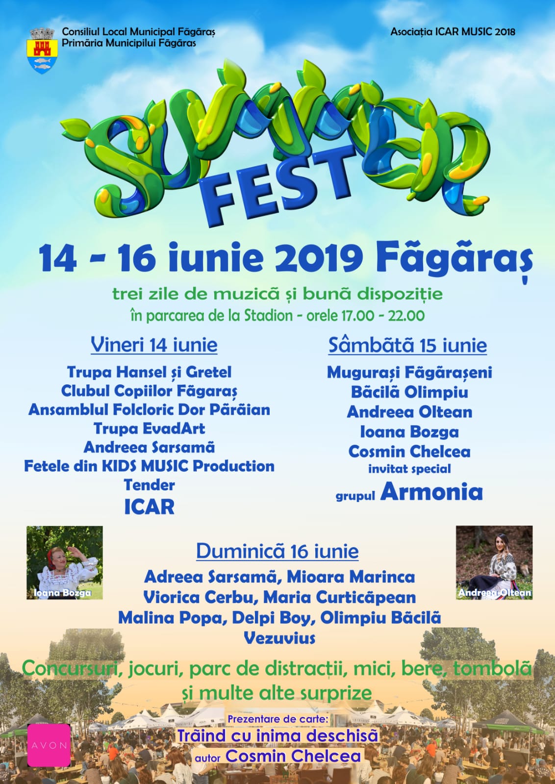 Făgărăşenii sunt invitaţi la Sammer Fest, un festival de muzică şi distracţie care va avea loc timp de trei zile în parcarea stadionului din Făgăraş. În perioada  14-16 iunie, între orele 17.00 şi 22.00 , Sammer Fest  aşteaptă iubitorii de voie bună  la cea de-a doua ediţie. Festivalul este organizat de Asociaţia ICAR Music 2018 în parteneriat cu Primăria şi CL Făgăraş.  ,,Pe scena festivalului vor urca artişti şi formaţii de muzică populară şi uşoară. Se vor organiza concursuri, jocuri, parc de distracţii, tombolă şi multe alte surprize.  În cadrul festivalului va avea loc şi lansarea volumului ,,Trăind cu inima deschisă”  al scriitorului Cosmin Chelcea” a spus Dan Tzache Şerban, reprezentantul ICAR Music.
