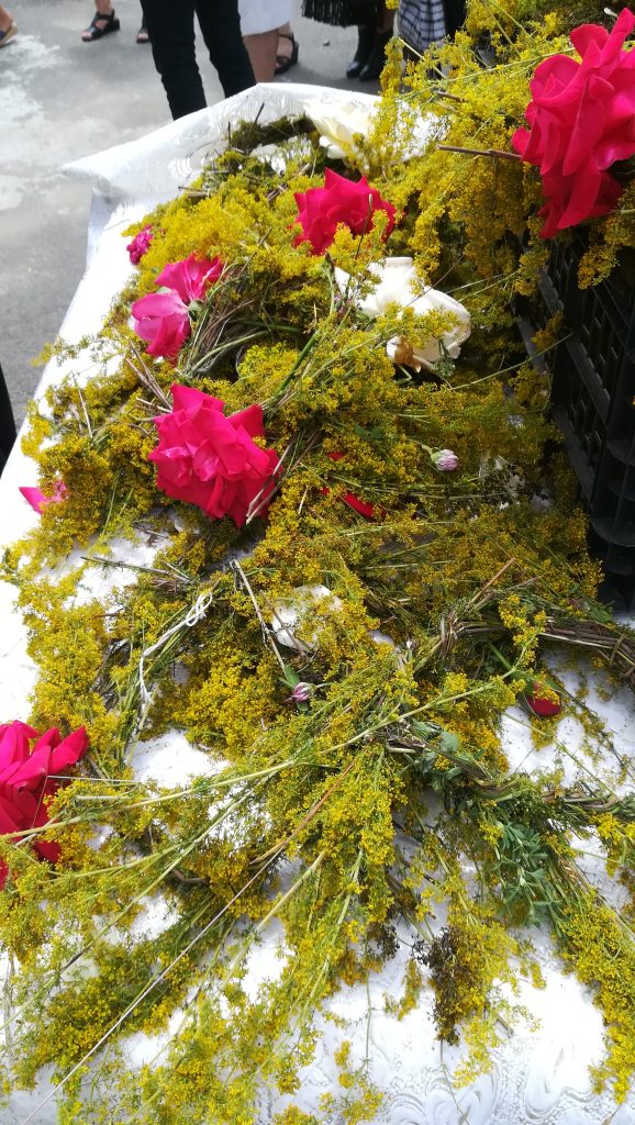 Încă din ziua precedentă, copiii satului însoţiţi de preotul paroh Cătălin Socaciu şi alţi localnici au cules sânzâiene de pe dealurile din jurul satului, din care au confecţionat borte. Acestea au fost aduse la biserică pentru ca în ziua hramului să fie aruncate peste casă. Aşa cum susţine Aurelia Clonţ de 87 de ani, în sat există tradiţia prin care aruncatul bortelor de sânzâiene aduce previziuni pentru familie. ,,Dacă borta cădea de pe casă, în acea familie, una dintre persoane pleca la cele veşnice în acel an” a spus Aurelia Clonţ. Cel mai aşteptat moment al sărbătorii a fost aruncatul bortelor din sânzâiene. În curtea bisericii, chiar la intrare, au fost puse sânzâienele ce urmau a fi aruncate pe acoperişul casei. Fostul paroh Ioan Paloş, care a păstorit parohia Boholţ timp de 7 ani, a prezentat în faţa credincioşilor simbolurile sărbătorii şi vechile tradiţii de Sânzâiene. Rând pe rând, localnicii au aruncat bertele din florile de câmp. Primii invitaţi au fost mai marii satului. Primarul comunei Beclean Claudiu Motrescu a aruncat prima bertă: ,,Prima coroniţă să fie pentru toţi boholţenii şi pentru toţi cetăţenii din Ţara Făgăraşului” a spus primarul. Epitropul Vasile Clonţ a aruncat o coroniţă pentru episcopul Ilarion Făgărăşeanul. Ing. Vasile Joantă a aruncat pentru toţi oaspeţii satului Boholţ. ,,Să nu uităm că satul şi ţăranul, cum spunea Rebreanu, ţăranul este începutul şi sfârşitul, începutul îl ştim, să dea Dumnezeru să nu aibă sfârşit”. Anca Trâmbiţaş, viceprimarul comunei Beclean, a aruncat coroniţa pentru toţi cei prezenţi la acest praznic. O fiică a satului stabilită în Canada, care a încântat enoriaşii prezenţi la hram prin vocea ei cântând pricesne, a aruncat la rându-i coroniţa de sânzâiene. ,,Voi duce acest obicei al satului mamei mele în Canada. Voi spune episcopului să prea acest obicei străvechi” a spus ea. Au urmat şi alţi localnici, care au dedicat aruncarea sânzâienelor, satului, fiilor acestuia şi bunăstării. După fiecarea runcare a coroniţei pe acoperiş, sătenii au aplaudat.