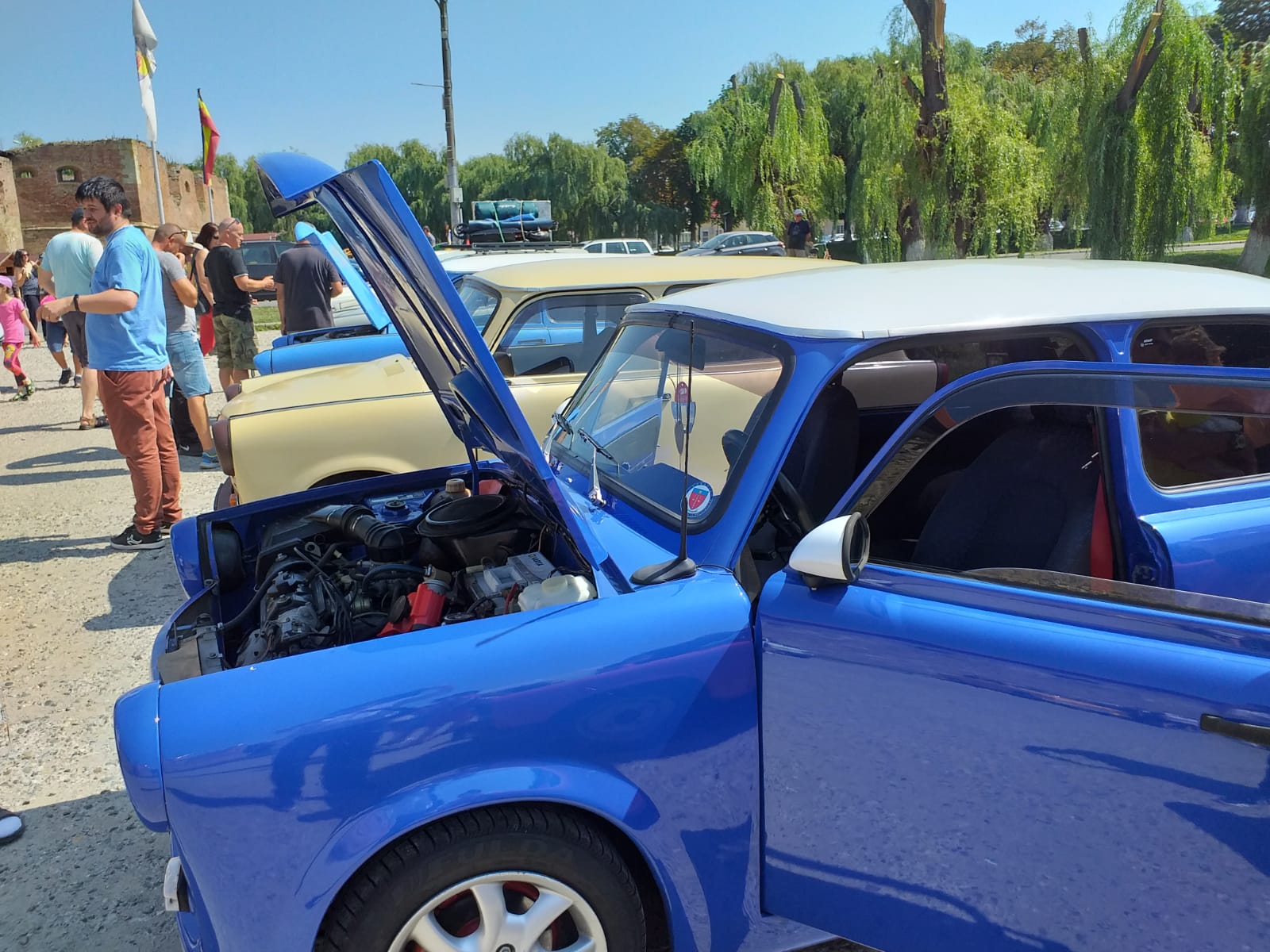 - ,,Am fost și anul trecut la acest festival, unde m-am simțit foarte bine. Am venit anul acesta cu un trabant model 1.1., cu un motor de 1043 cm cubi, capota din tablă, iar materialul din duro-plast. Mașina nu este de paradă, ci e mașina mea de toate zilele. Este ultimul tip fabricat în anul 1991. Parcurg 10.000 de km pe an, fac naveta din Reșița la socri, merg la întâlniri, cumpărături. Dacă era mașină de paradă nu ar fi arătat atât de bine“ a spus Muscai Cristian din Reșița, inginer de profesie.