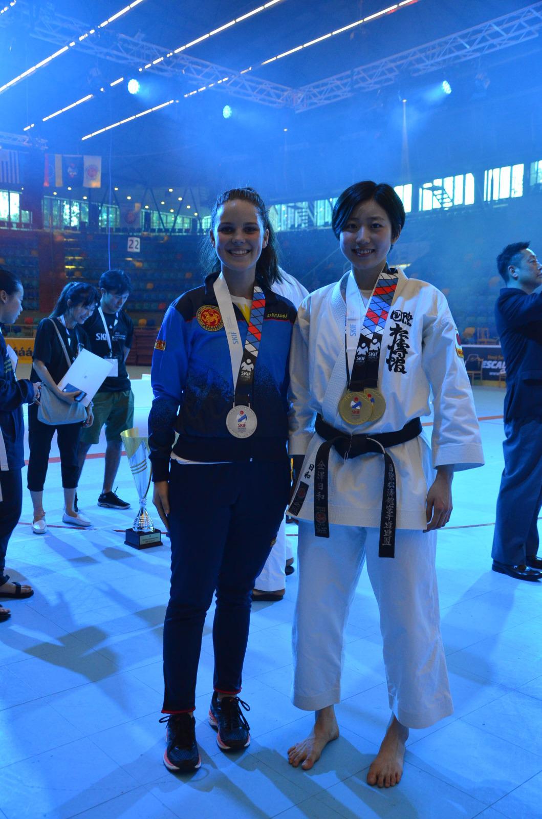 ,,Am avut emoţii mari ca la orice competiţie cu toate că am experienţă şi sunt bine antrenată. În ultima perioadă am profitat de faptul că sunt în vacanţă şi am făcut 2 şi 3 antrenamente pe zi. M-am pregătit bine, iar rezultatele au fost pe măsură. Când am urcat pe podium nu îmi venea să cred ce performanţă am realizat. A fost ca într-un vis, îmi venea să plâng de fericire, lacrimile îmi jucau în ochi. La o astfel de competiţie nivelul de pregătire trebuie să fie la superlativ. A fost greu, dar am reuşit să obţinem titlul de vicecampioni mondiali. Alături de noi, pe podium, au fost sportivi din Ucraina şi Kazahstan. Și de această dată spiritul de echipă şi-a spus cuvântul, ne-am încurajat unii pe alţii şi pot să spun că galeria şi-a făcut treaba. O altă performanţă pe care am reușit-o în acest an a fost centura neagră. De zece ani sunt legitimată la secţia de karate din Victoria şi am obţinut peste 100 de medalii, însă cel mai bun rezultat l-am obţinut la Campionatul Mondial din Cehia’’ a spus Andra Funariu de 17 ani.
