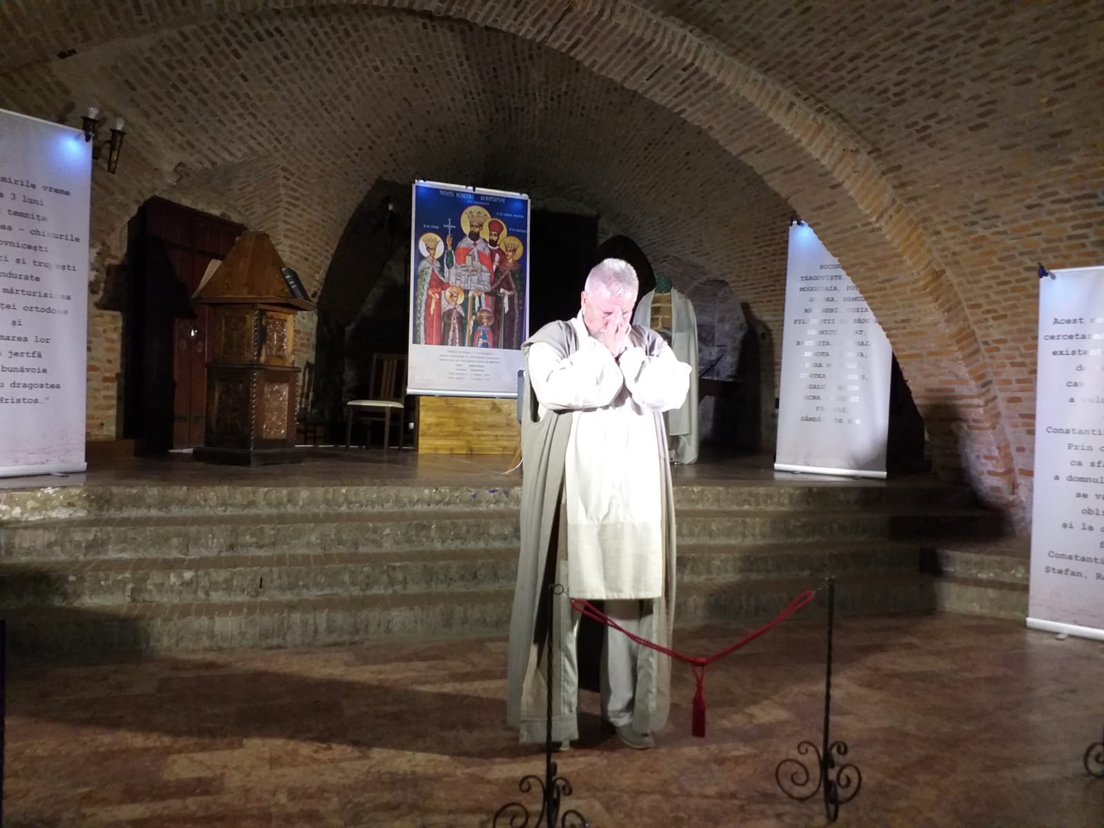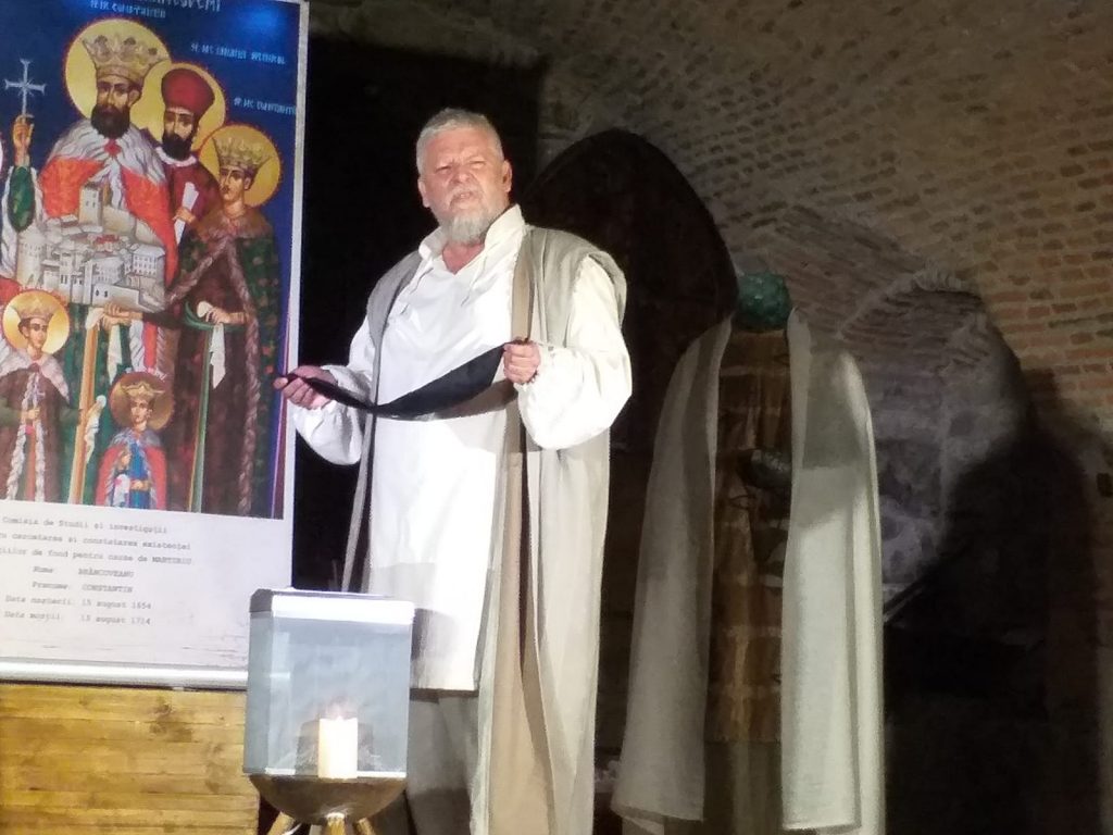 Crama Cetății Făgărașului a găzduit spectacolul cu numele sugestiv ,,Dosarul Brâncoveanu“ joi, 1 august a.c., începând cu ora 19.00. Subiectul piesei regizorului Mihai Lungeanu nu putea să aibă alt ambient decât castelul medieval de la Făgăraş. ,,Nu știu unde să încadrez spectacolul, documente, monogramă, mărturisire, privire asupra trecutului pentru a citi prezentul, în zona lucrurilor care ne dor, nu este o poveste, este un dosar. Avem un subiect foarte delicat, nu este o construcție în afara realității. Brâncoveanu este un strămoș al nostru, a făcut lucrurile despre care se vorbește. Partea dificilă este că aceste fapte nu mai sunt repere. El a lăsat o epocă de înflorire spirituală, arhitecturală. Aceste lucruri s-au păstrat, dar tineretul nu mai învață la șoală. Această piesă este autentică pentru poporul român: Să-ți vezi copiii cum mor în fața ta! Să simți Duhul Sfânt că e cu tine! Brâncoveanu a fost șantajat, obligat să-și lase credința. Oare câți dintre noi ar face acest lucru? Lumea de astăzi vrea să aibă, să posede, să stăpânească. Foarte puțini au această atitudine minunată de a dărui, de a oferi și de a împărtăși încrederea, credința, revelația. Sunt fenomene cărora nu le mai dăm valoare. Ne aflăm în epoca lui ,,a avea“, nu ,,a crede“ a spus regizorul Mihai Lungeanu. Textul piesei este un reper pentru generațiile de astăzi şi pentru cele care vor veni după noi. Mesajul piesei ,,Dosarul Brâncoveanu“ în regia lui Mihai Lungeanu este: dragostea de țară, trăirea spirituală, reperele unei nații care vrea să se regăsească. Este o piesă scrisă pentru făgărășeni, pentru istoria Țării Făgărașului. ,,Făgărășenii își uită prea des reperele“ a mai spus regizorul Mihai Lungeanu. Rolul lui Brâncoveanu a fost interpretat de actorul făgărășean Mihai Giurițan. ,,Am chemat acum, la acest spectacol, prietenii buni, apropiaţii. Va mai fi organizat în 15 și 16 august, data în care vor fi pomeniți martirii în calendarul nostru“ a spus Mihai Giurițan. (Ștefan BOTORAN)