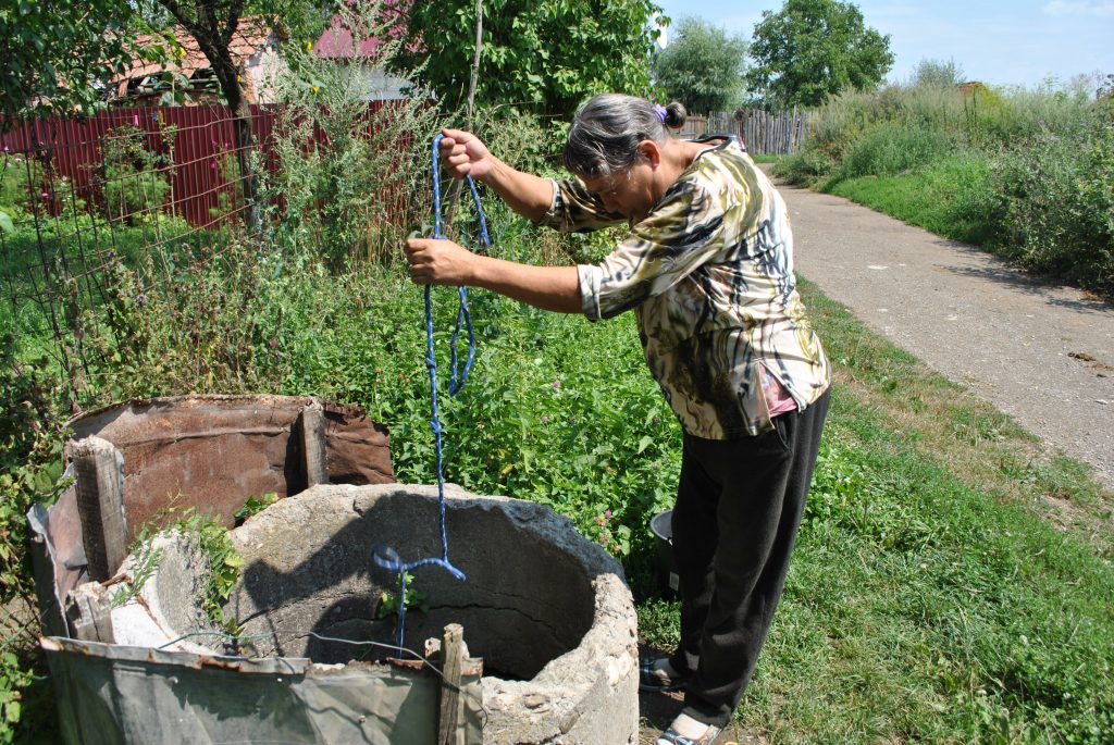 - ,,E dezastru, de aici cred că m-am îmbolnăvit, de la apa asta. N-a făcut nimeni analiza acestei ape, noi nu am dus-o la analize, nici nu ştiu unde se face. Au rupt şi burlanul, nu mai e acoperită de câţiva ani. Unii dintre oamenii de aici şi-au săpat fântâni, şi-au pus pompe, dar mai suntem familii care folosim apă de la această fântână. Sunt mizerii, pampersi, resturi de tot felul. Sunt atâţia copii care stau aici şi beau apă din fântâna asta. A fost săpată fântâna asta de peste 50 de ani, când eram eu mică, părnţii mei au făcut-o. Pentru copii mai fierb apa sau le fac ceai, dar de obicei o bem aşa cum este, facem mâncare, spălăm. Eu stau în casa asta de 35 de ani, cu chirie de la primărie şi plătesc 20 de lei/lună. Acum trebuie să vină de la primărie să ne prelungească chiria, dar nu au venit. Casa e putredă toată, nimeni n-a reparat-o. Anul trecut ne-au dat nişte ţigle cei de la primărie în rest nimic. Acum câţiva ani s-a prăbuşit tavanul pe noi, dar ne-au spus să reparăm singuri. Gunoiul nu ni-l ridică decât foarte rar. Am strâns gunoaiele din jurul containerului, dar este plin. Acum plătim 640 lei/an gunoiul, iar ajutorul social este doar de 130 lei/lună. Am văzut că tot vin de la primărie să măsoare pentru canalizare, dar noi nu avem apă. Iarna când le îngheaţă pompele vecilor, toţi vin şi iau apă de la fântâna asta. Mi-am propus să o curăţ singură, cobor o scară, mă leg cumva şi încerc să scot toate mizeriile de acolo, apoi bag var să o dezinfectez. A lucrat la IGOV, pe la croitorie, dar am vechime puţină pentru că am avut 7 copii şi a trebuit să-i cresc. Când plouă este noroi peste tot, nu poţi merge pe stradă. WC-ul îl avem în curte, oveină şil-afăcut în stradă. Curentul eu l-am băgat pe cheltuiala mea. 18 ani am stat la lumânare, dar am plecat în Sicilia, la capătul pământului, mi-am făcut bani şi am băgat lumina. Cred că altfel nici astăzi nu aveam curent” a spus Onea Mariana, 60 de ani. chiriaşă a Primăriei Făgăraş, dar la nr. 35.
