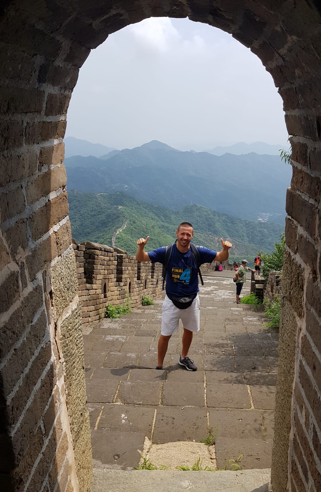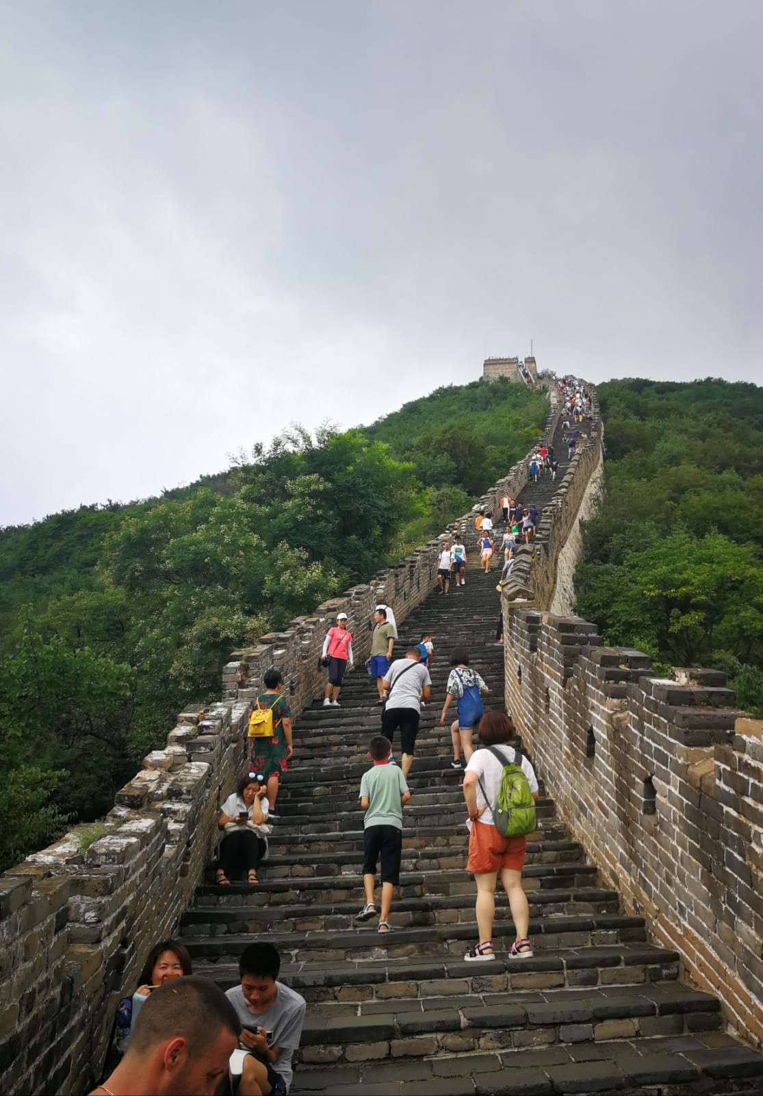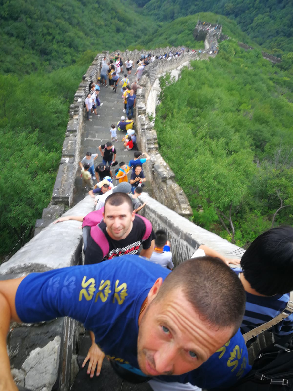 ,,Bineînţeles că nu puteam să ratez vizitarea acestui loc încărcat de istorie. Am fost acolo a doua zi, distanţa de la Beijing la Marele Zid este de o oră şi jumătate de mers cu autocarul. Excursia a durat întreaga zi şi a constituit o experienţă unică, atât pentru mine cât şi pentru colegii mei. Am plecat din faţa hotelului la ora 6.30 dimineaţa şi ne-am întors la ora 19.00. Am fost luaţi de un autocar din faţa hotelului până ce am ajuns la un punct, de aici ne-au preluat alte autocare şi ne-am dus 4-5 km pe un drum de munte destul de abrupt. De unde se sfârşea drumul am luat telecabina şi, timp de patru ore, ne-am plimbat pe Marele Zid, unde am admirat, atât construcţia veche de peste 2000 de ani, cât şi peisajul mirific, pentru că Marele Zid este construit exact pe creasta munţilor. În fiecare an, mii de turişti aleg acest obiectiv, care este cel mai vizitat centru istoric şi turistic din întreaga lume“ a împărtăşit Bogdan impactul cu una dintre cele mai importante vestigii istorice de pe mapamond. Marele Zid este una dintre cele mai impresionante fortificaţii din lume şi a fost construită ca protecţie împotriva triburilor nomade din Mongolia şi Manciuria. La începutul sec. III î.Hr., primul împărat al dinastiei Qin, Shi Huangdi, a poruncit ca zidurile de apărare, deja ridicate de unele state de la graniţă, să fie unite şi lungite, folosindu-se munca unor mari contingente militare dar şi a civililor, atât bărbaţi cât şi femei. Zidul se întinde pe o distanţă de 2250 de km, construcţia începe de la golful Liaodong şi se întinde până în sudul Mongoliei. Zidul străbate zone de stepă şi deşert. Construcţia a fost dotată cu 25.000 de foişoare, fiind extinsă de împăraţii Han în sec. I î.Hr. până la Yumen sau ,,Poarta de jad“ din provincia Gansu, pentru a contribui la expansiunea Chinei în Asia Centrală. Zidul este înalt de 8 metri şi gros de 14 metri, şi este construit din pământ, îmbrăcat în piatră pe secţiunile estice.