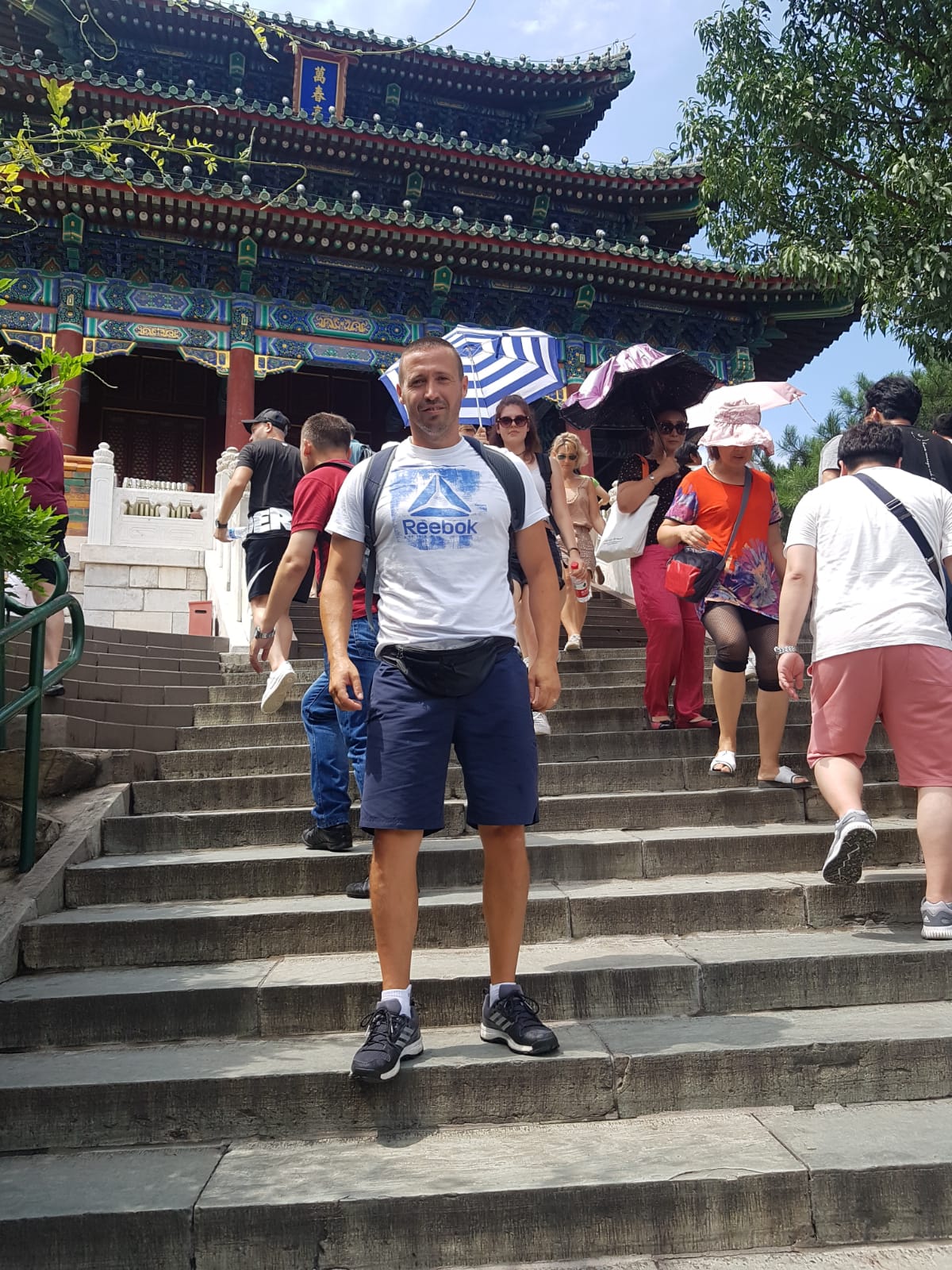 China este o ţară aparte, cu o cultură şi tradiţie milenară, iar pentru cel care o vizitează rămâne o experienţă unică, de neuitat. ,,Timp de trei zile, între 6-9 august, înainte de turneu, am avut posibilitatea să vizităm cele mai importante obiective din Beijing: Piaţa Tienanmen, Oraşul interzis Beihai Park şi stadionul naţional din Beijing, numit sugestiv ,,Cuib de pasăre“. Beijingul este un loc minunat, care oferă ochiului vizitatorului un panoramic care nu se poate descrie în cuvinte. În prima zi am vrut să achiziţionăm bilete pentru Oraşul Interzis, însă toate erau deja vândute. Am mai găsit doar pentru data de 18 august, după terminarea turneului de la Qingdao. Timp de cinci ore, am admirat un imens domeniu ce se întinde pe mai multe hectare, fosta reşedinţă a dinastiei Ming. Construcţiile, care datează de sute de ani, sunt impresionante. Este un loc încărcat de istorie, cultură şi tradiţii, înconjurat de mister“ a spus arbitrul făgărăşean. Piaţa Tienanmen este cunoscută mai ales pentru protestele de amploare din anul 1989 pus la cale de studenţi şi intelectuali, eveniment ce a culminat cu un adevărat masacru care a făcut înconjurul mapamondului prin intermediul canalelor de ştiri. Oraşul interzis este unic în lume prin splendoarea sa. Aici a fost domeniul privat al împăraţilor Chinei în cadrul oraşului Peking, cum se numea înainte Beijingul. A primit numele de ,,Oraşul interzis“ pentru că nicio persoană străină nu putea intra aici fără permisiune. Oraşul găzduia Palatul Imperial, care avea 9999 de încăperi şi era înconjurat de un zid înalt. Acest mare centru a constituit domeniul împăraţilor chinezi între 1421-1911. După ce comuniştii au venit la putere, palatul a fost transformat în muzeu. Parcul Beihai este o grădină imperială, situată în apropierea oraşului interzis, a fost construit în secolul X şi este una dintre cele mai mari grădini publice din China. În anul 1921 a fost deschis publicului larg, chiar dacă unele zone din Beihai erau închise sau restricţionate încă. Un lac splendid ocupă mai mult de jumătate din parc, care este străjuit de numeroase temple. Parcul are peste 69 de hectare iar în mijloc se află Bai Ta sau ,,Pagoda albă“, monument magistral, înalt de 40 de metri. Turnul este construit din marmură albă, soarele şi luna sunt gravate pe suprafaţa sa. În pagodă se află sculpturi budiste şi relicve ale călugărilor.