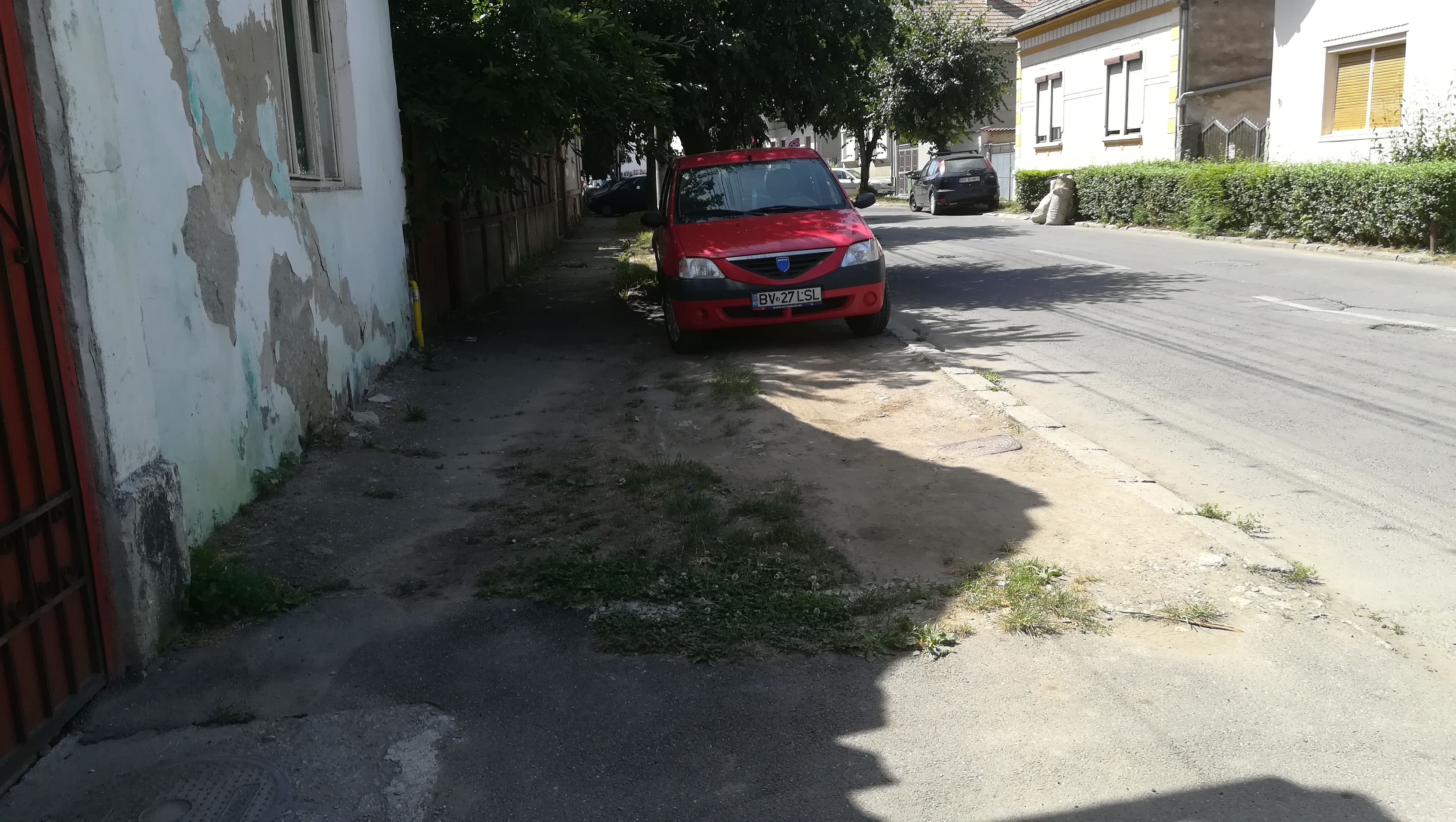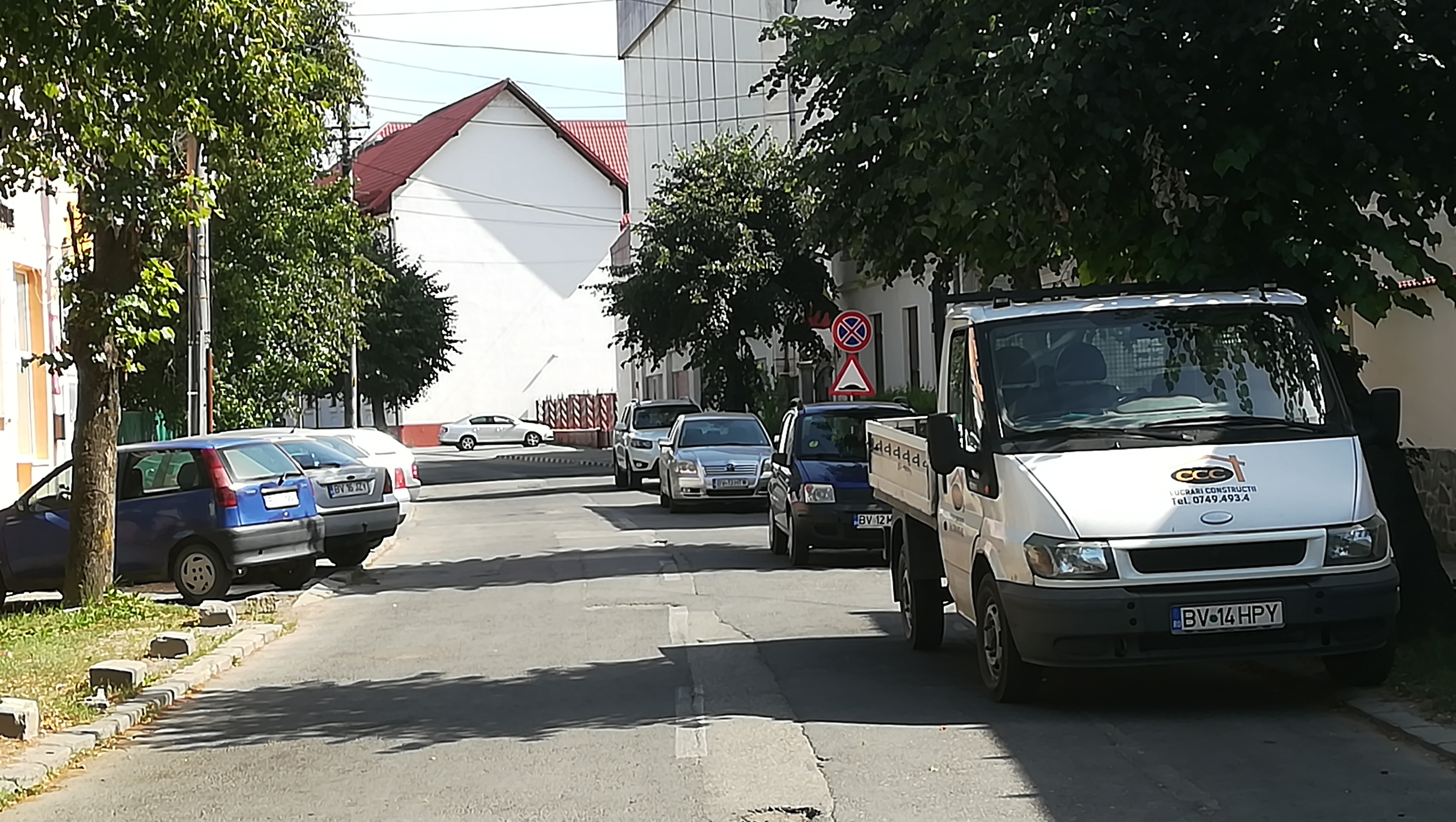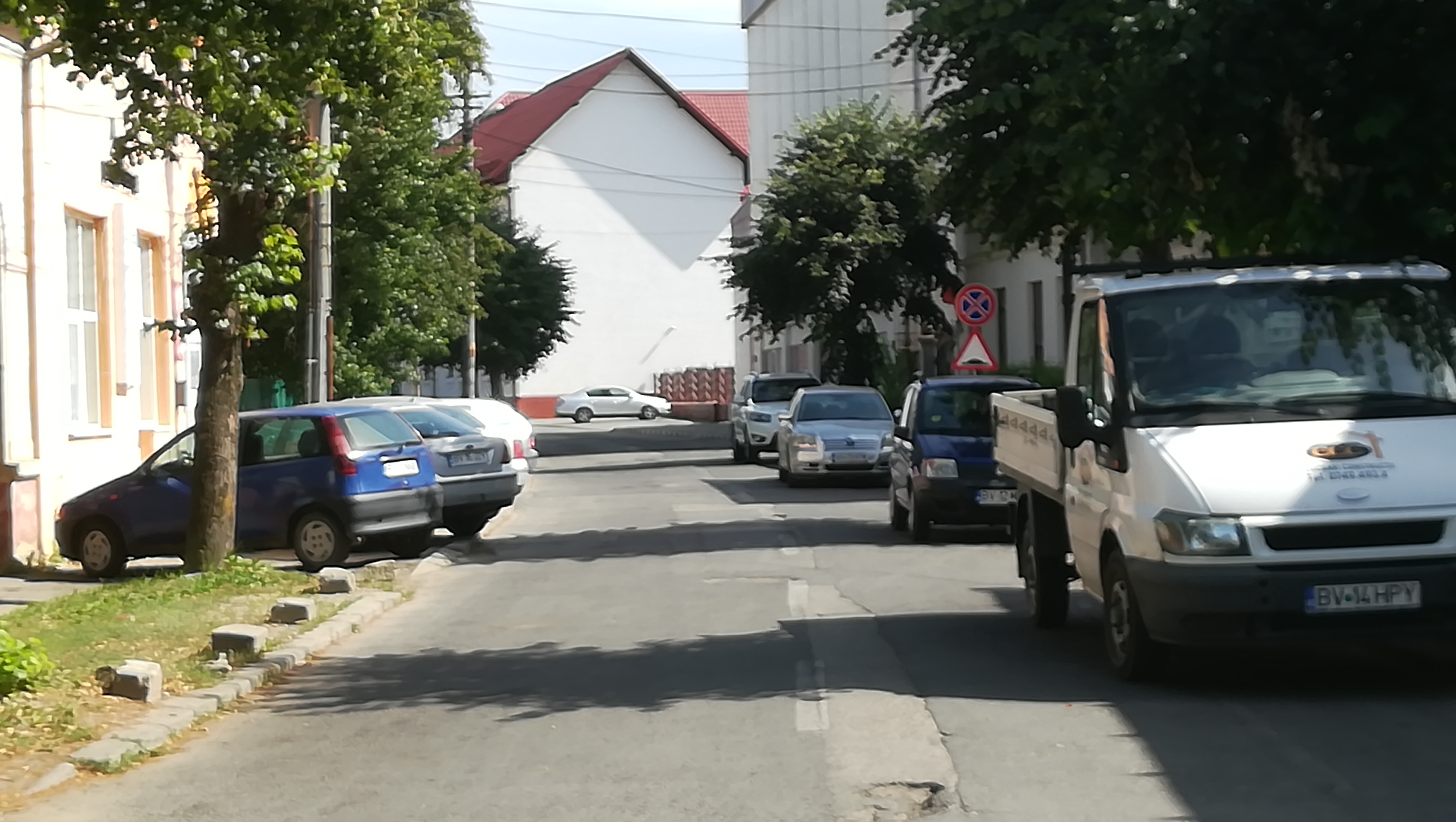Dacă intri pe strada Inului dinspre strada D-na Stanca, îţi place ceea ce vezi. Un carosabil reabilitat şi marcat, la fel şi trotuarele au fost reabilitate cu pavele. Dar după nici o sută de metri, după ce treci de sediul Parchetului şi de clădirea colegiului ,,D-na Stanca”, atât carosabilul cât şi trotuarele sunt un coşmar pentru pietoni şi şoferi. Degeaba sunt montate indicatoarele ,,Denivelări”, ,,Oprirea interzisă” şi limitatoare de viteză pentru că totul este dominat de haos. Maşinile sunt parcate la întâmplare, trotuarele sunt formate din pământ şi bălării, iar carosabilul este plin de gropi. Pietonii sunt nevoiţi să folosească şoseaua pentru că aşa zisele trotuare sunt ocupate de maşini şi de bălării necosite. Iar dacă plouă, trotuarele sunt pline de noroi. Aleşii locali sunt invitaţi de locatari să poposească măcar 10 minute după ora 16.00 pe strada Inului pentru a trăi coşmarul pe care ei îl resimt zilnic. Nicio o autoritate locală, nici reprezentanţii primăriei, ai poliţiei municipale sau locale nu par interesaţi de strada Inului pentru că de ani de zile strada n-a văzut nici urmă de asfalt, de pavele şi borduri şi n-a avut parte de prezenţa vreunui poliţist care să sancţioneze şoferii indisciplinaţi.