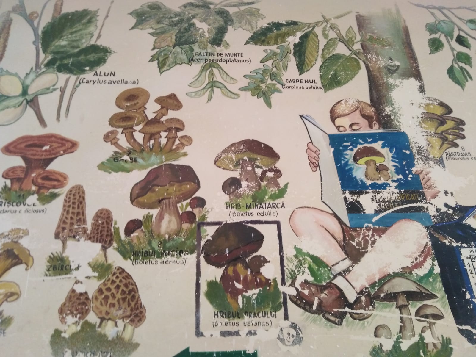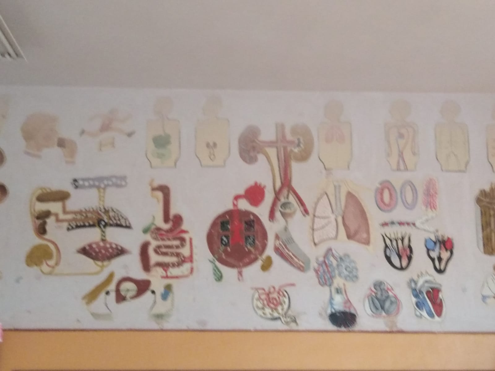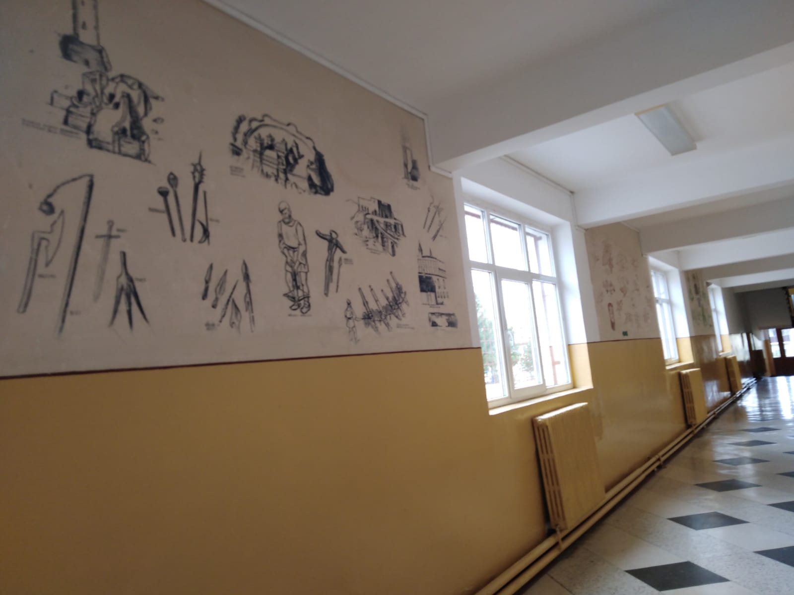 Picturile au fost realizate în perioada 1960 – 1970. ,,Directorul şcolii, la acea vreme, era profesorul Nicolae Diminescu. A revoluţionat şcoala, în sensul că a transformat sălile de clasă în cabinete. S-au realizat astfel cabinetele de istorie, biologire, muzică şi literatură, care au fost dotate cu materiale didactice de specialitate. De asemenea, pereţii cabinetelor şcolare au fost pictaţi în ton cu materia şcolară. Picturile de pe holurile din corpul vechi de clădire au rezistat mai mult comparativ cu cele din clase. În prezent, doar în două săli de clasă se mai văd acele picturi. S-au păstrat picturile din cabinetul de anatomie, se văd şi acum picturile după care învăţau elevii: plămânii, rinichii, aparatul digestiv şi un craniu” a mai spus Adriana Ciornei.