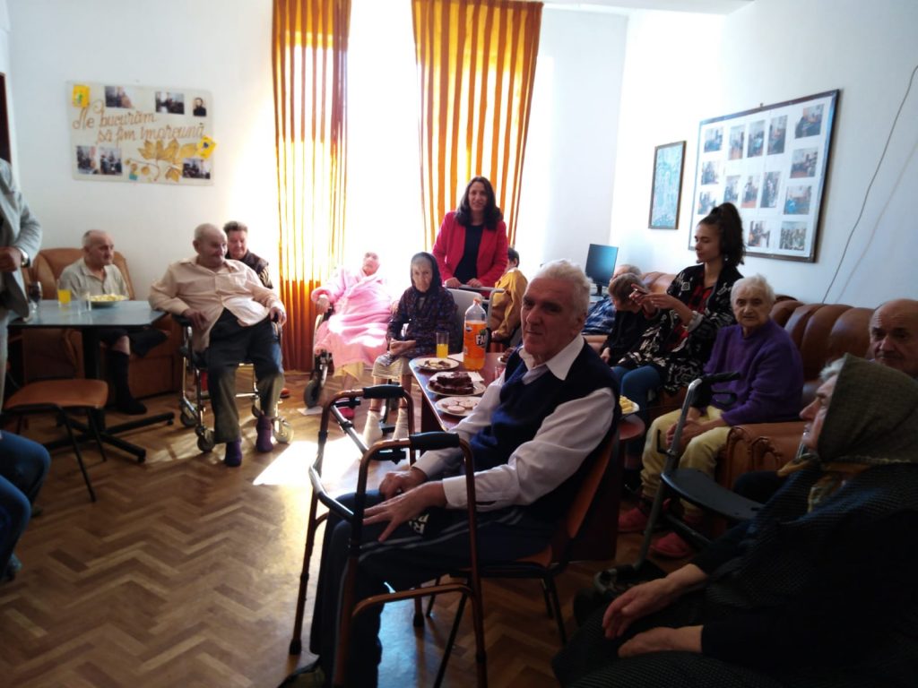 Bunicii internaţi la căminul pentru persoane vârstnice ,,Castanul” din oraşul Victoria au sărbătorit ,,Ziua internaţională a persoanelor vârstnice”. Evenimentul s-a desfăşurat, marţi, 1 octombrie 2019, începând cu ora 12.00, în camera de zi a instituţiei, unde beneficiarii căminului au cântat, au recitat şi au socializat alături de angajaţii centrului. Profesoara Aurelia Bogdan a recitat poezii de Mihai Eminescu, iar alţi beneficiari au cântat doine. ,,Ziua internaţională a persoanelor vârstnice” este marcată în fiecare an în data de 1 octombrie. Cu această ocazie încurajăm beneficiarii să participe la activităţi culturale. De ziua bunicilor le-am pregătit un tort şi le-am urat ,,La mulţi ani!”. Fiind o zi importantă, am organizat şi o masă festivă, iar bucătăresele au pregătit şi plăcintă cu mere” a spus Sorin Geczi, directorul de la căminul ,,Castanul”. În ,,casa bunicilor” au ajuns şi elevii de la Clubul copiilor din Victoria care au susţinut un program artistic în faţa bătrânilor de aici şi le-au oferit fructe şi dulciuri.