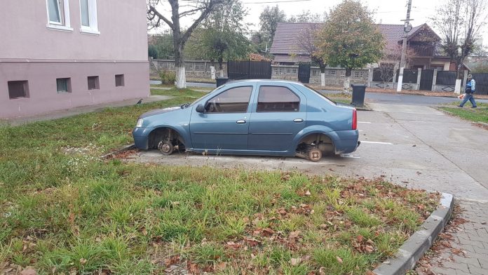 Maşini lăsate fără roţi la Victoria. Hoţii au atacat doar roţile cu cauciucuri de iarnă şi jenţi din aluminiu