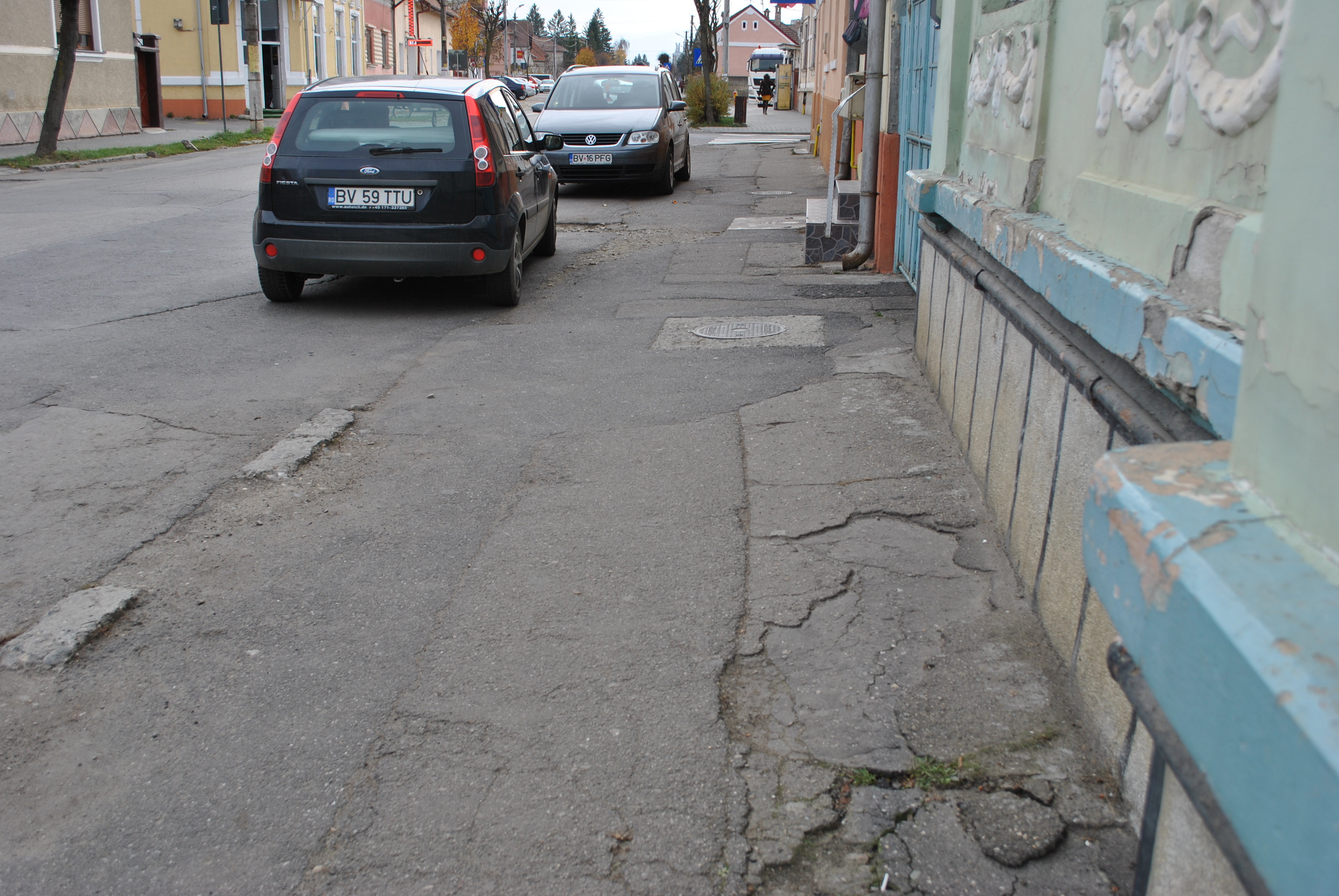Pe strada Negoiu  trotuarele au fost reabilitate sporadic, iar carosabilul este sub orice critică.  În dreptul imobilelor de la nr. 123, 125 şi 127 nu s-a reabilitat trotuarul, dar s-a decopertat cel vechi lăsând la vedere un terasament acoperit doar cu pământ. ,,Pe strada Negoiu unde locuim noi s-au amenajat trotuarele în primăvara lui 2016. Atunci i-am rugat pe constructori să nu decoperteze asfaltul ce era pe trotuarul din faţa caselor noastre până nu vor pun pavelele. Nu m-au ţinut de vorbă şi au decopertat asfaltul de pe trotuar. Vecinul Radu  Stânea i-a blocat şi în faţa casei lui nu au decopertat.  De atunci a fost lăsat totul de izbelişte. Când plouă sau se topeşte zăpada, toată apa şi mizeria ne intră în curte. Am pus noi nişte pietriş pentru a opri apa, dar degeaba. Este un dezastru când plouă. Au trecut de atunci 3 ani şi trotuarul nu este refăcut. Am solicitat primarului în repetate rânduri, şi verbal, dar şi scris, să rezolve problema. Ultima solicitare scrisă, una agresivă,  a fost în această vară. Am primit un răspuns care însă nu mă mulţumeşte. Mi-a zis că se va rezolva atunci când toată strada va fi reabilitată. Nu mi-a dat un termen când se va face. Din câte am aflat este un proces pe rol pentru strada noastră pentru că firma ar fi făcut trotuarele mai late, iar materialele nu au ajuns pentru toată strada. Este o bătaie de joc la adresa noastră. În această situaţie sunt şi venicii de la numerele 125 şi 127, dar şi alţii, vis a vis de noi” a spus  Ana Zamfir de la  nr. 123 Negoiu.