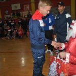 Copiii au colindat frumoasa colindă ,,Dom, dom, să-nălţăm” adresând-o părinţilor care au umplut tribuna sălii de sport, antrenorilor, patronului şi angajaţilor clubului, dar mai ales lui Moş Crăciun. Fiecare antrenor al celor peste 120 de copii care activează la clubul NNN şi-a invitat sportivul în faţa Moşului, care le-a dăruit pachete cu dulciuri. Cu o disciplină desăvârşită, copiii şi-au salutat antrenorul şi au primit apoi darurile. Părinţii prezenţi în sală au imortalizat serbarea, video şi foto.