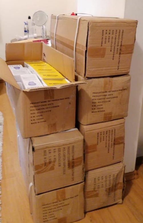 Astăzi polițiștii și jandarmii bucureșteni au descins la acești indivizi unde au găsit peste 10.000 de perechi de mănuși, 9000 de măști, 600 de litri de dezinfectant pentru suprafețe și mâini și 240 de ochelari de protecție. Produsele confiscate vor fi distribuite sistemului medical, acolo unde este atât de mare nevoie de astfel de materiale.