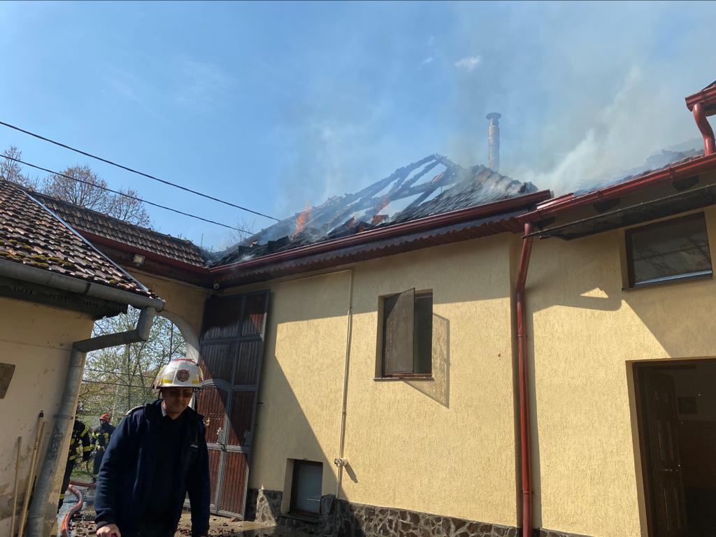 Foto. Incendiu la Mândra. Casa unei familii venită din Italia cuprinsă de flăcări