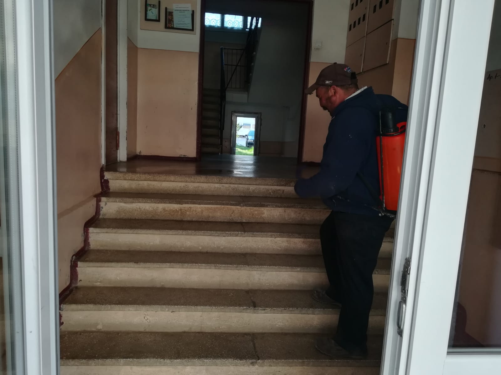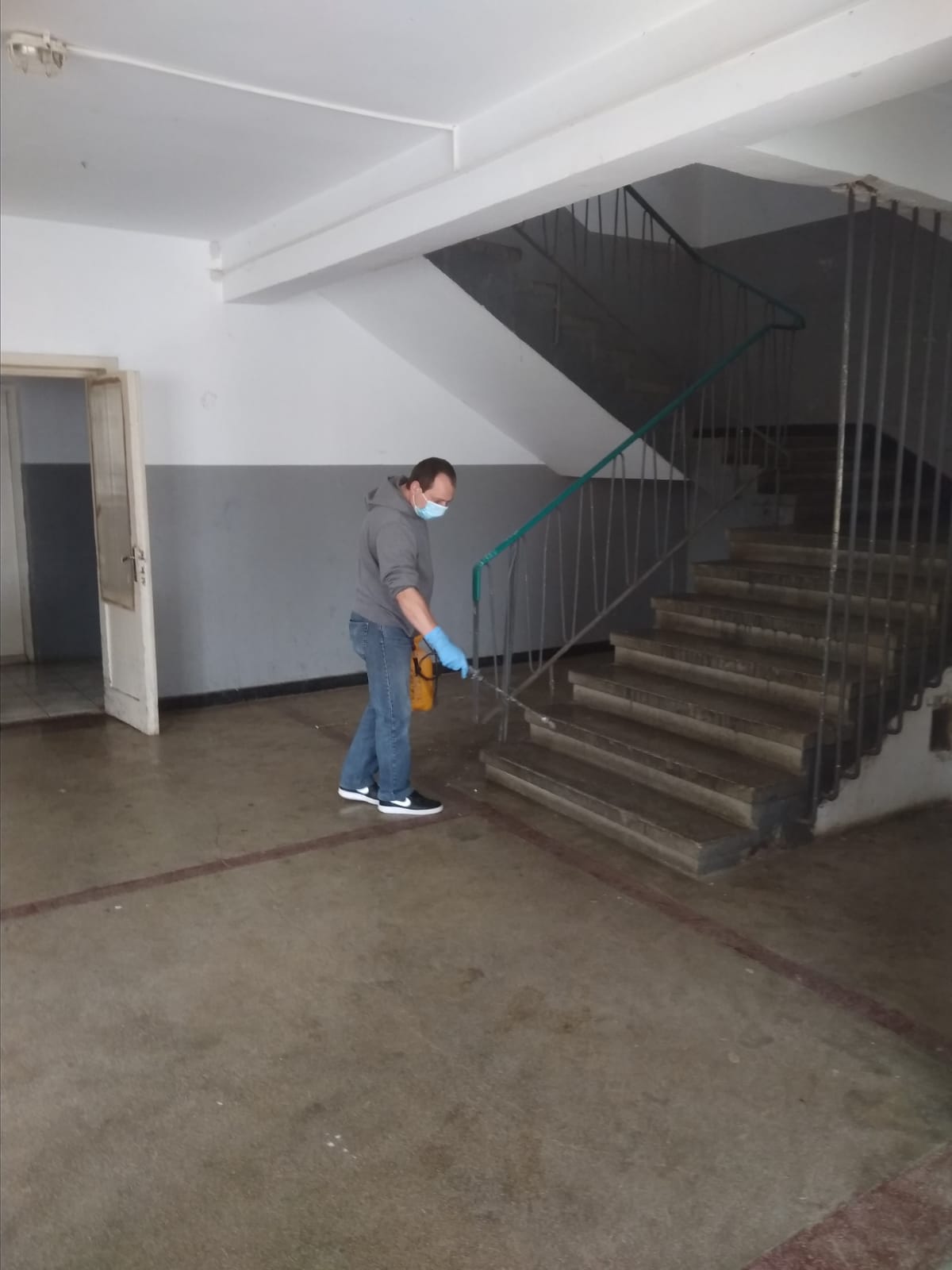 - ,,Astăzi, am dezinfectat intrările în casa scării din zonele: Pieţii, Stadionului, Salcâmilor şi Libertăţii, iar covoraşele de la intrările în blocuri au fost îmbibate cu soluţii dezinfectante. Au fost dezinfectate şi scările de la intrare în spaţiile comerciale, străzile şi trotuarele. Periodic dezinfectăm imobilele din fondul locativ de stat de pe străzile: Salcâmilor, Libertăţii şi Stadionului. În cele patru blocuri au fost dezinfectate şi spaţiile comune: bucătăriile, băile şi holurile’’ a spus Gheorghe Cristian, primarul oraşului Victoria.