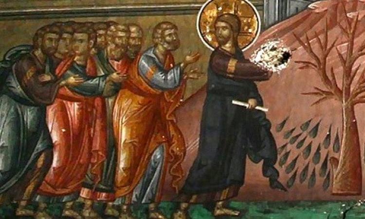 ,,Și lăsându-i, a ieșit afară din cetate la Betania, și noaptea a rămas acolo. Dimineața, a doua zi, pe când se întorcea în cetate, a flămânzit; Și văzând un smochin lângă cale, S-a dus la el, dar n-a găsit nimic în el decât numai frunze, și a zis lui: De acum înainte să nu mai fie rod din tine în veac! Și smochinul s-a uscat în dată”. (Luca 21, 17-19)