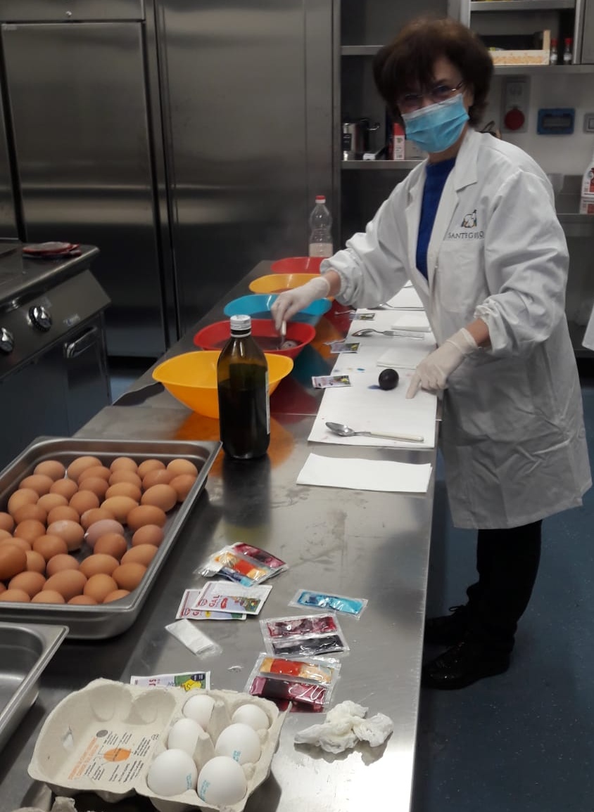 • ,,Am mers la Sant’Egidio de Paştele ortodox, am vopsit 300 de ouă cu galus românesc pentru a le împărţi celor care au nevoie de hrană şi mângâiere. Cei care au intrat pe poarta fundaţiei au fost întâmpinaţi cu salutul sărbătorii ,,Hristos a Înviat” şi au primit câte o lumânare aprinsă şi câte o icoană. Apoi i-am servit cu ouă vopsite aşa cum impune tradiţia şi un prânz de Paşte. Nu vă pot descrie ce sentimente m-au încercat în această zi în preajma acestor oameni. Privirea din ochii lor a spus totul. M-au ajutat în acest an să pregătesc ouăle penru Paştile ortodoxe Mădălina (România), Carla (Italia) şi Anoir (Maroc),  cărora le mulţumesc” a explicat profesoara Angela Nicoară. Întrebată dacă nu-i este teamă că se infectează, răspunsul a fost simplu: ,,Nu. Purtăm toţi mănuşi şi mască de protecţie. Dacă am avea teamă de coronavirus n-am mai fi aici să ajutăm”.