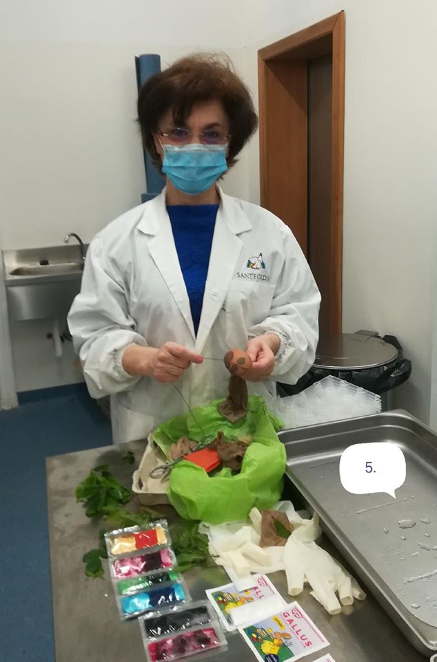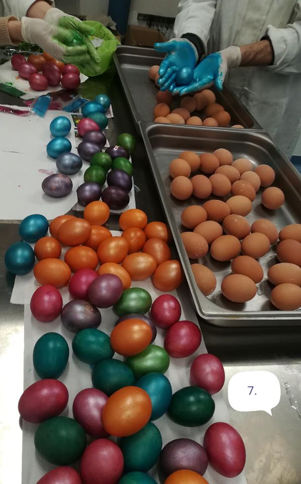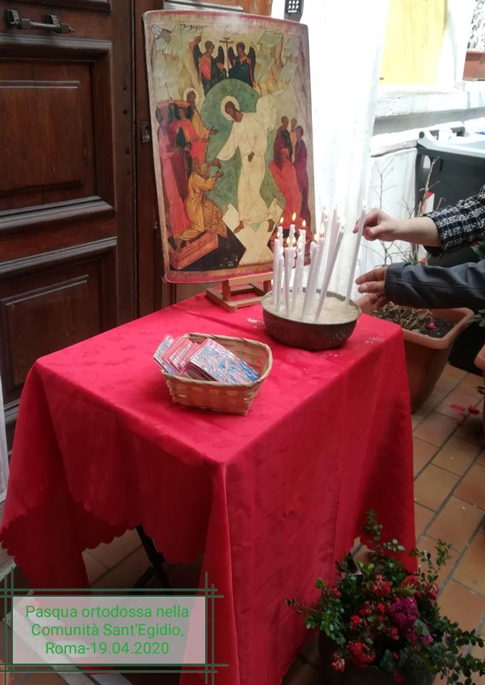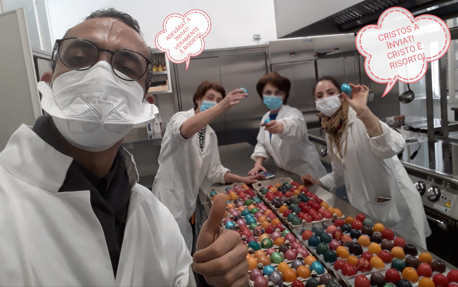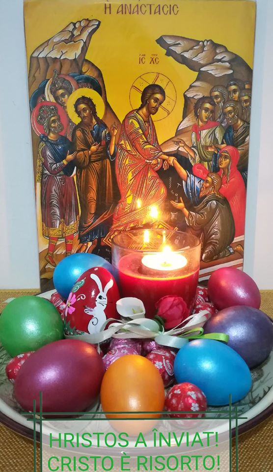 • ,,Am mers la Sant’Egidio de Paştele ortodox, am vopsit 300 de ouă cu galus românesc pentru a le împărţi celor care au nevoie de hrană şi mângâiere. Cei care au intrat pe poarta fundaţiei au fost întâmpinaţi cu salutul sărbătorii ,,Hristos a Înviat” şi au primit câte o lumânare aprinsă şi câte o icoană. Apoi i-am servit cu ouă vopsite aşa cum impune tradiţia şi un prânz de Paşte. Nu vă pot descrie ce sentimente m-au încercat în această zi în preajma acestor oameni. Privirea din ochii lor a spus totul. M-au ajutat în acest an să pregătesc ouăle penru Paştile ortodoxe Mădălina (România), Carla (Italia) şi Anoir (Maroc),  cărora le mulţumesc” a explicat profesoara Angela Nicoară. Întrebată dacă nu-i este teamă că se infectează, răspunsul a fost simplu: ,,Nu. Purtăm toţi mănuşi şi mască de protecţie. Dacă am avea teamă de coronavirus n-am mai fi aici să ajutăm”.