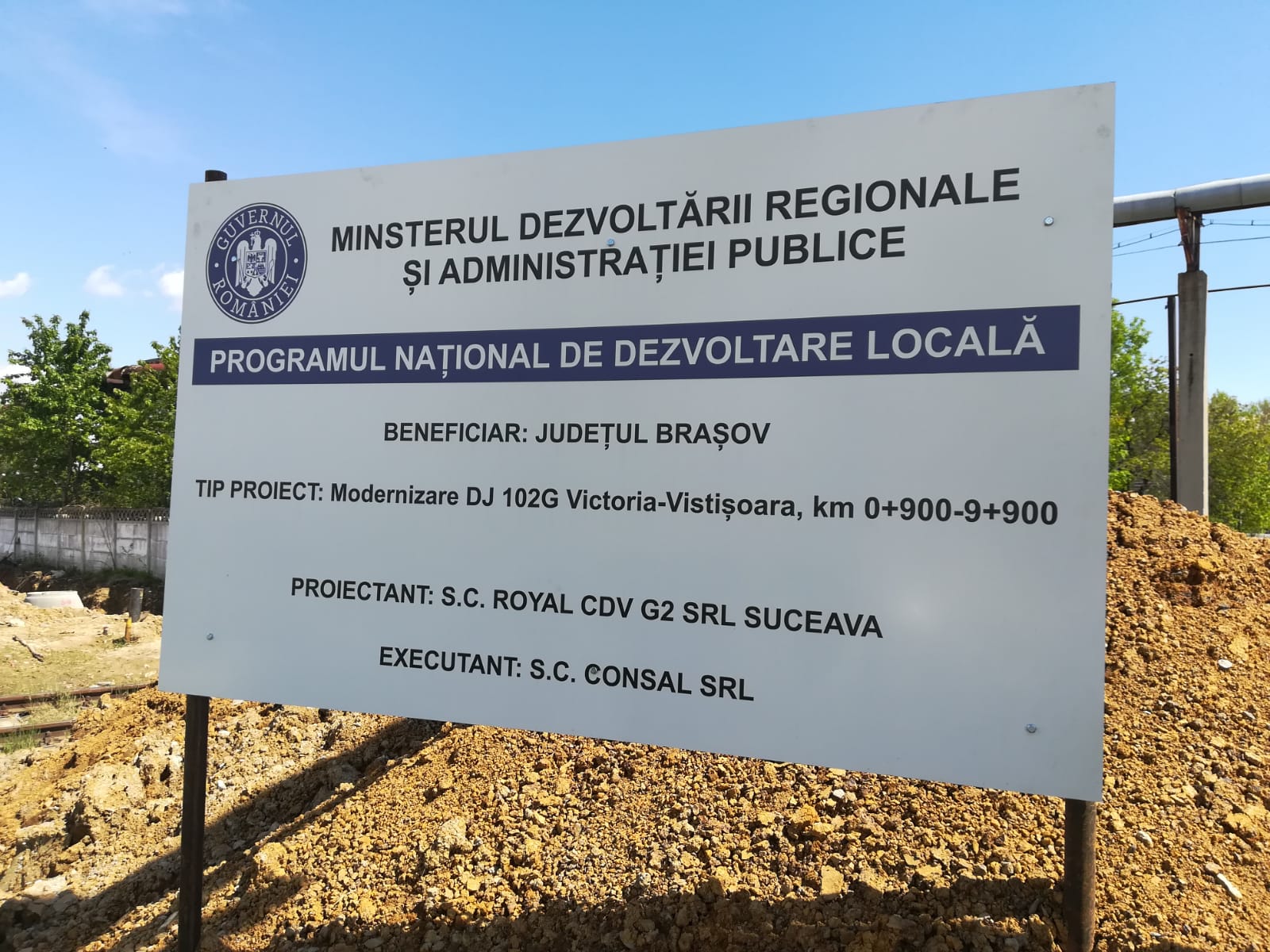 • ,,Contractul  a fost semnat la 26 iulie 2019, iar ca executant pentru realizarea  lucrărilor de modernizare pe DJ 102G a fost desemnată   asocierea dintre firmele  SC Consal SRL şi SC Multipland SRL. Ordinul de începere a lucrărilor a fost emis  la 30 septembrie 2019 şi  trebuie să fie finalizată investiţia  până la 15 octombrie 2020. Valoarea investiţiei este de 38.210.194,44 lei inclusiv TVA din care  PNDL suportă 12.941.250 lei inclusiv TVA. Proiectul  ,,Execuţie-Modernizare DJ 102G a costat CJ Braşov    3.584.217,38 lei inclusiv TVA” a declarat Adrian Veştea, preşedintele CJ Braşov.