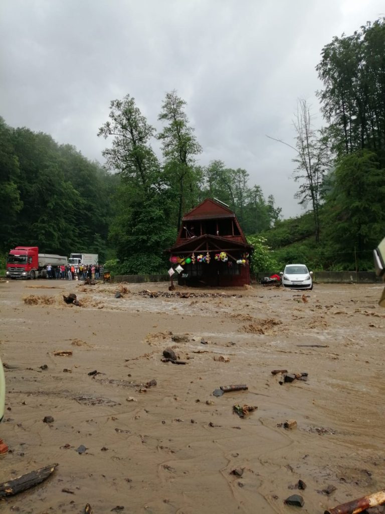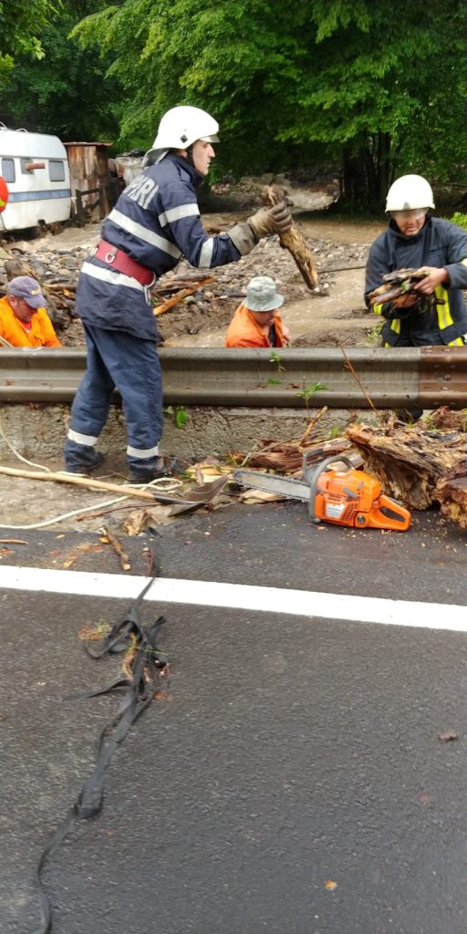 Foto şi VIDEO. Potop în zona Rupea. Două persoane au rămas izolate de ape, iar DN 13 este blocat de copaci